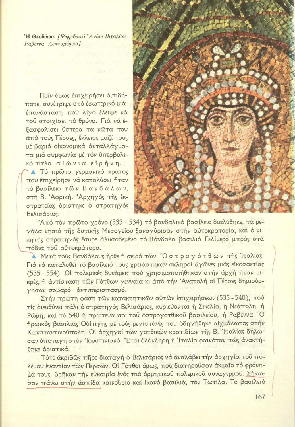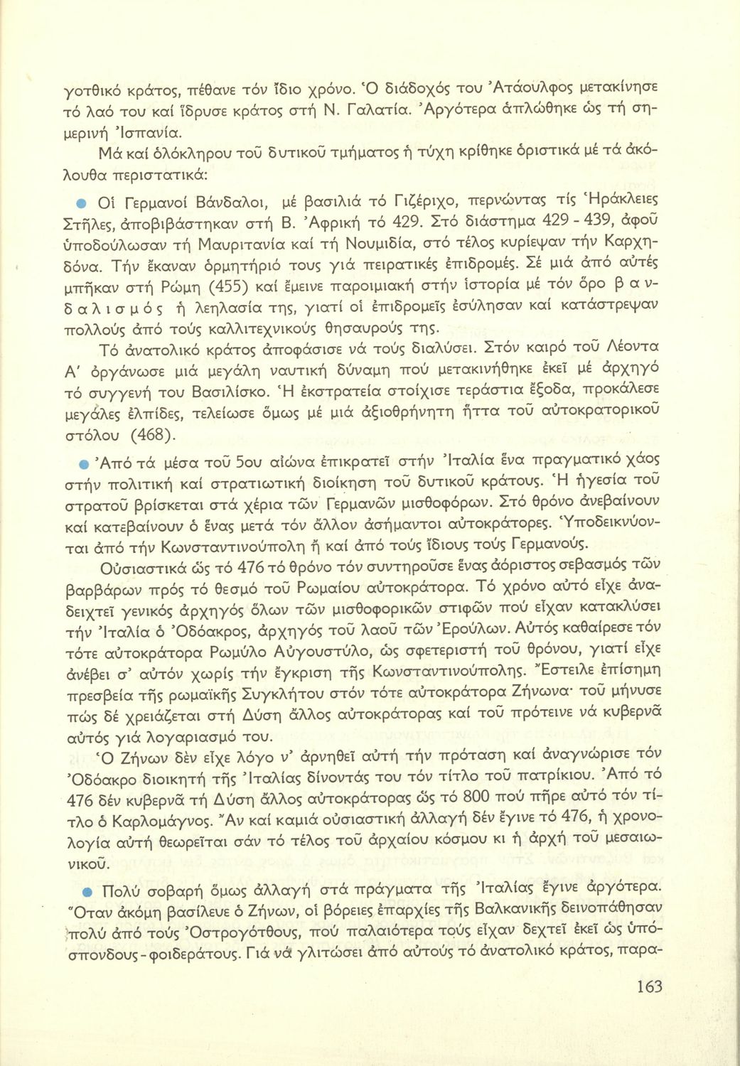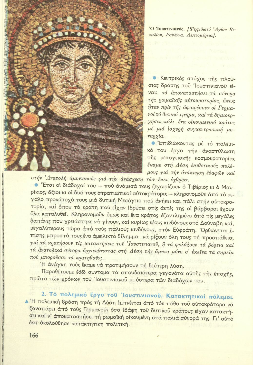 Σχολικό εγχειρίδιο Ιστορίας Β΄ Γυμνασίου που καλύπτει την περίοδο από την κατάληψη της Ελλάδας από τους Ρωμαίους ως την πτώση της Βυζαντινής Αυτοκρατορίας. Γίνεται ιδιαίτερη μνεία στο χριστιανικό και ελληνικό στοιχείο του Βυζαντίου. Προτείνει μια υλιστική ανάγνωση της Ιστορίας την οποία διαβάζει από την οπτική των κοινωνικών συγκρούσεων.