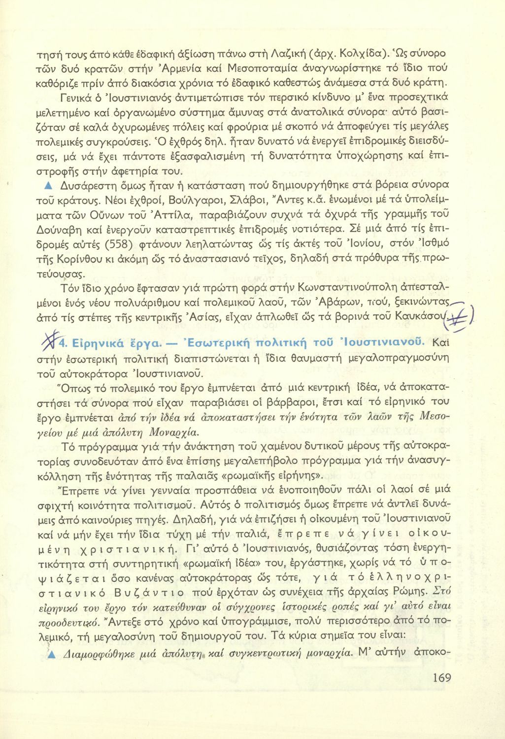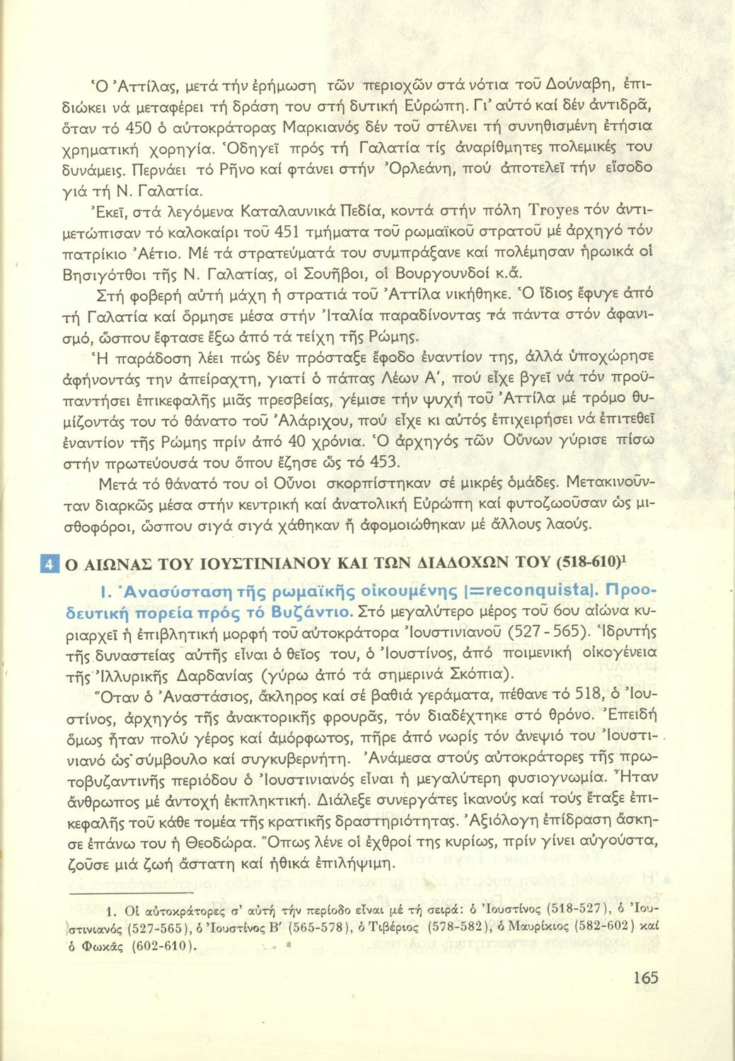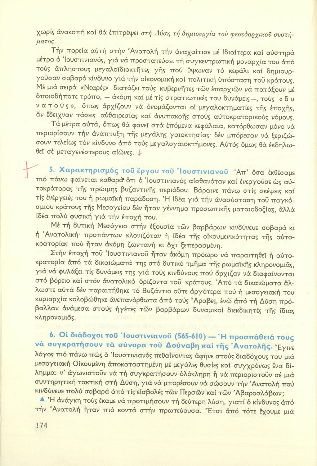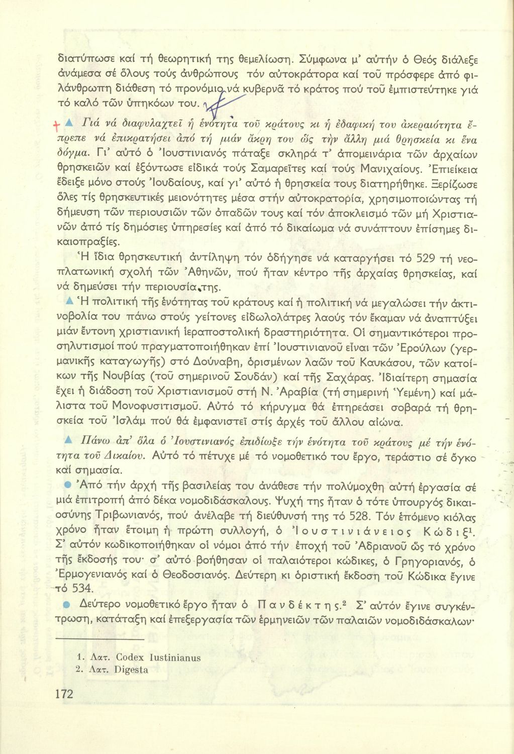 Σχολικό εγχειρίδιο Ιστορίας Β΄ Γυμνασίου που καλύπτει την περίοδο από την κατάληψη της Ελλάδας από τους Ρωμαίους ως την πτώση της Βυζαντινής Αυτοκρατορίας. Γίνεται ιδιαίτερη μνεία στο χριστιανικό και ελληνικό στοιχείο του Βυζαντίου. Προτείνει μια υλιστική ανάγνωση της Ιστορίας την οποία διαβάζει από την οπτική των κοινωνικών συγκρούσεων.