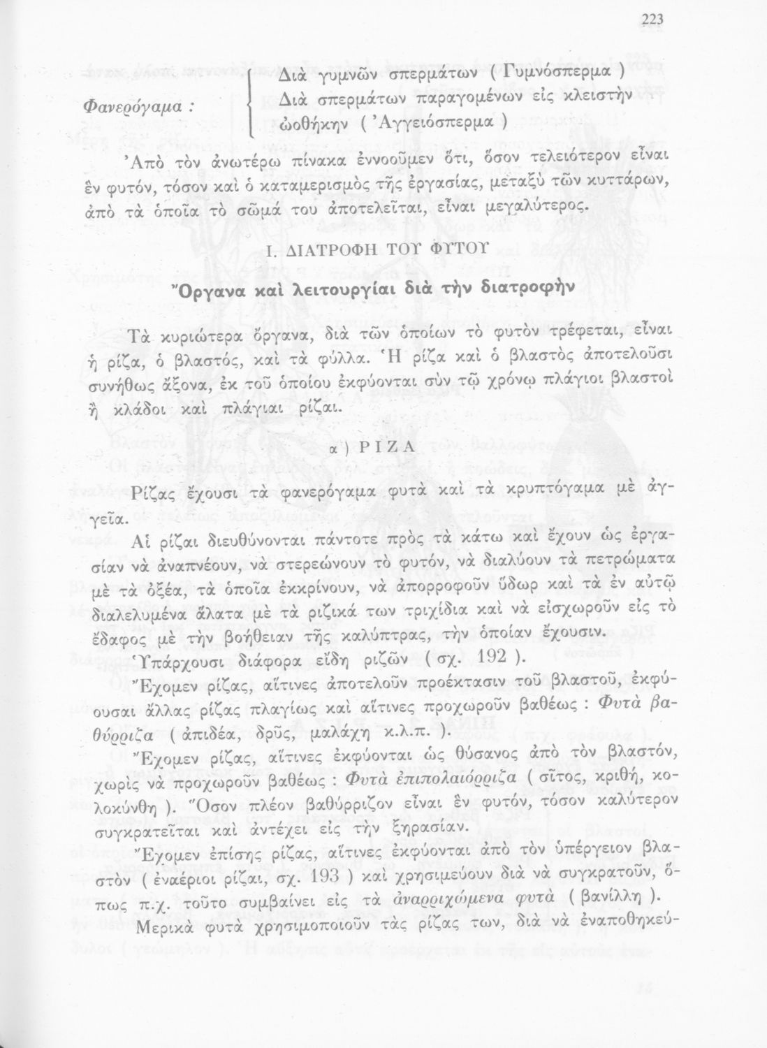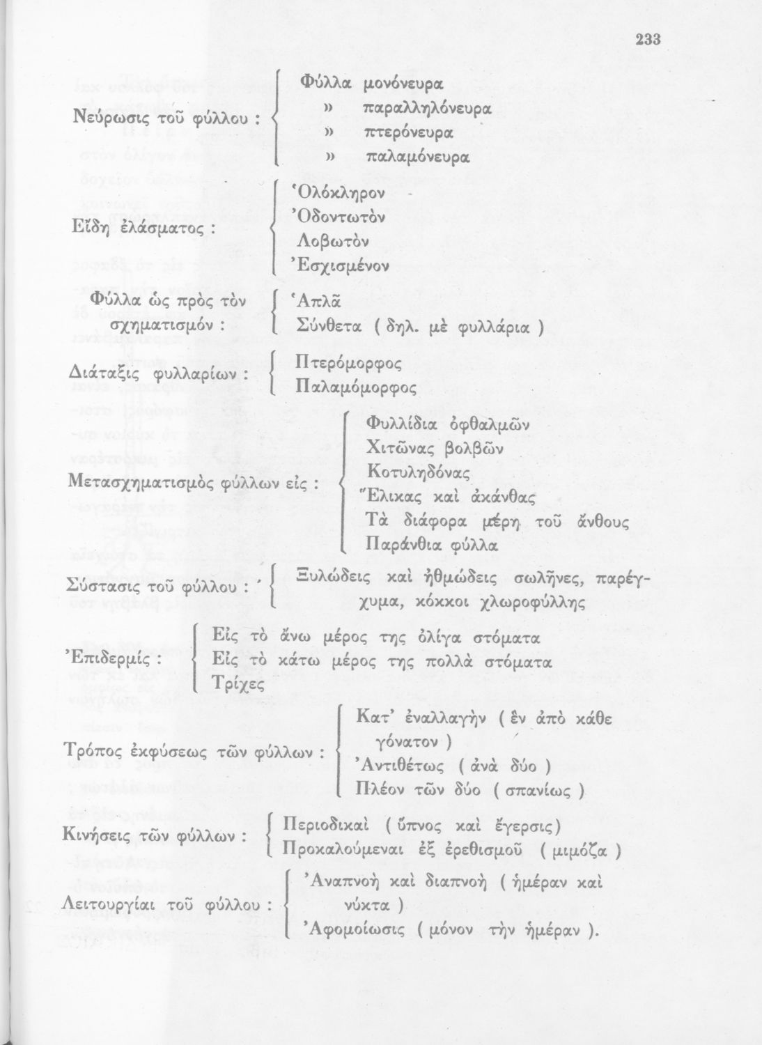 Εγχειρίδιον Φυτολογίας, Α΄ Γυμνασίου