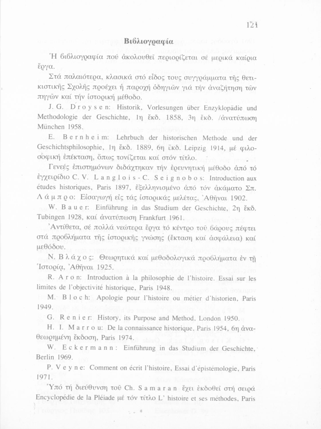Σχολικό εγχειρίδιο Ιστορίας Γ΄ Λυκείου που περιλαμβάνει μια εισαγωγή στις ιστορικές σπουδές και μεθοδολογικά ζητήματα έρευνας της ιστορίας και σχολιάζει ζητήματα ιστορικών πηγών.