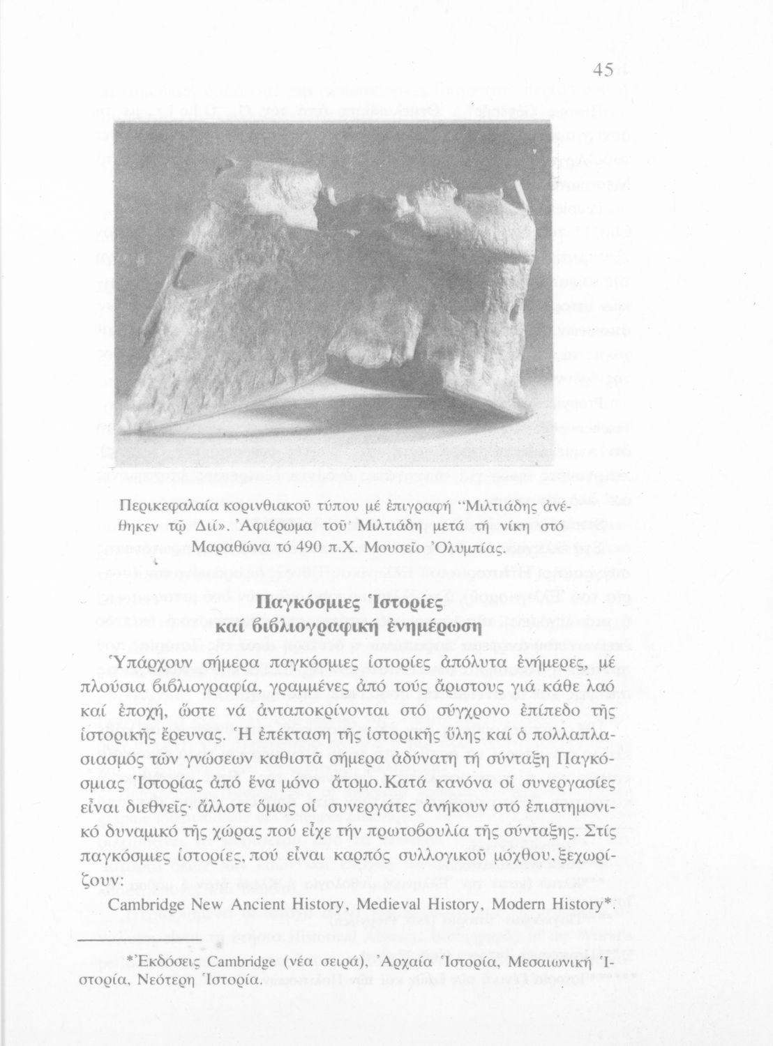 Σχολικό εγχειρίδιο Ιστορίας Γ΄ Λυκείου που περιλαμβάνει μια εισαγωγή στις ιστορικές σπουδές και μεθοδολογικά ζητήματα έρευνας της ιστορίας και σχολιάζει ζητήματα ιστορικών πηγών.