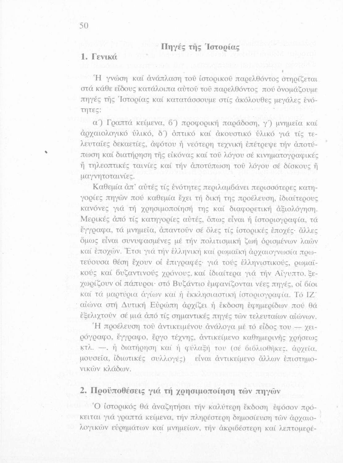 Σχολικό εγχειρίδιο Ιστορίας Β΄ Λυκείου που αποτελεί εισαγωγή στην ιστοριογραφία και την επιστήμη της ιστορίας και αναλύει τα είδη των ιστορικών πηγών.