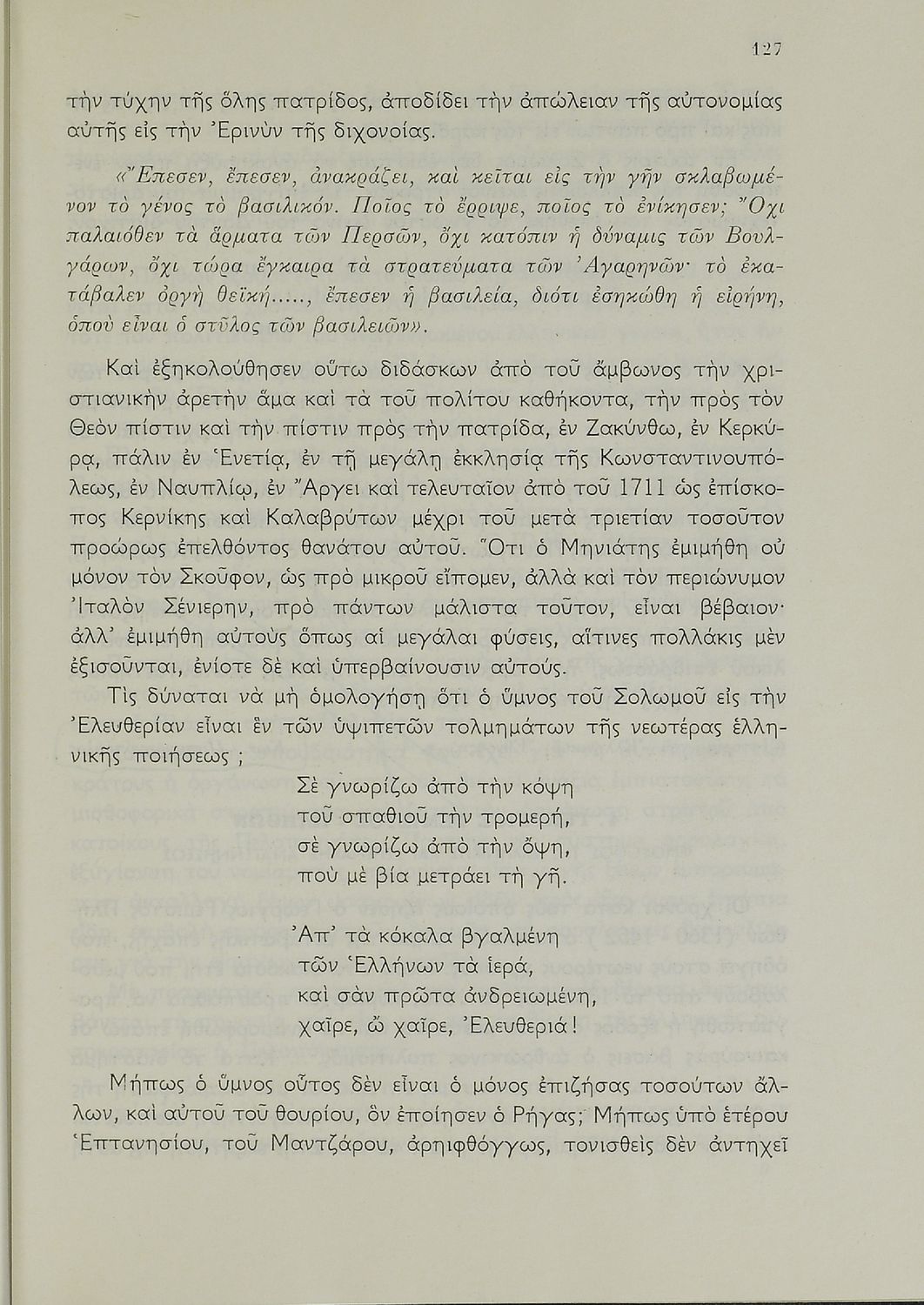 Σχολικό εγχειρίδιο Νέων Ελληνικών Ε΄ Γυμνασίου που περιέχει πεζά και ποιήματα συγγραφέων της βυζαντινής και μεταβυζαντινής περιόδου πατριωτικού και θρησκευτικού περιεχομένου. Περιλαμβάνει και πεζά και ποιήματα