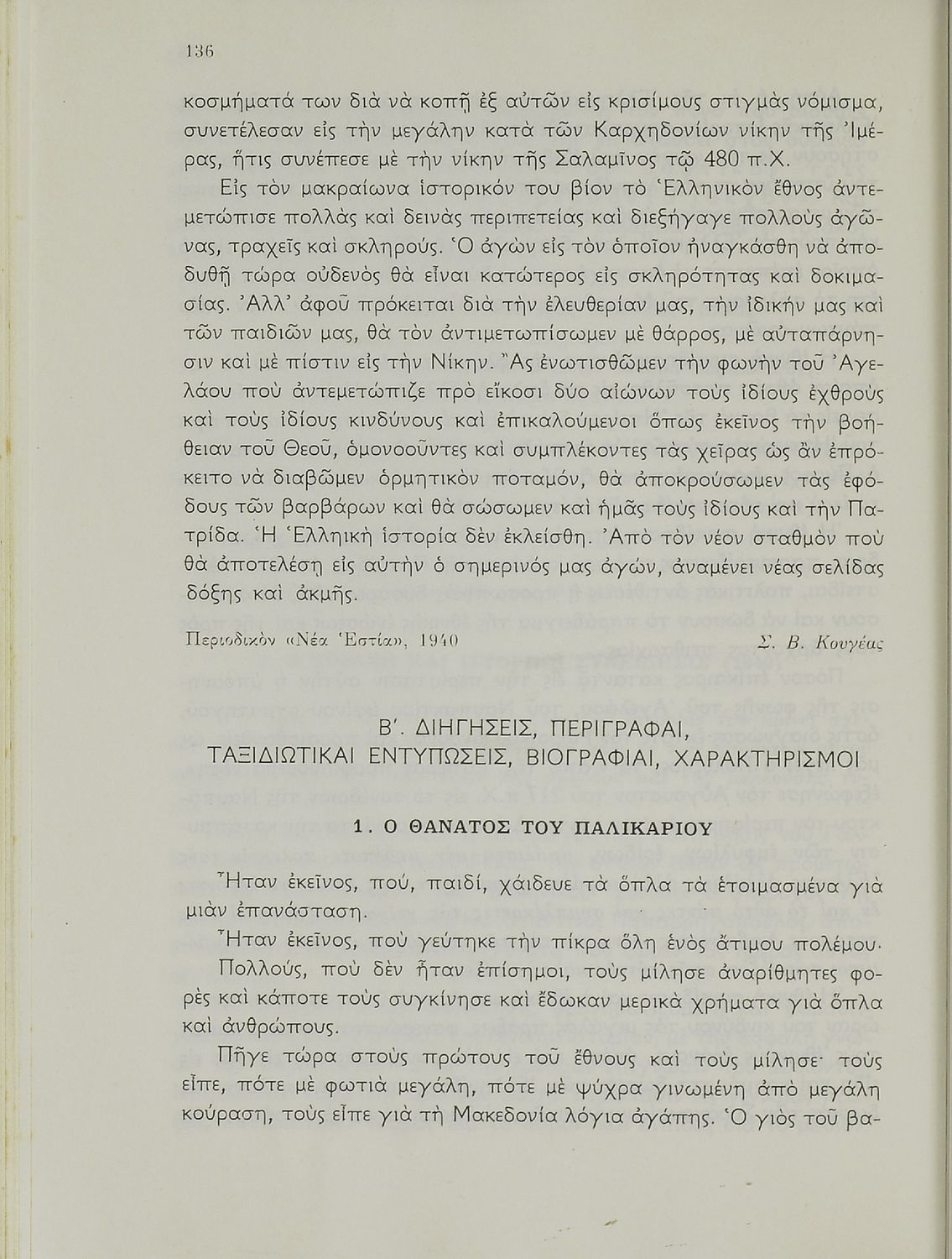 Σχολικό εγχειρίδιο Νέων Ελληνικών Ε΄ Γυμνασίου που περιέχει πεζά και ποιήματα συγγραφέων της βυζαντινής και μεταβυζαντινής περιόδου πατριωτικού και θρησκευτικού περιεχομένου. Περιλαμβάνει και κείμενα Ελλήνων συγγραφέων και δημοτικά τραγούδια πατριωτικού περιεχομένου και παράρτημα με βιογραφίες των συγγραφέων και λεξιλόγιο.