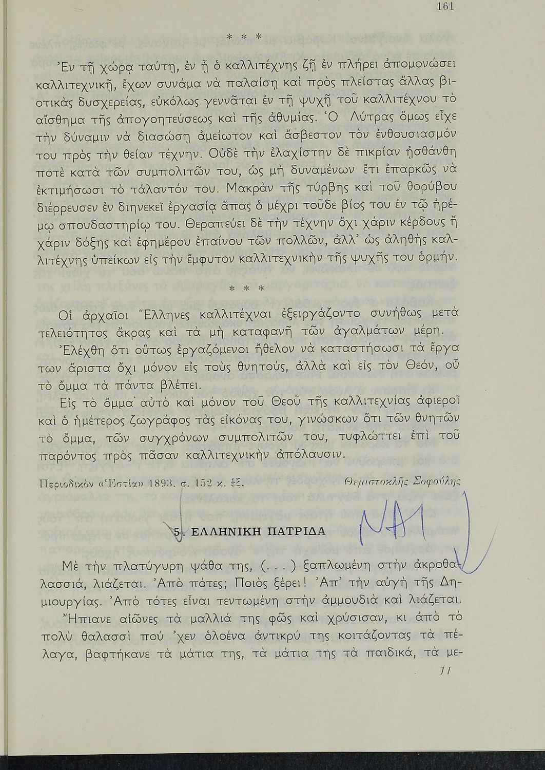 Σχολικό εγχειρίδιο Νέων Ελληνικών Ε΄ Γυμνασίου που περιέχει πεζά και ποιήματα Ελλήνων και ξένων συγγραφέων εμπνευσμένα από την αρχαία και σύγχρονη ελληνική ιστορία, τη βυζαντινή ιστορία, τη θρησκευτική ...