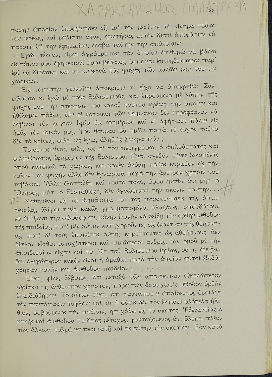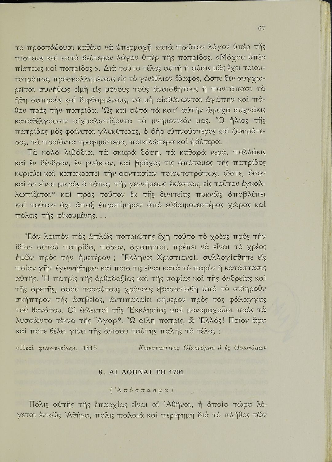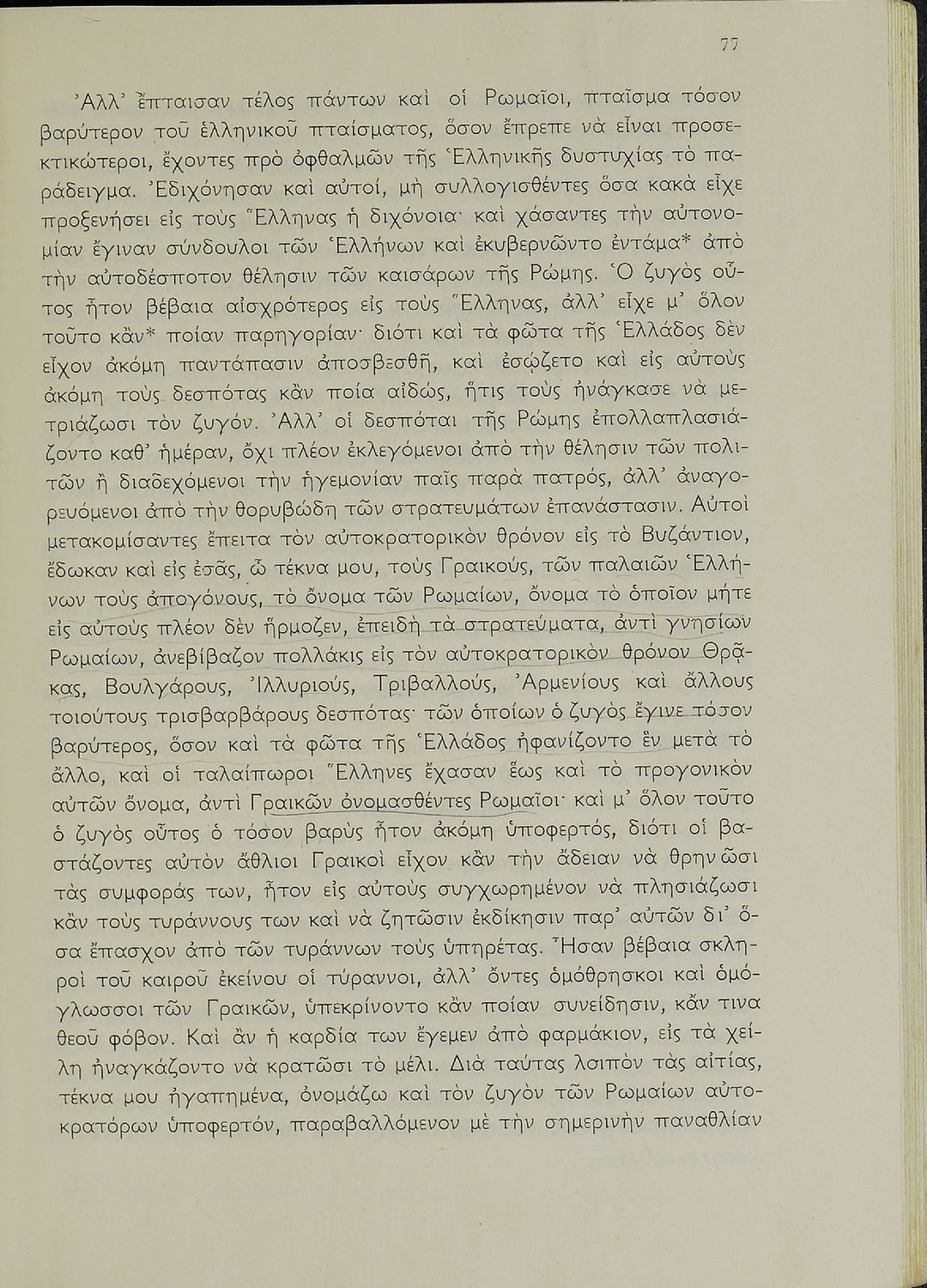 Σχολικό εγχειρίδιο Νέων Ελληνικών Ε΄ Γυμνασίου που περιέχει πεζά και ποιήματα συγγραφέων της βυζαντινής και μεταβυζαντινής περιόδου πατριωτικού και θρησκευτικού περιεχομένου. Περιλαμβάνει και κείμενα Ελλήνων συγγραφέων και δημοτικά τραγούδια πατριωτικού περιεχομένου και παράρτημα με βιογραφίες των συγγραφέων και λεξιλόγιο.
