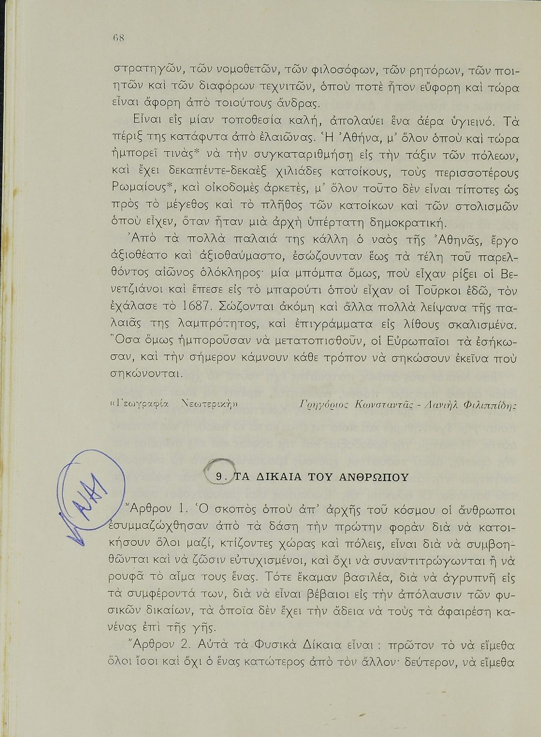 LDR 01521 2200217 4500 035 ## _a01-42156 040 ## _aΙνστιτούτο Εκπαιδευτικής Πολιτικής 041 ## _ael 100 ## _aΓ. Καλαματιανός _aΜ. Σταθοπούλου-Χριστοφέλλη _aΝ. Κοντόπουλος _aΕ. Φωτιάδης _aΗλ. Μηνιάτης 110 ## _a42156 245 0# _aΝεοελληνικά αναγνώσματα Ε΄ Γυμνασίου 250 ## _a14η Έκδοση 260 ## _aΑθήνα _bΟργανισμός Εκδόσεως Διδακτικών Βιβλίων _c1976 300 ## _a348 520 ## _aΣχολικό εγχειρίδιο Νέων Ελληνικών Ε΄ Γυμνασίου που περιέχει πεζά και ποιήματα συγγραφέων της βυζαντινής και μεταβυζαντινής περιόδου πατριωτικού και θρησκευτικού περιεχομένου. Περιλαμβάνει και κείμενα Ελλήνων συγγραφέων και δημοτικά τραγούδια πατριωτικού περιεχομένου και παράρτημα με βιογραφίες των συγγραφέων και λεξιλόγιο. 521 ## _aΕ' Γυμνασίου 522 ## _aΕλλάδα 546 ## _aΔημοτική 563 ## _aΜαλακό Εξώφυλλο 583 ## _a2685/8-4-1976 _c1976 650 #4 _aΚοραής _aΛάμπρος _aΠαπαρρηγόπουλος _aΣολωμός _aΧορτάτσης