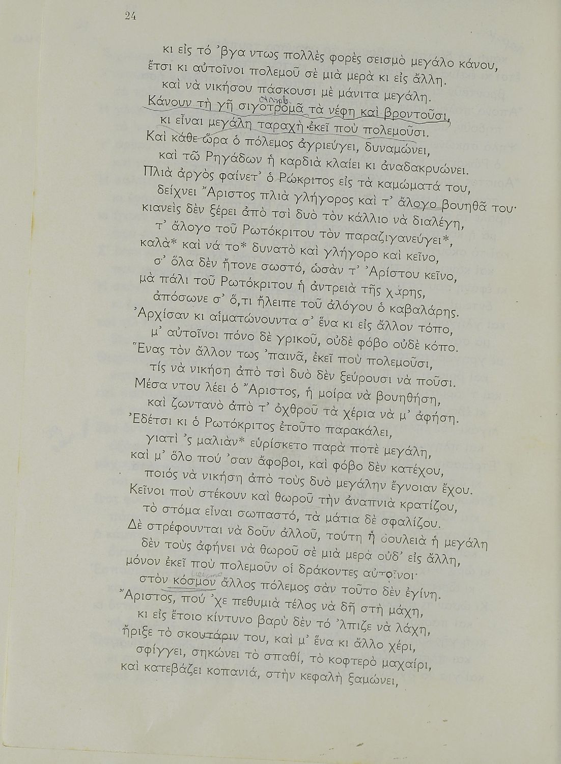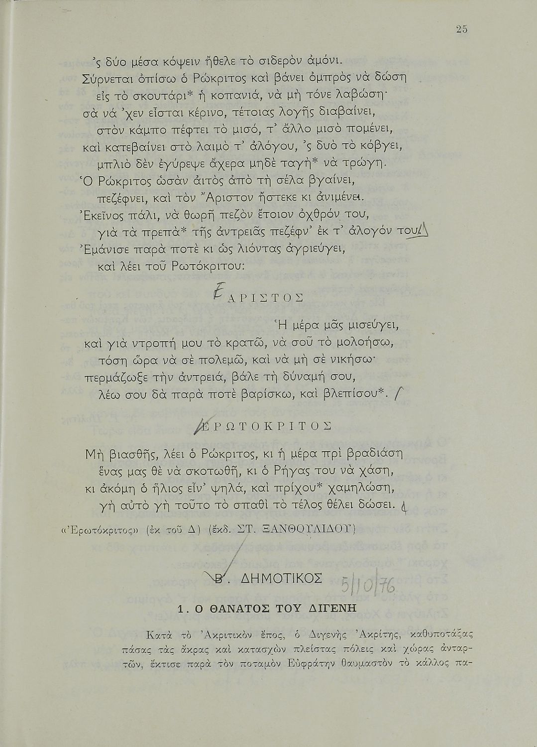 Σχολικό εγχειρίδιο Νέων Ελληνικών Ε΄ Γυμνασίου που περιέχει πεζά και ποιήματα συγγραφέων της βυζαντινής και μεταβυζαντινής περιόδου πατριωτικού και θρησκευτικού περιεχομένου. Περιλαμβάνει και κείμενα Ελλήνων συγγραφέων και δημοτικά τραγούδια πατριωτικού περιεχομένου και παράρτημα με βιογραφίες των συγγραφέων και λεξιλόγιο.