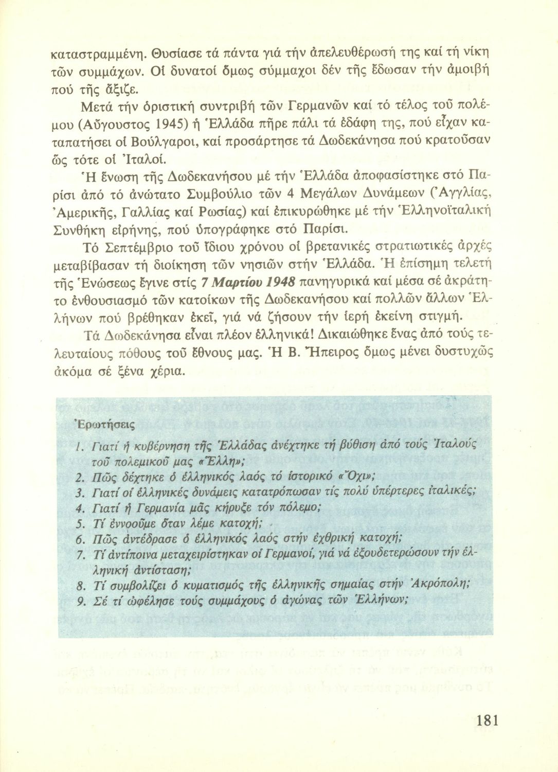 Σχολικό εγχειρίδιο Ιστορίας της ΣΤ΄ Δημοτικού που καλύπτει την περίοδο από την άλωση της Κωνσταντινούπολης μέχρι την δικτατορία των συνταγματαρχών. Υιοθετεί τον λόγο της χούντας και προβάλει τον εθνοσωτήριο ...
