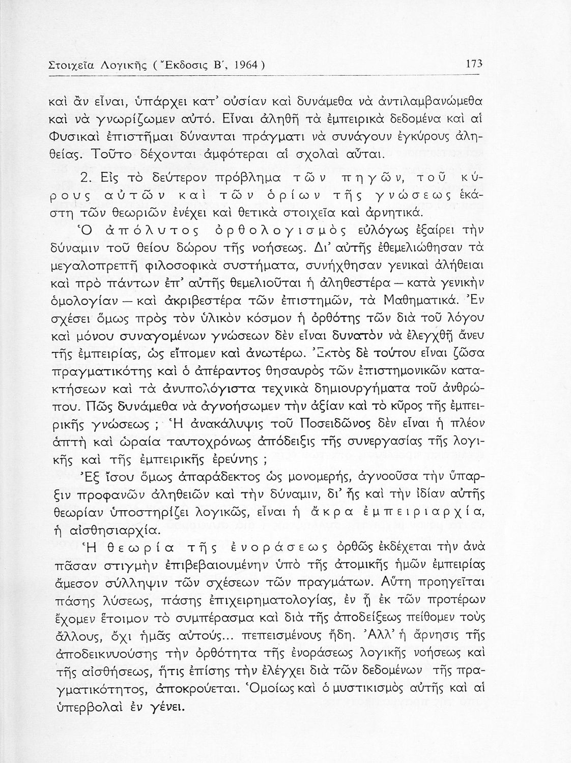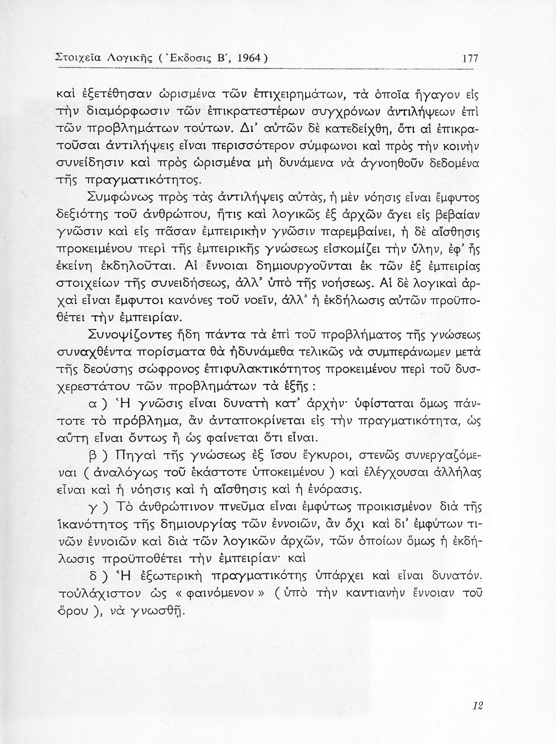 LDR 01174 2200217 4500 035 ## _a01-42160 040 ## _aΙνστιτούτο Εκπαιδευτικής Πολιτικής 041 ## _ael 100 ## _aΝικόλαος Σούλιας 110 ## _a42160 245 0# _aΛογική μετά στοιχείων γνωσιολογίας, τάξεως ΣΤ΄ 250 ## _a2η Έκδοση 260 ## _aΑθήνα _bΟργανισμός Εκδόσεως Διδακτικών Βιβλίων _c1964 300 ## _a203 _c20 520 ## _aΣχολικό εγχειρίδιο Λογικής ΣΤ΄ Γυμνασίου που είναι δομημένο θεματικά και περιλαμβάνει ζητήματα τυπικής λογικής, μεθοδολογίας και γνωσιολογίας. Περιέχει παράρτημα με ασκήσεις λογικής. 521 ## _aΣΤ' Γυμνασίου 522 ## _aΕλλάδα 546 ## _aΑπλή καθαρεύουσα 563 ## _aΜαλακό Εξώφυλλο 583 ## _a1230/6-5/1964 _c1964 650 #4 _aΑποδείξεις _aΈννοιες _aΕπιχειρήματα _aΚρίσεις _aΣυλλογισμοί