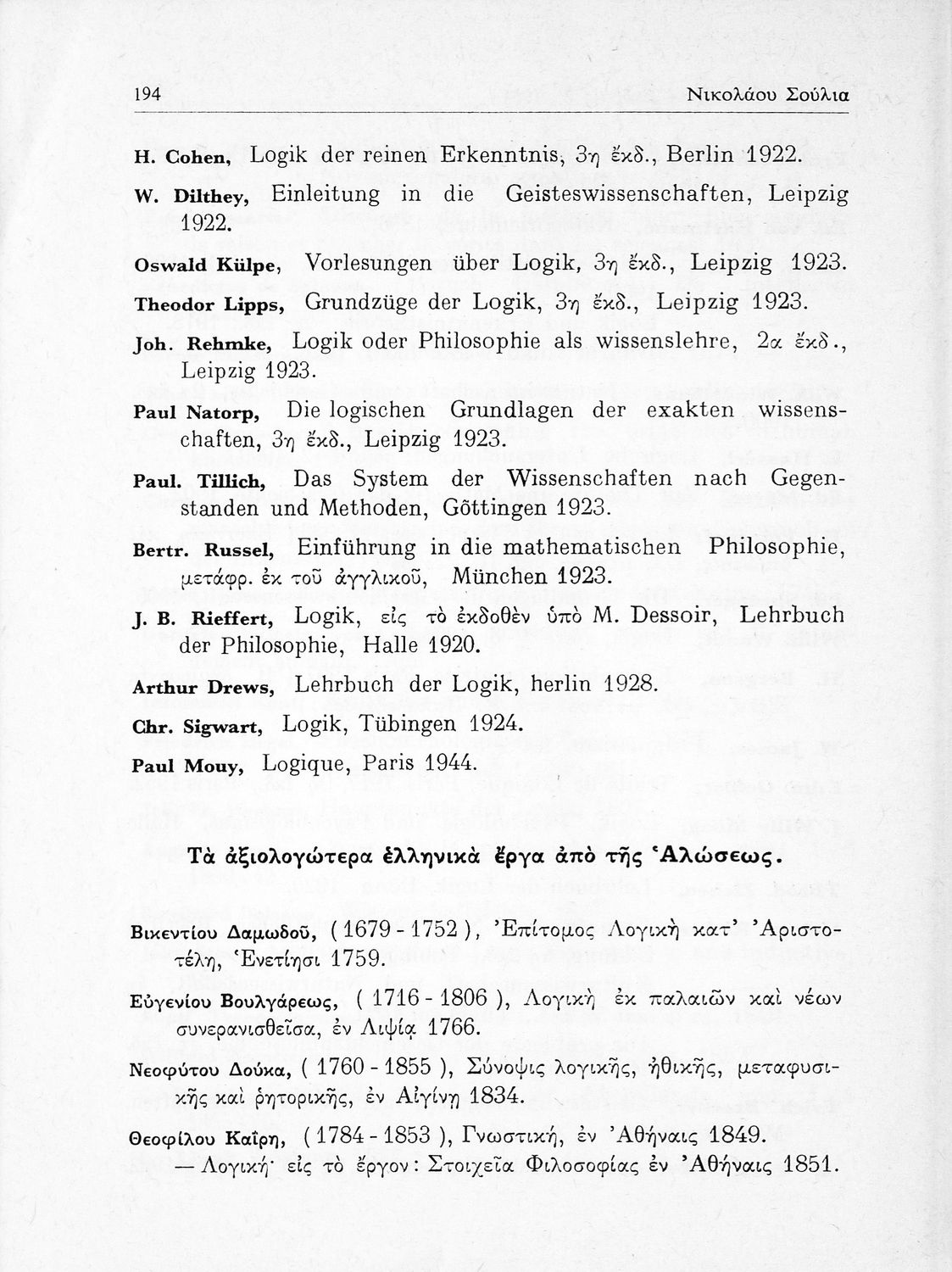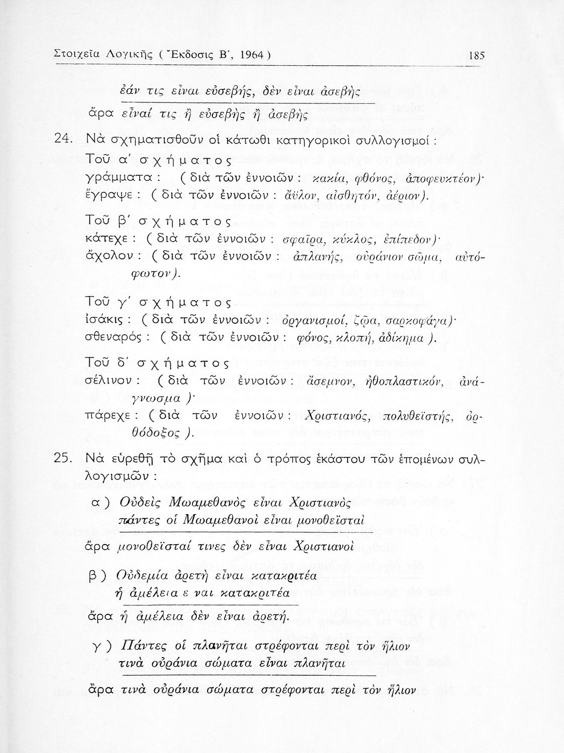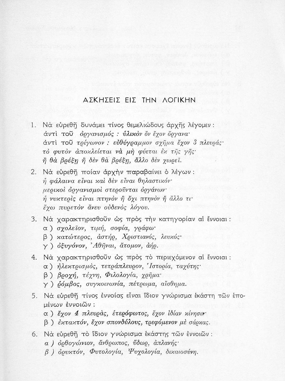 Λογική μετά στοιχείων γνωσιολογίας, τάξεως ΣΤ΄