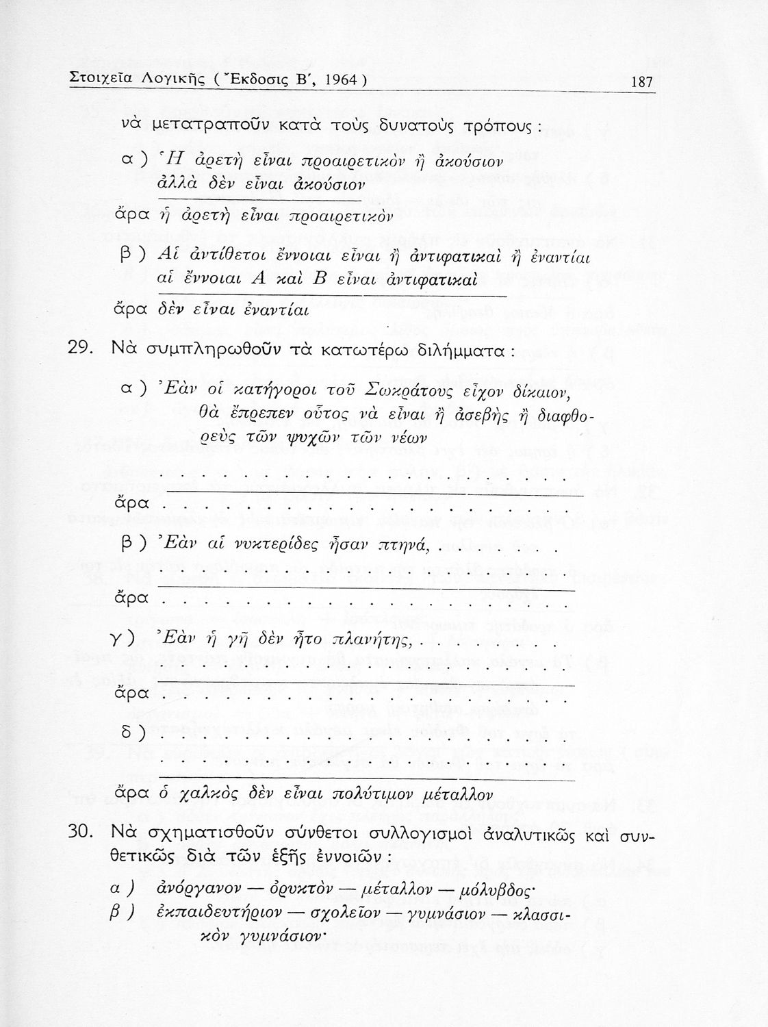 Τίτλος: Λογική μετά στοιχείων γνωσιολογίας, τάξεως ΣΤ΄