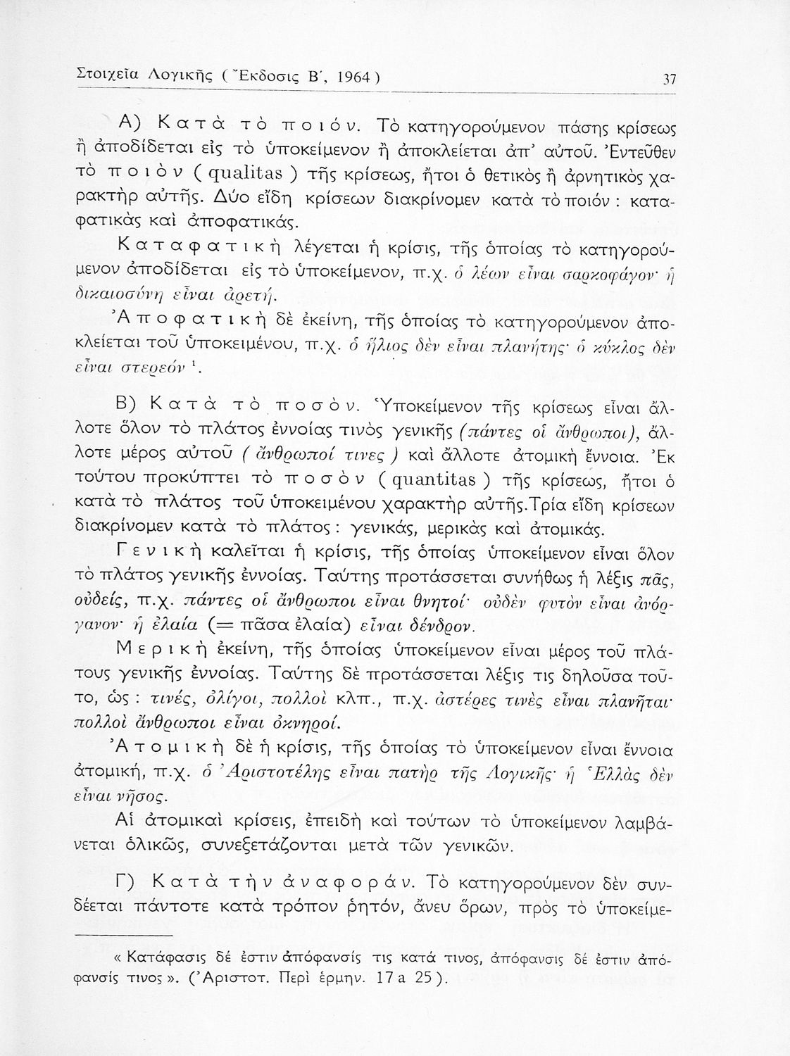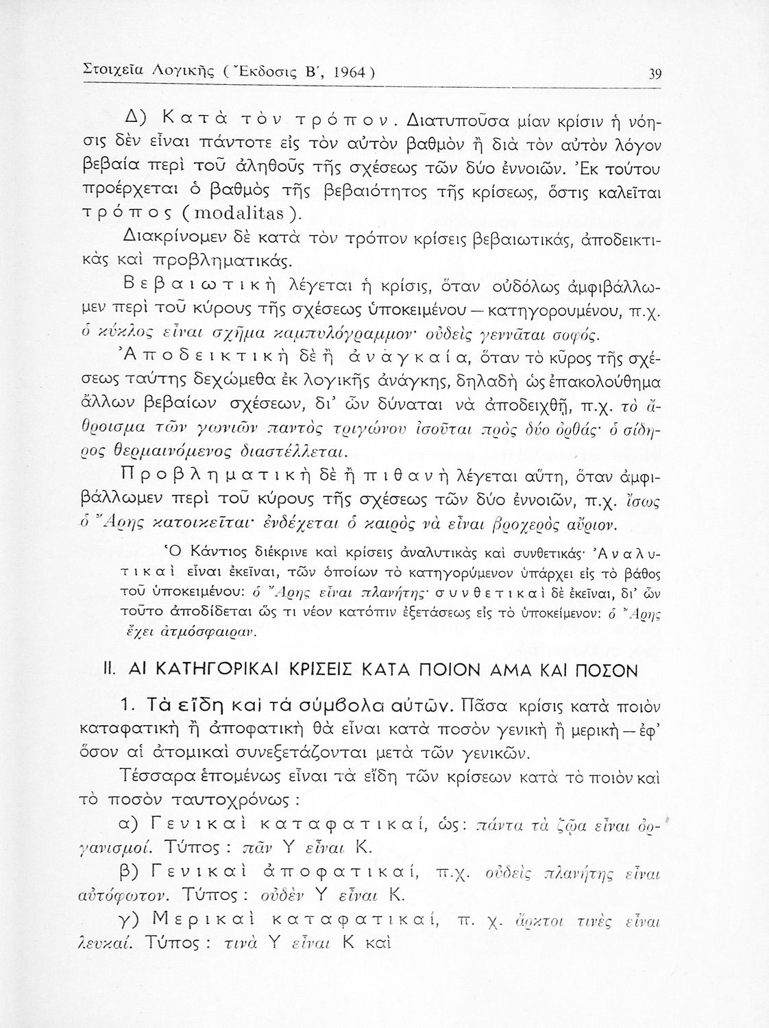 LDR 01174 2200217 4500 035 ## _a01-42160 040 ## _aΙνστιτούτο Εκπαιδευτικής Πολιτικής 041 ## _ael 100 ## _aΝικόλαος Σούλιας 110 ## _a42160 245 0# _aΛογική μετά στοιχείων γνωσιολογίας, τάξεως ΣΤ΄ 250 ## _a2η Έκδοση 260 ## _aΑθήνα _bΟργανισμός Εκδόσεως Διδακτικών Βιβλίων _c1964 300 ## _a203 _c20 520 ## _aΣχολικό εγχειρίδιο Λογικής ΣΤ΄ Γυμνασίου που είναι δομημένο θεματικά και περιλαμβάνει ζητήματα τυπικής λογικής, μεθοδολογίας και γνωσιολογίας. Περιέχει παράρτημα με ασκήσεις λογικής. 521 ## _aΣΤ' Γυμνασίου 522 ## _aΕλλάδα 546 ## _aΑπλή καθαρεύουσα 563 ## _aΜαλακό Εξώφυλλο 583 ## _a1230/6-5/1964 _c1964 650 #4 _aΑποδείξεις _aΈννοιες _aΕπιχειρήματα _aΚρίσεις _aΣυλλογισμοί