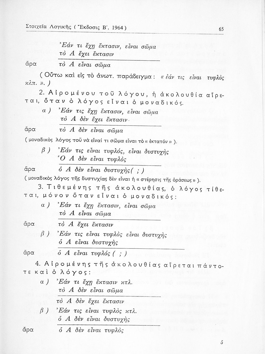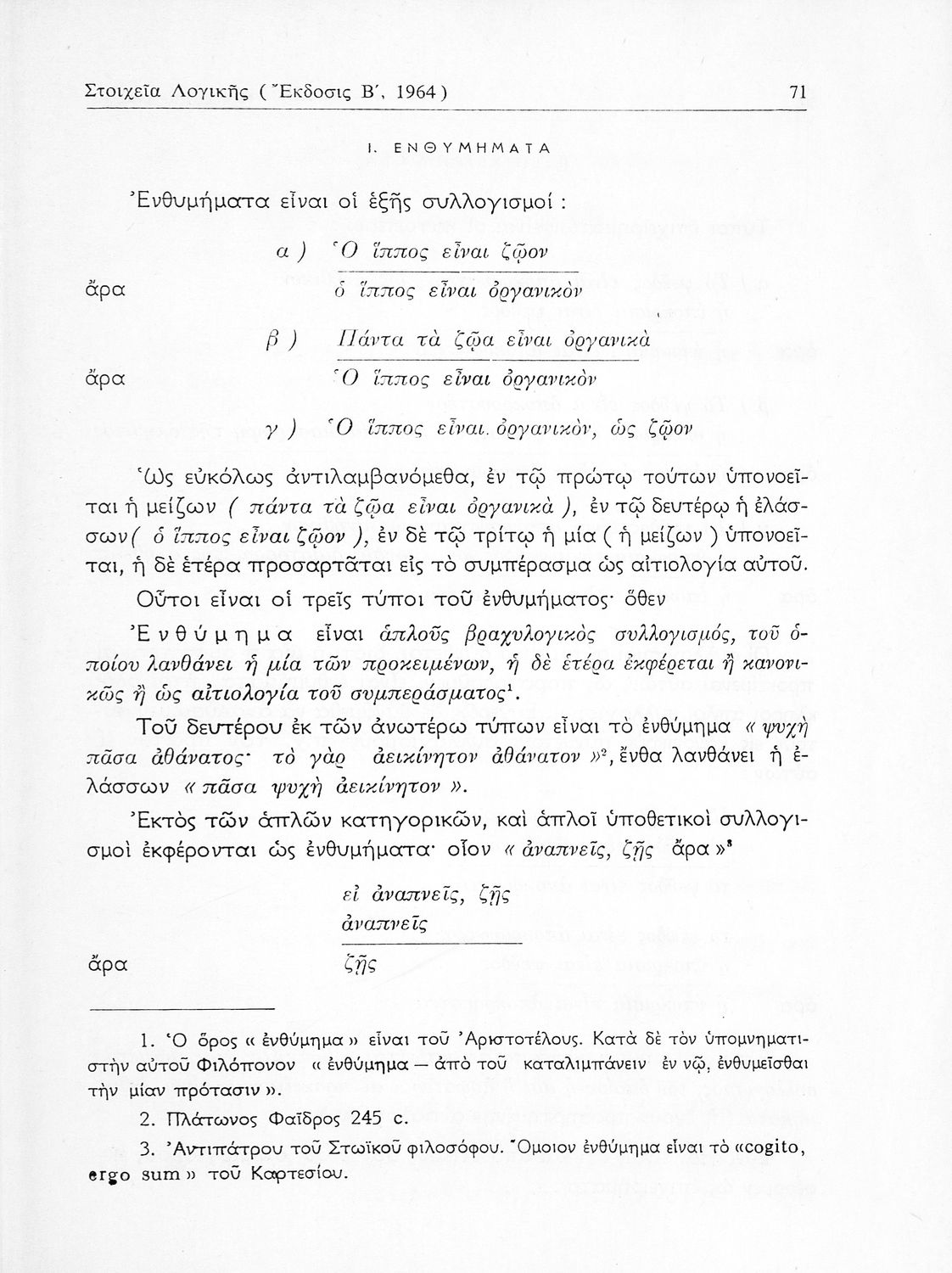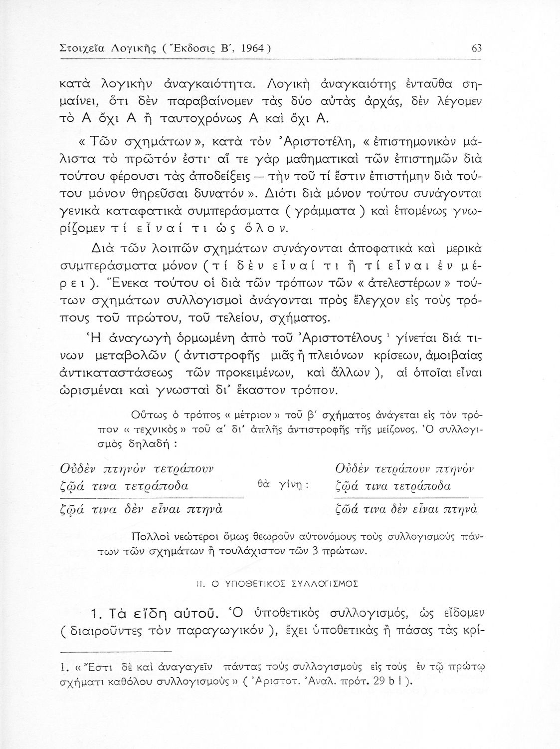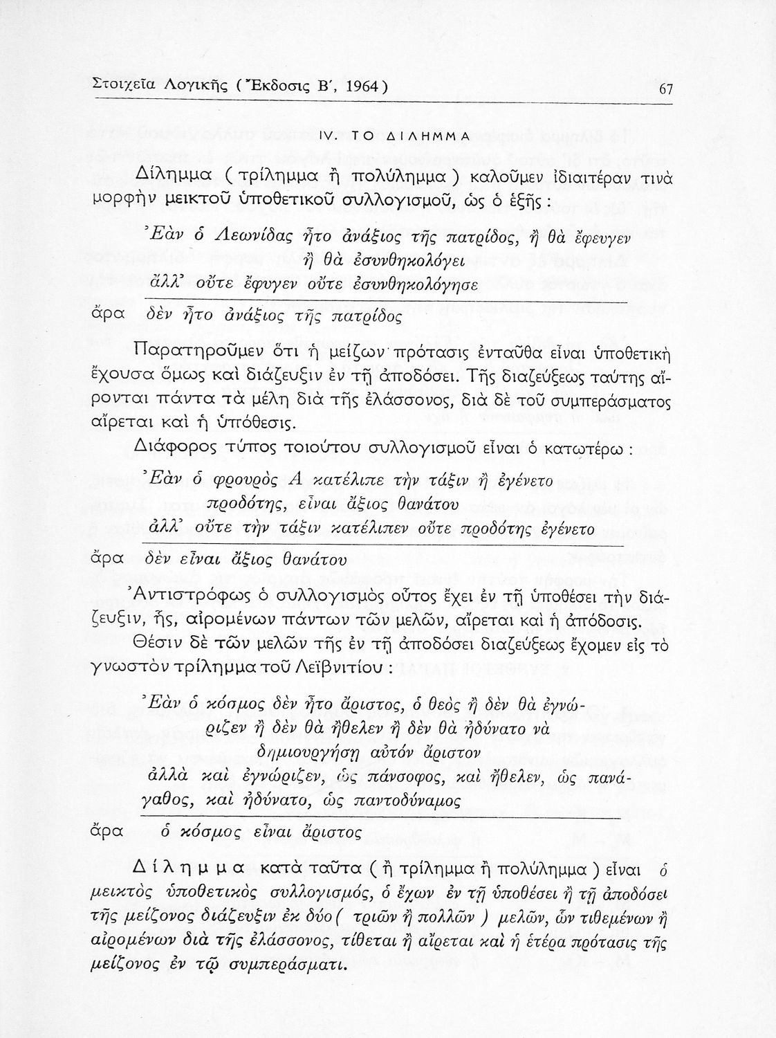 Σχολικό εγχειρίδιο Λογικής για τη ΣΤ΄ Γυμνασίου που είναι χωρισμένο σε στοιχειολογία ή τυπική λογική, μεθοδολογία και γνωσιολογία. Περιέχει ασκήσεις λογικής.