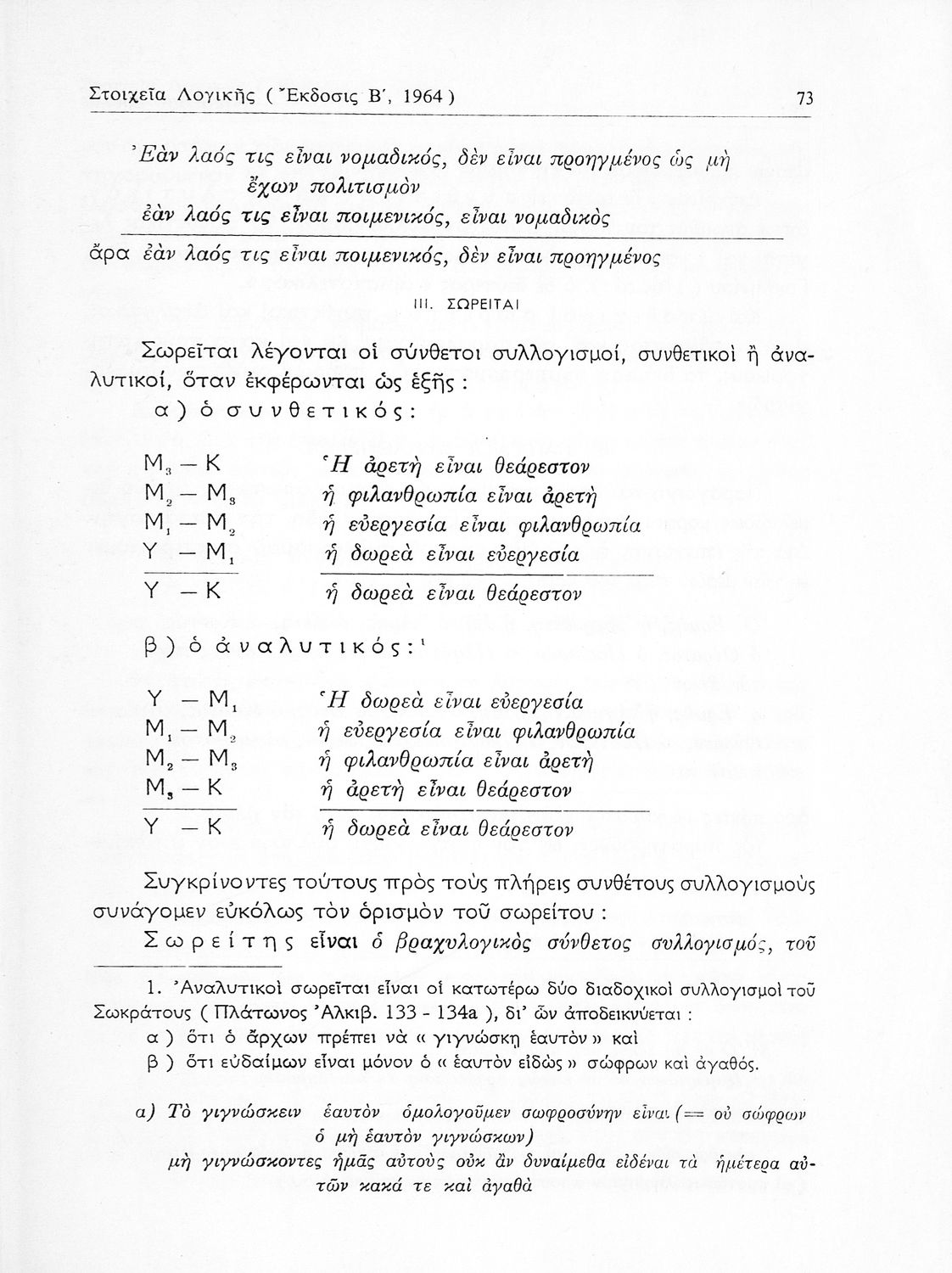 Λογική μετά στοιχείων γνωσιολογίας, τάξεως ΣΤ΄