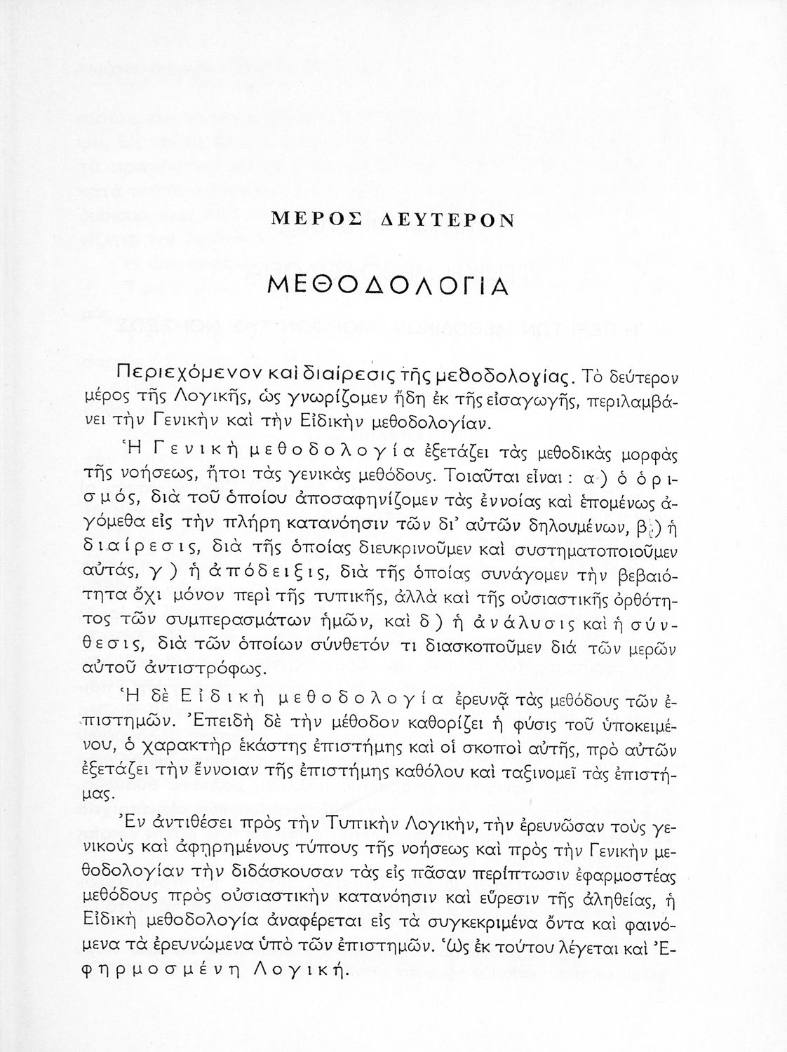 Βαθμίδα εκπαίδευσης: Δευτεροβάθμια Τάξη: ΣΤ' Γυμνασίου Μάθημα: Λογική Γλώσσα: Απλή καθαρεύουσα Παρουσίαση περιεχομένου: Σχολικό εγχειρίδιο Λογικής ΣΤ΄ Γυμνασίου που είναι δομημένο θεματικά και περιλαμβάνει ζητήματα τυπικής λογικής, μεθοδολογίας και γνωσιολογίας. Περιέχει παράρτημα με ασκήσεις λογικής. |
