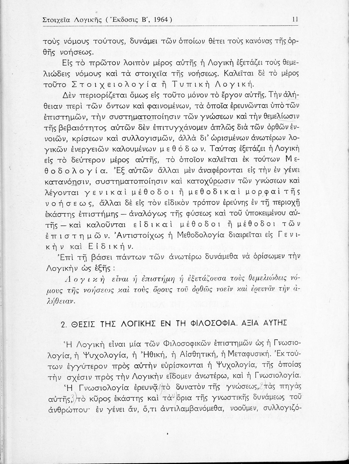 Σχολικό εγχειρίδιο Λογικής για τη ΣΤ΄ Γυμνασίου που είναι χωρισμένο σε στοιχειολογία ή τυπική λογική, μεθοδολογία και γνωσιολογία. Περιέχει ασκήσεις λογικής.