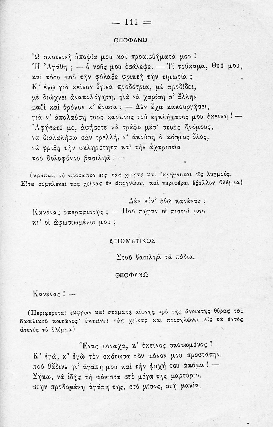 Τραγωδία γραμμένη από τον Αριστομένη Προβελέγγιο που χωρίζεται σε πέντε πράξεις και βραβεύτηκε στον Β΄ Αβερώφειο Διαγωνισμό του 1913.