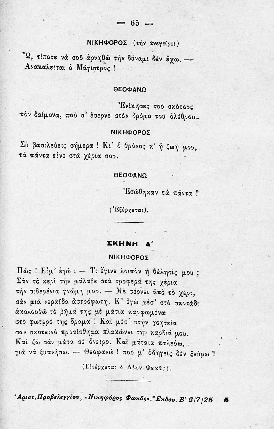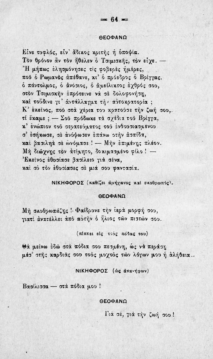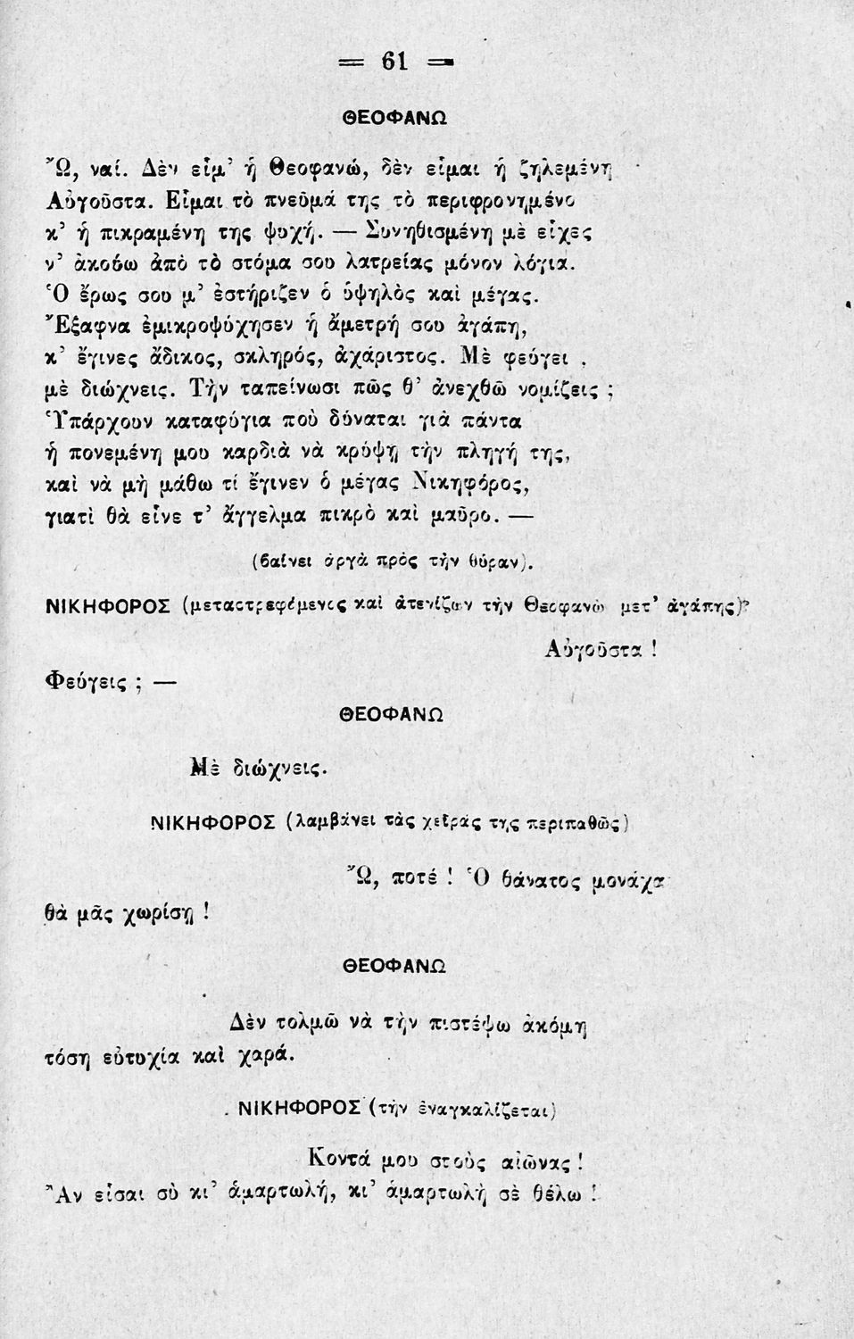 Τραγωδία γραμμένη από τον Αριστομένη Προβελέγγιο που χωρίζεται σε πέντε πράξεις και βραβεύτηκε στον Β΄ Αβερώφειο Διαγωνισμό του 1913.