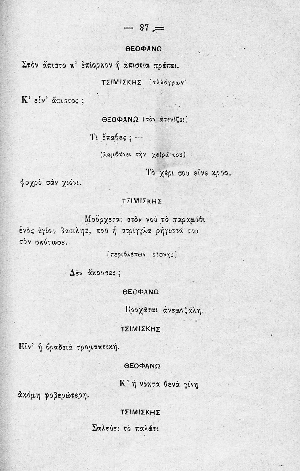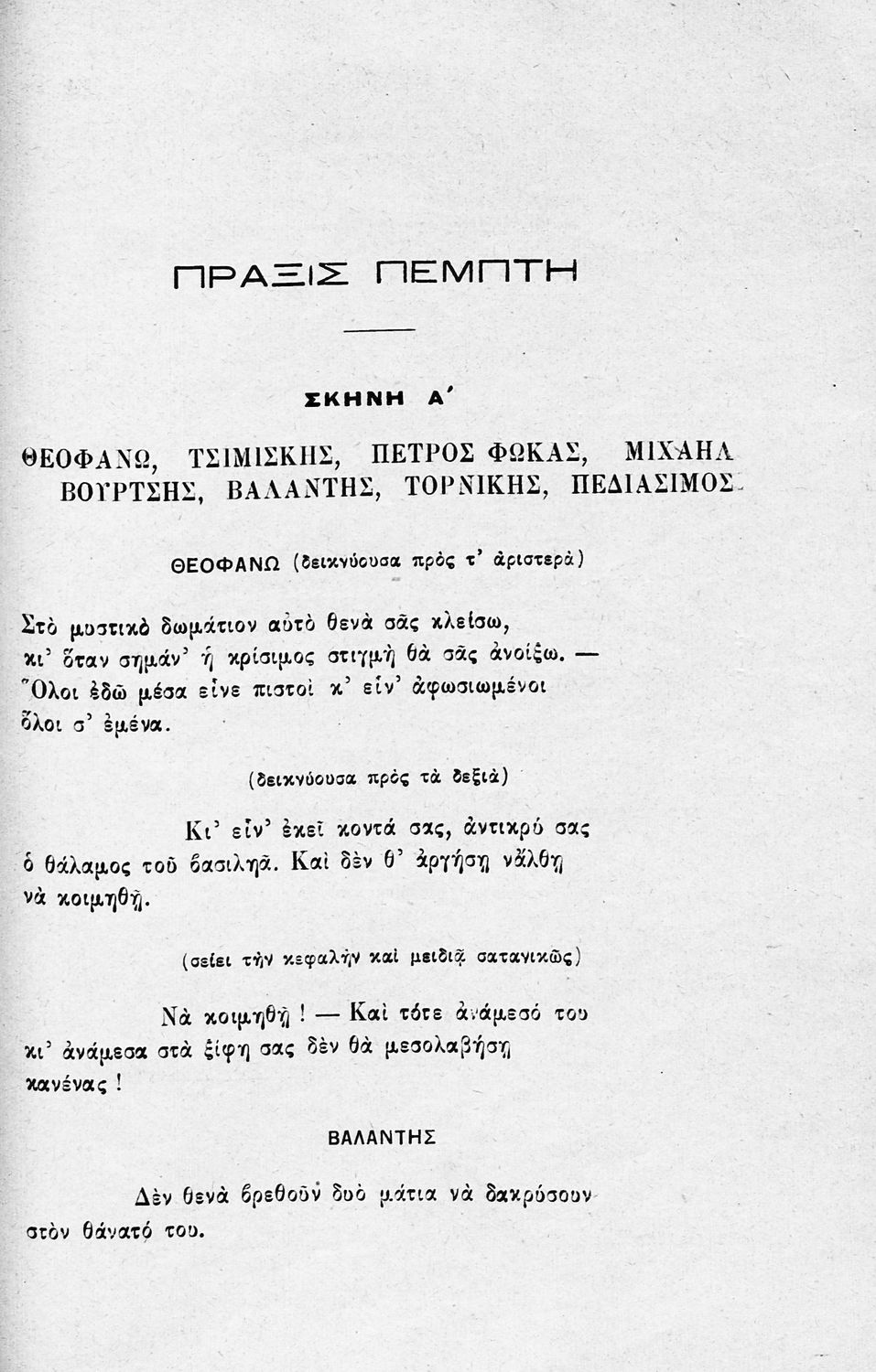 Τραγωδία γραμμένη από τον Αριστομένη Προβελέγγιο που χωρίζεται σε πέντε πράξεις και βραβεύτηκε στον Β΄ Αβερώφειο Διαγωνισμό του 1913.