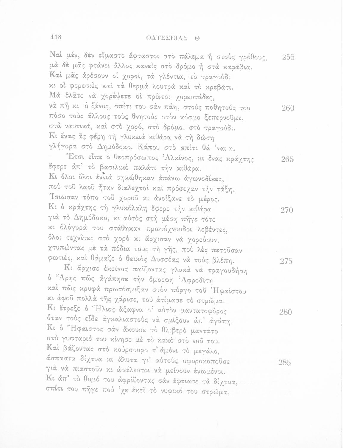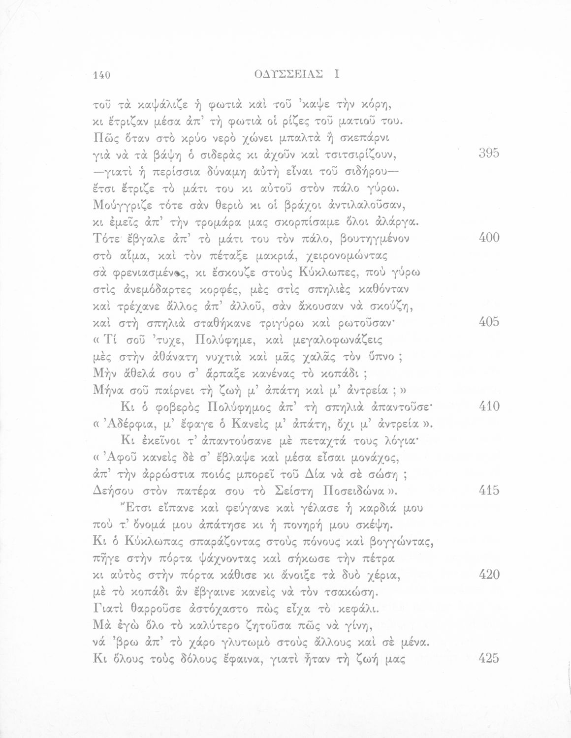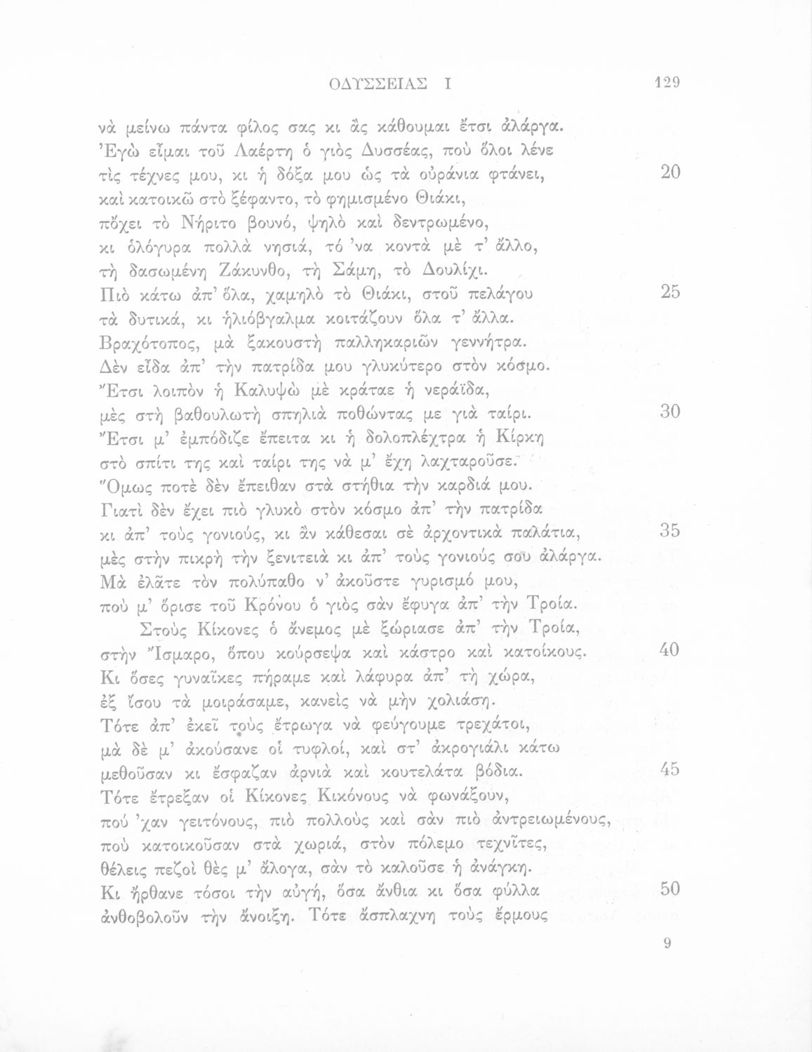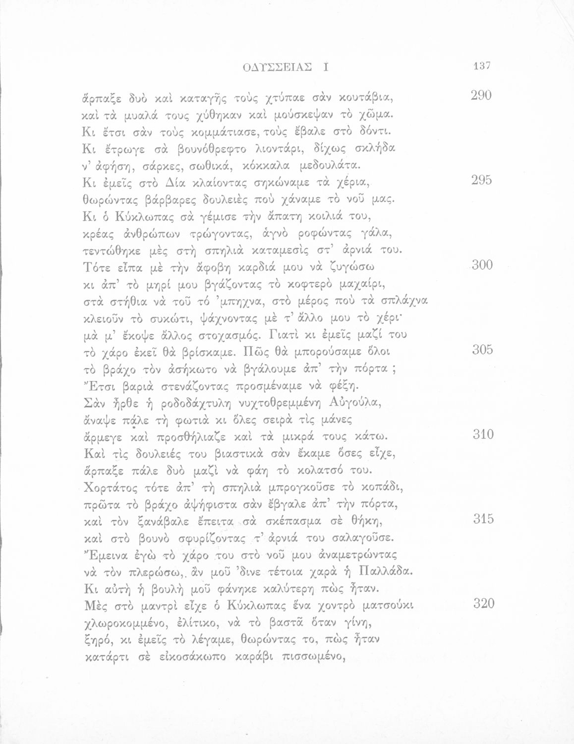 Σχολικό εγχειρίδιο του Γυμνασίου για το μάθημα των Αρχαίων Ελληνικών. Πρόκειται για το κείμενο της Οδύσσειας μεταφρασμένο στο τέλος περιλαμβάνει λεξιλόγιο.