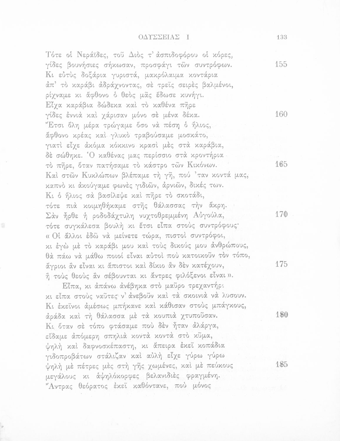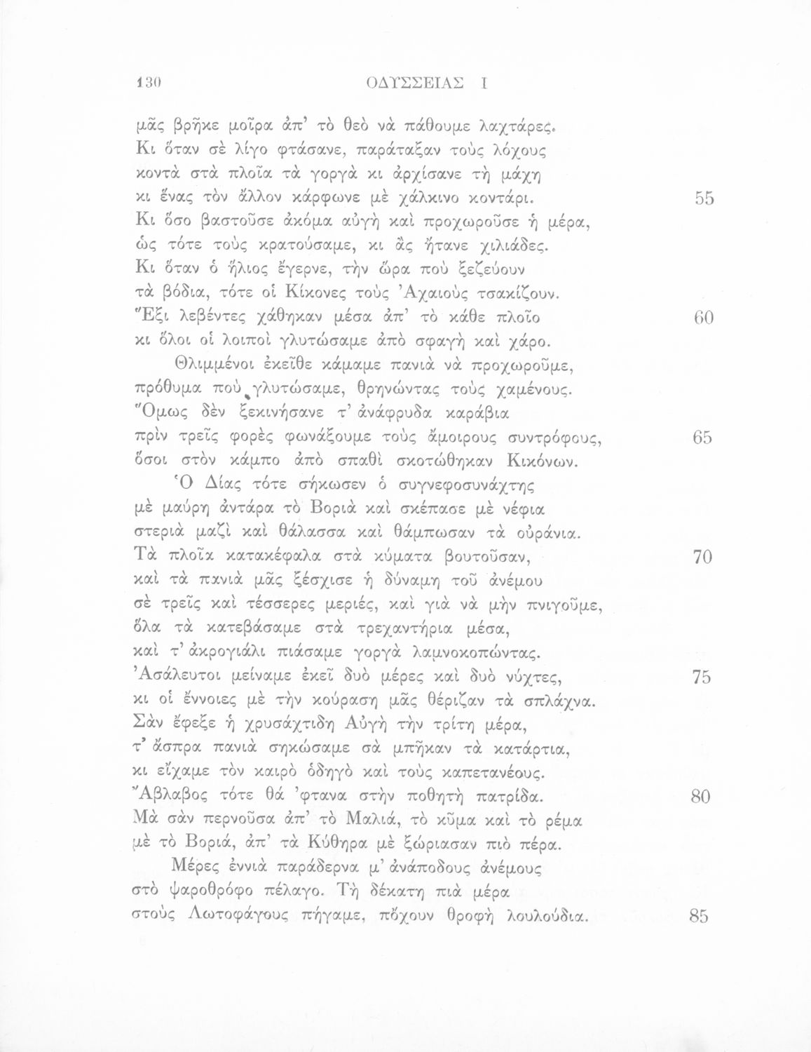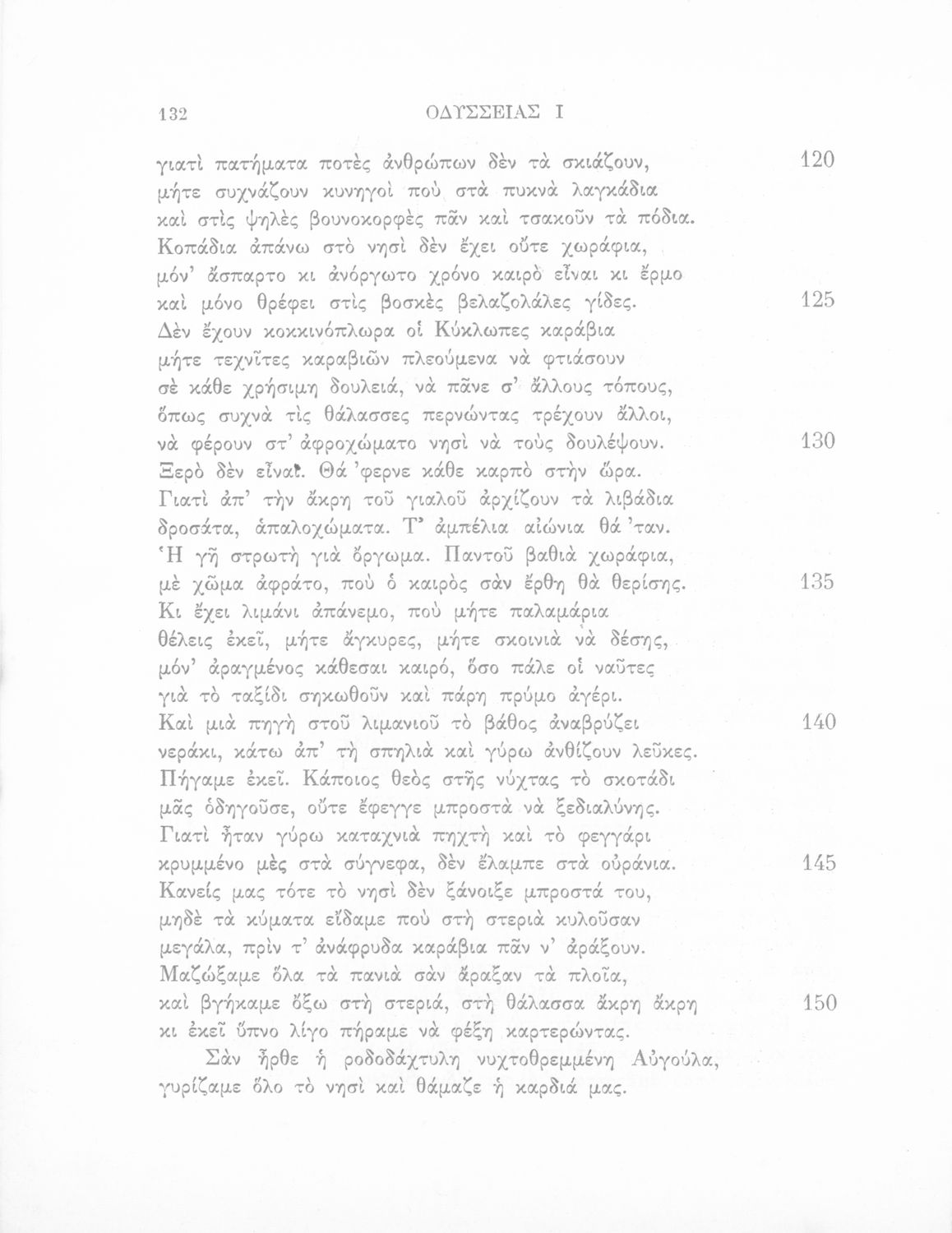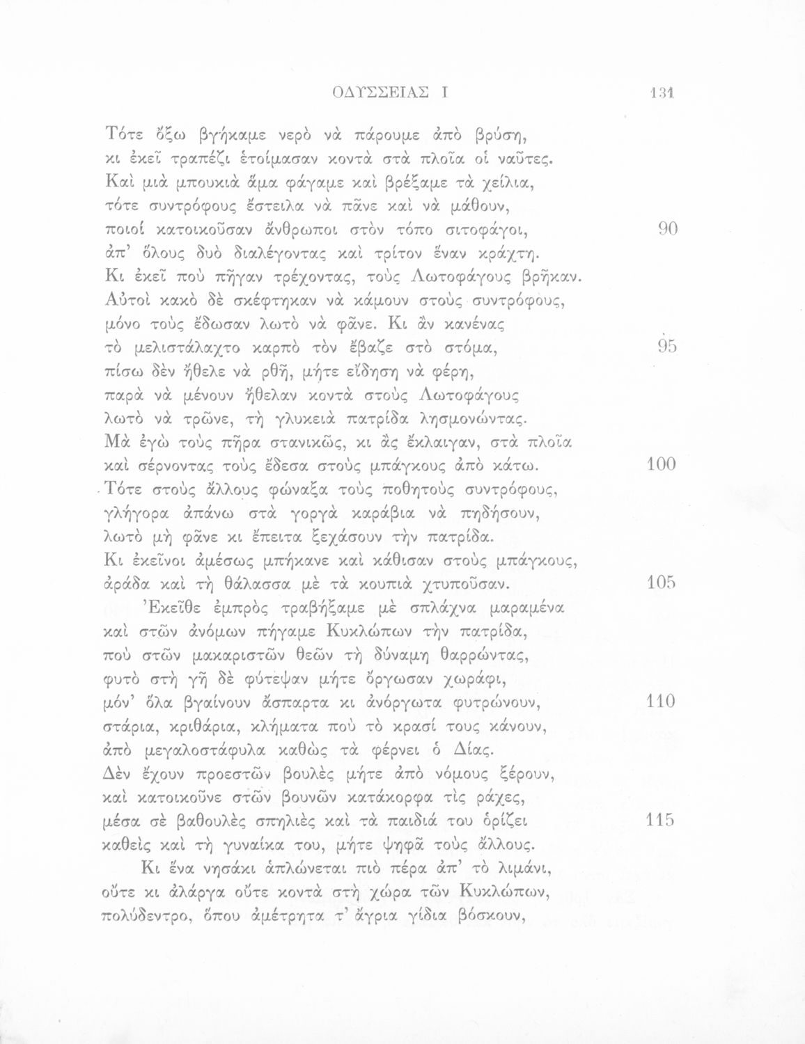 Σχολικό εγχειρίδιο της Δευτεροβάθμιας Εκπαίδευσης για το μάθημα των Αρχαίων Ελληνικών. Πρόκειται για το κείμενο της Οδύσσειας μεταφρασμένο, με πραγματολογικές παρατηρήσεις. Στο τέλος περιλαμβάνει λεξιλόγιο.