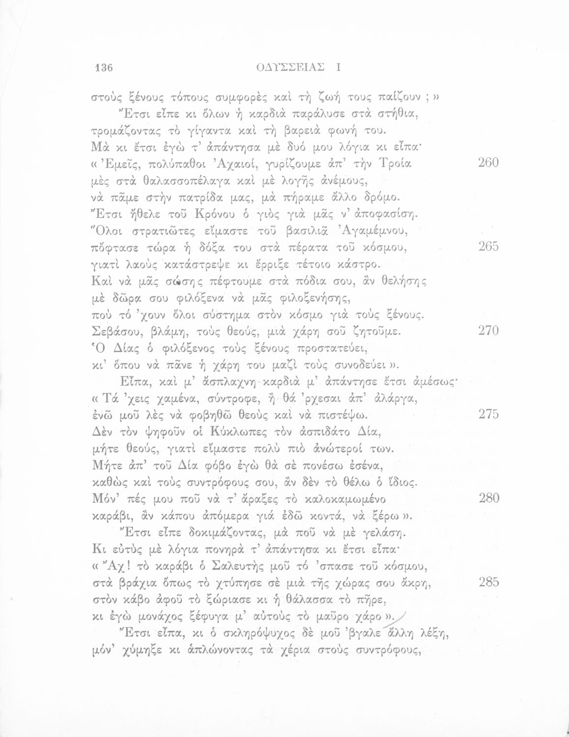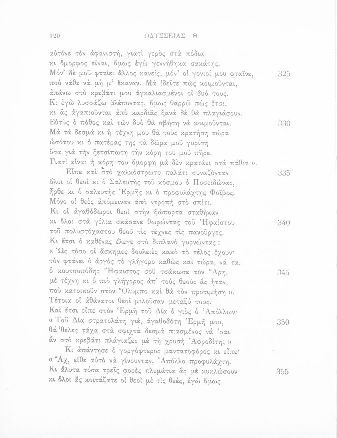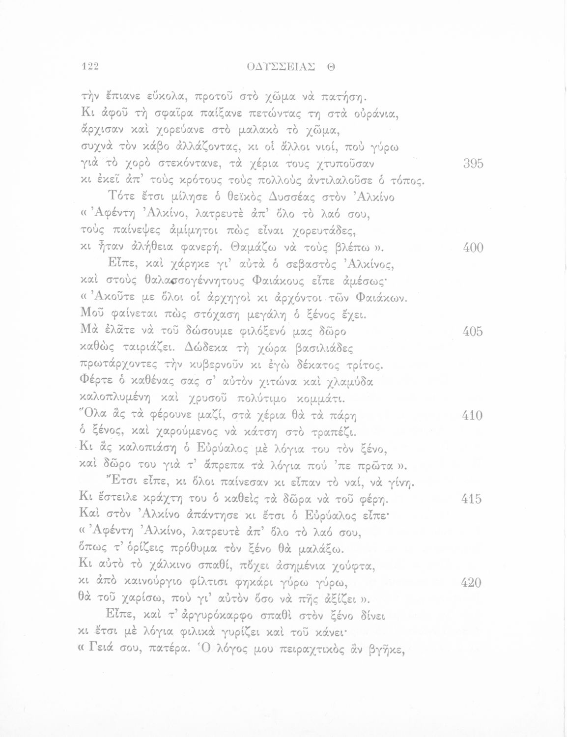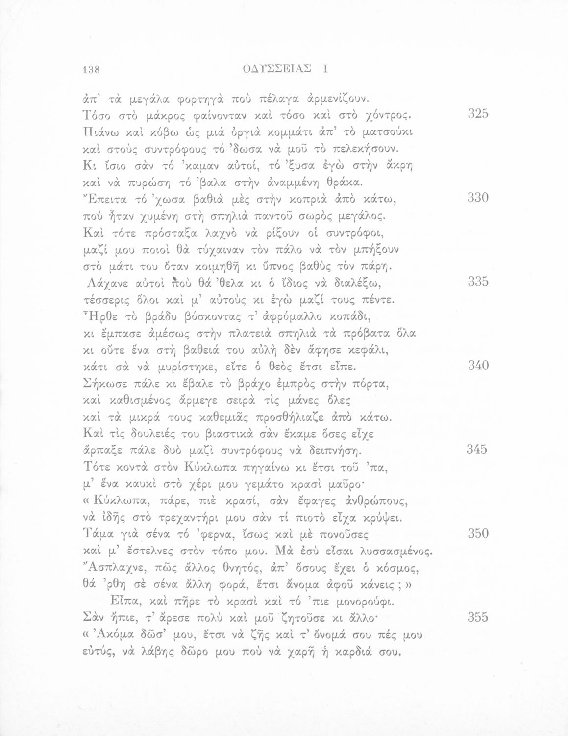 Σχολικό εγχειρίδιο της Δευτεροβάθμιας Εκπαίδευσης για το μάθημα των Αρχαίων Ελληνικών. Πρόκειται για το κείμενο της Οδύσσειας μεταφρασμένο, με πραγματολογικές παρατηρήσεις. Στο τέλος περιλαμβάνει λεξιλόγιο.