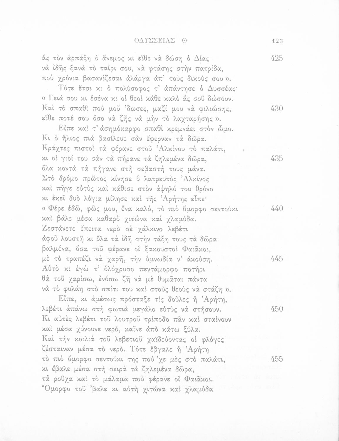 Παιδαγωγικό βοήθημα Αρχαίων Ελληνικών που περιλαμβάνει μετάφραση της Ομήρου Οδύσσειας στη νέα ελληνική, εισαγωγή στην επική ποίηση και στην Οδύσσεια, περιλήψεις και σημειώσεις.