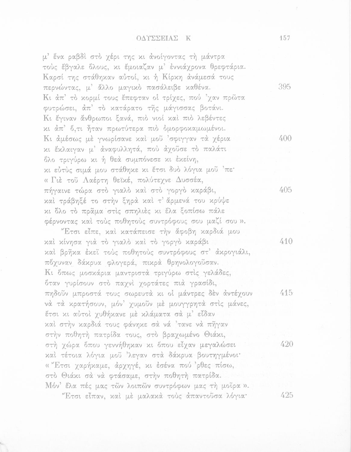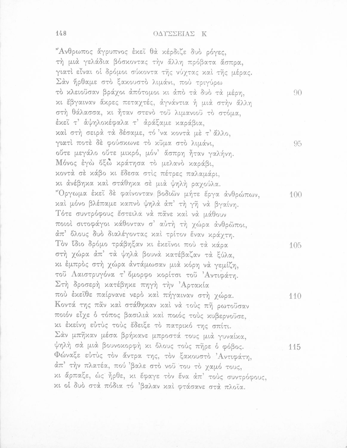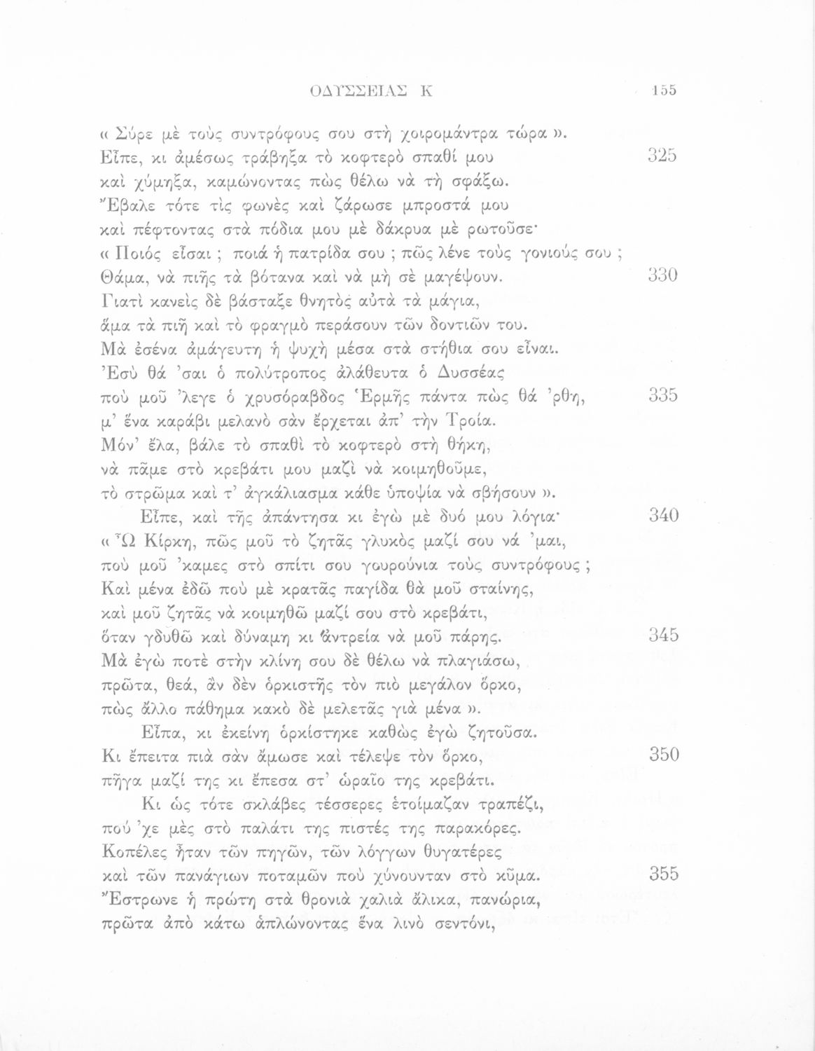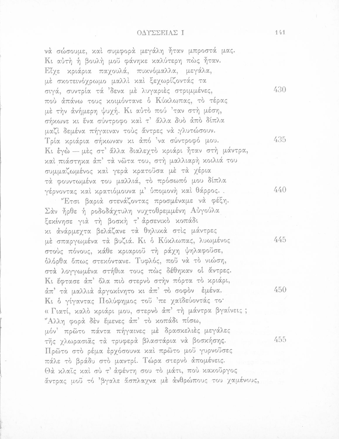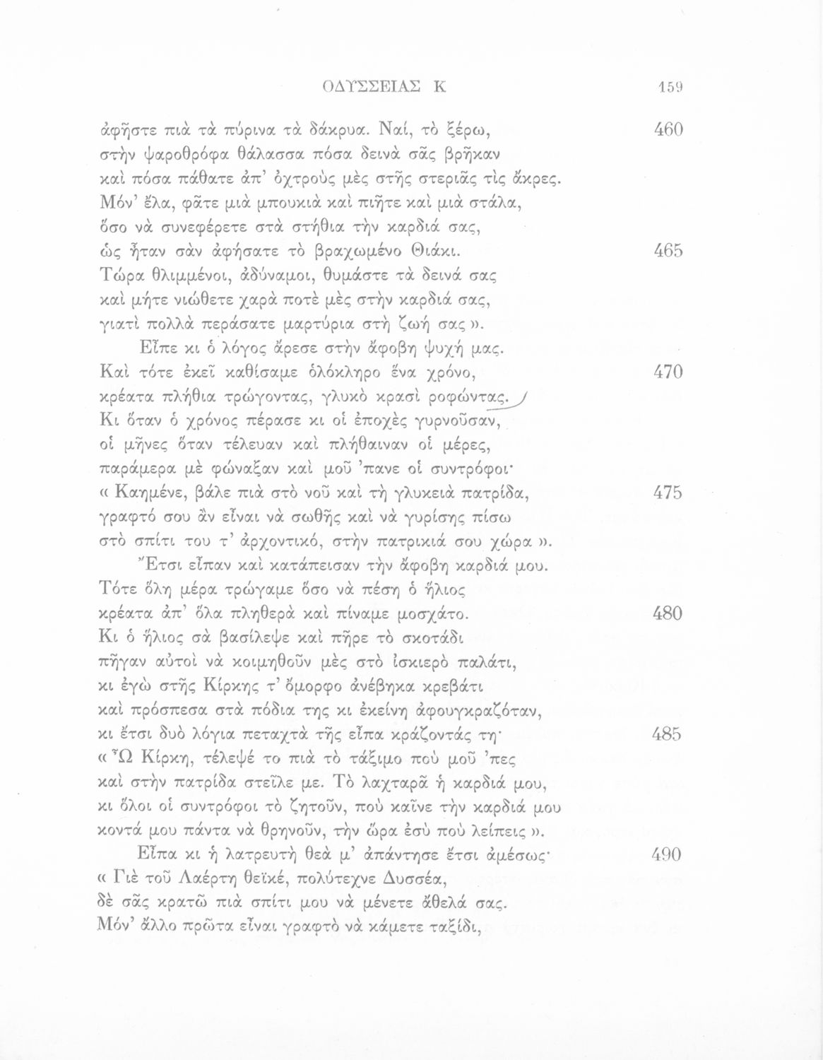 Παιδαγωγικό βοήθημα Αρχαίων Ελληνικών που περιλαμβάνει μετάφραση της Ομήρου Οδύσσειας στη νέα ελληνική, εισαγωγή στην επική ποίηση και στην Οδύσσεια, περιλήψεις και σημειώσεις.
