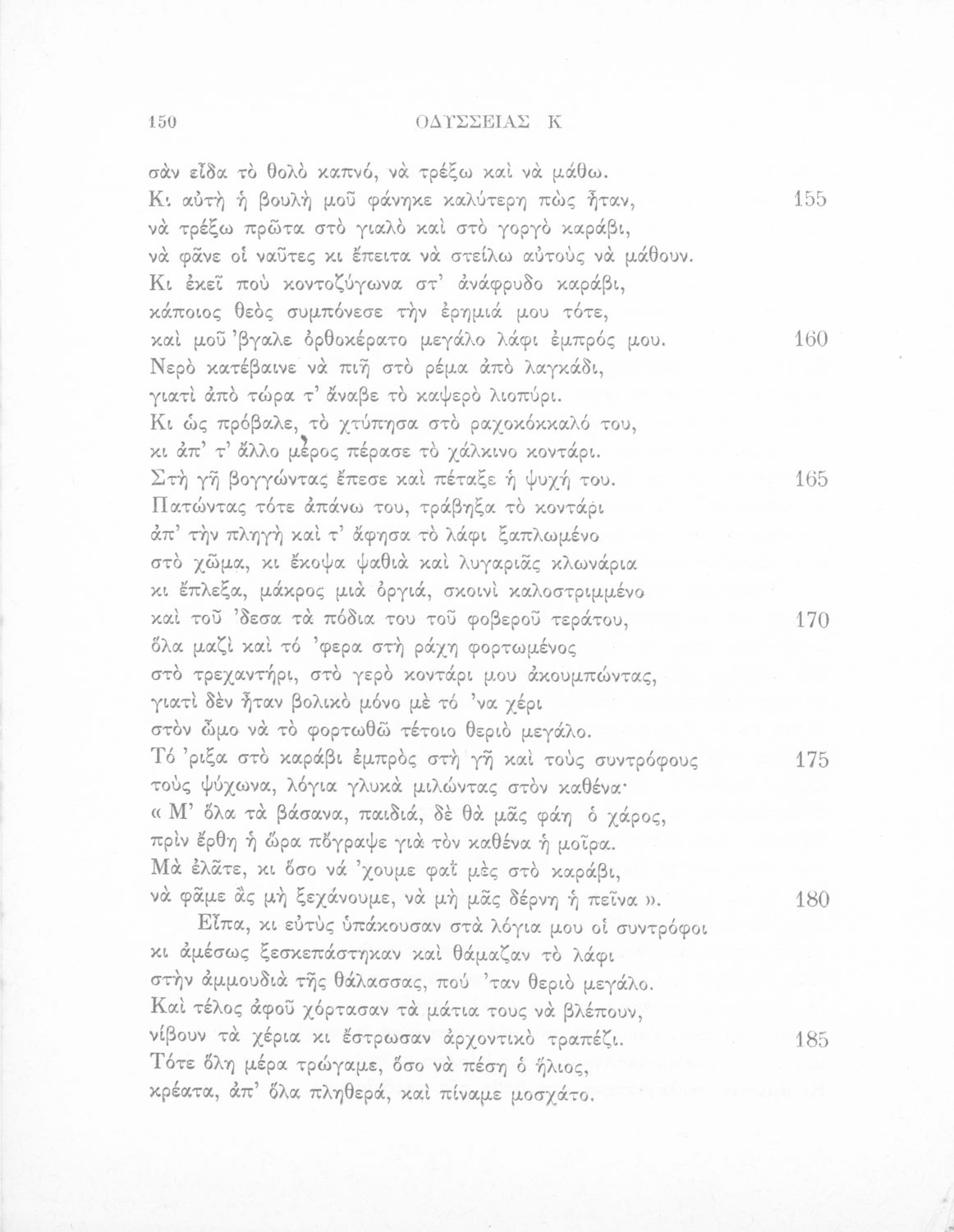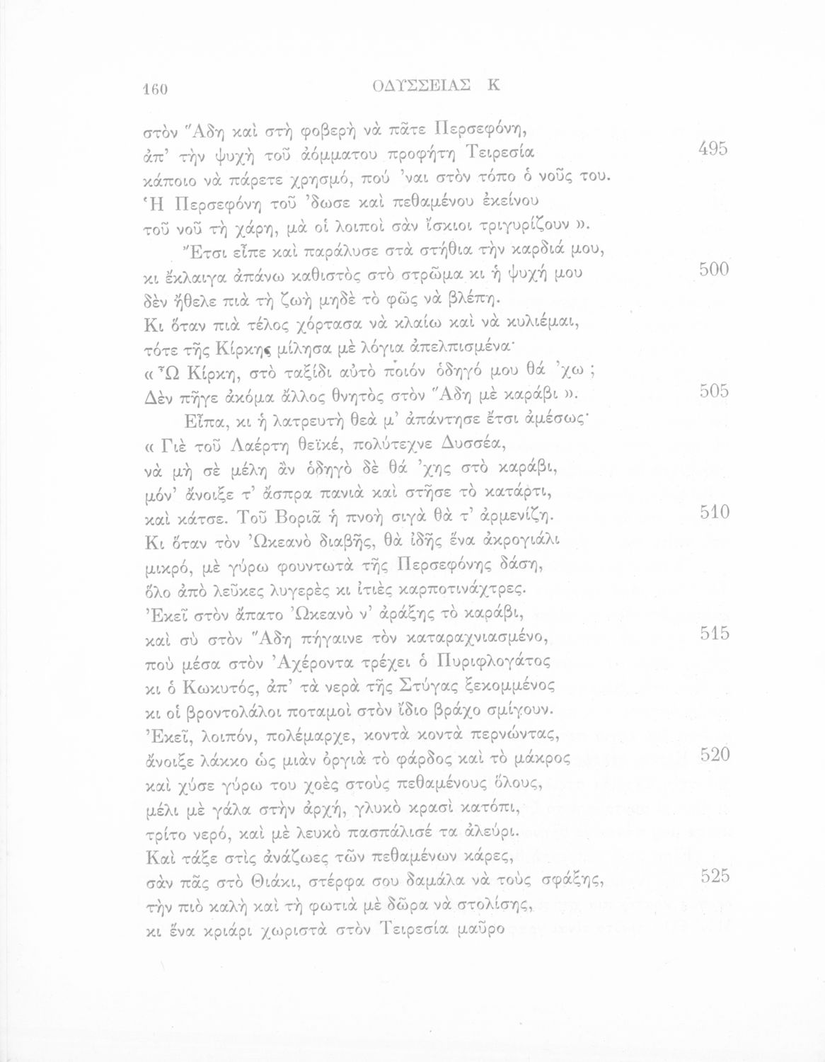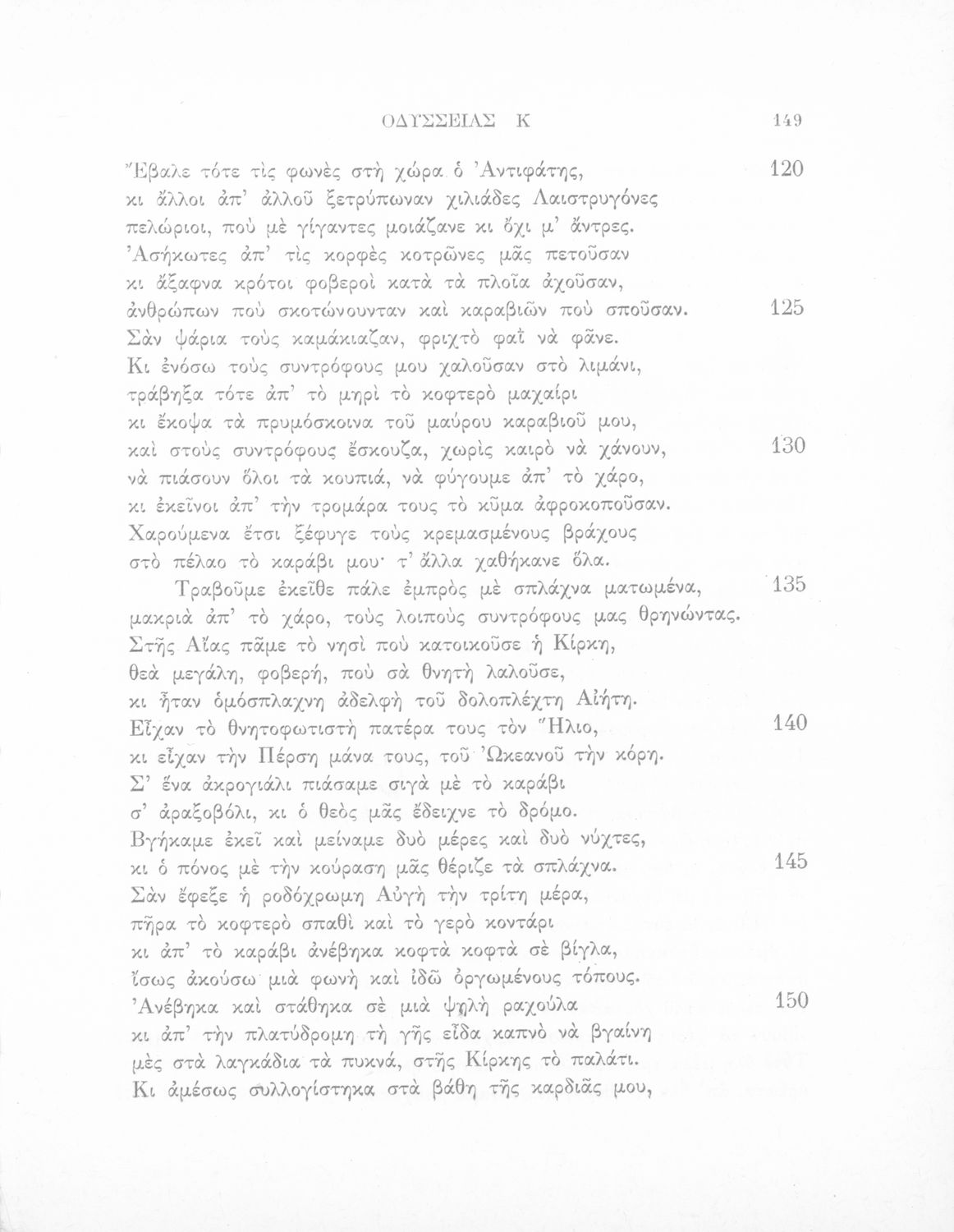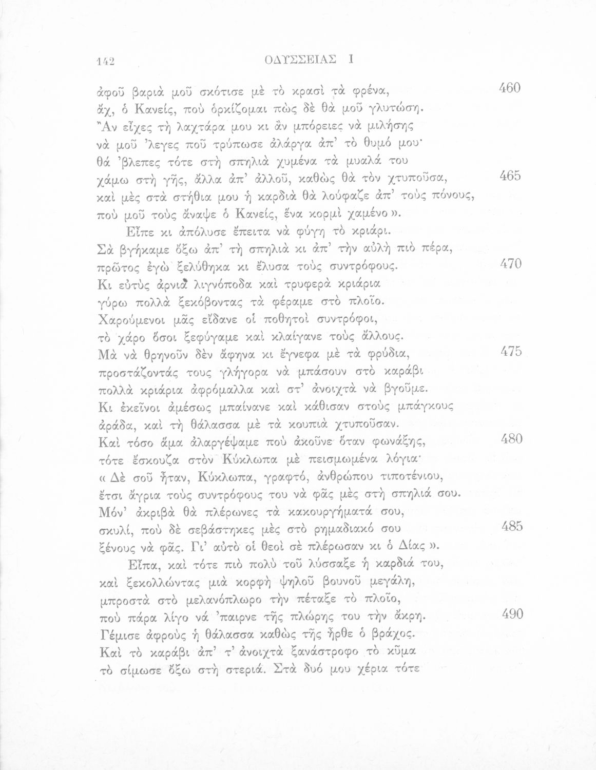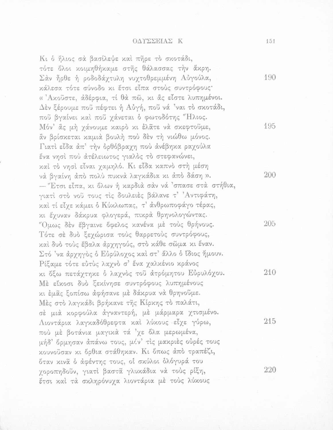 Σχολικό εγχειρίδιο της Δευτεροβάθμιας Εκπαίδευσης για το μάθημα των Αρχαίων Ελληνικών. Πρόκειται για το κείμενο της Οδύσσειας μεταφρασμένο, με πραγματολογικές παρατηρήσεις. Στο τέλος περιλαμβάνει λεξιλόγιο.
