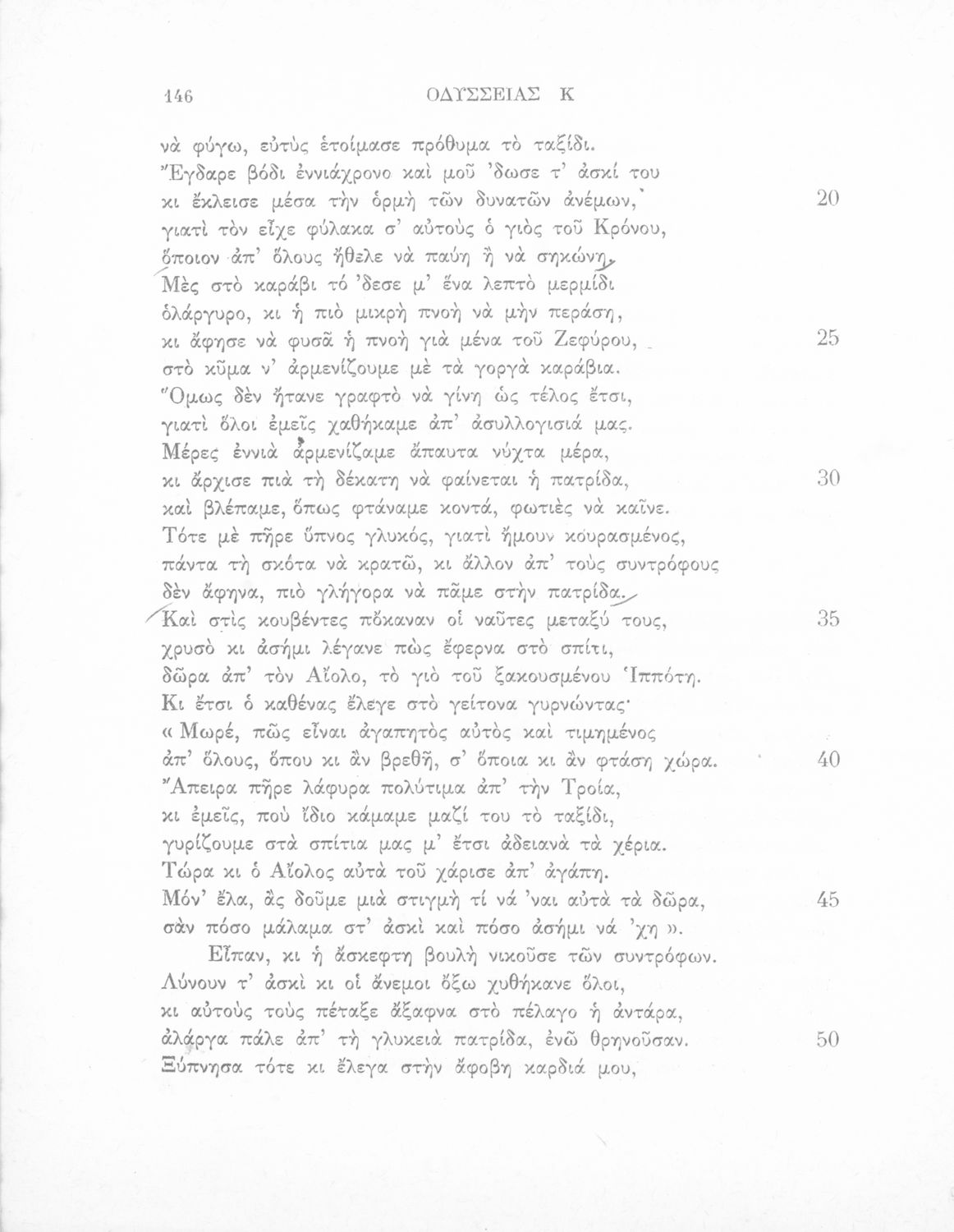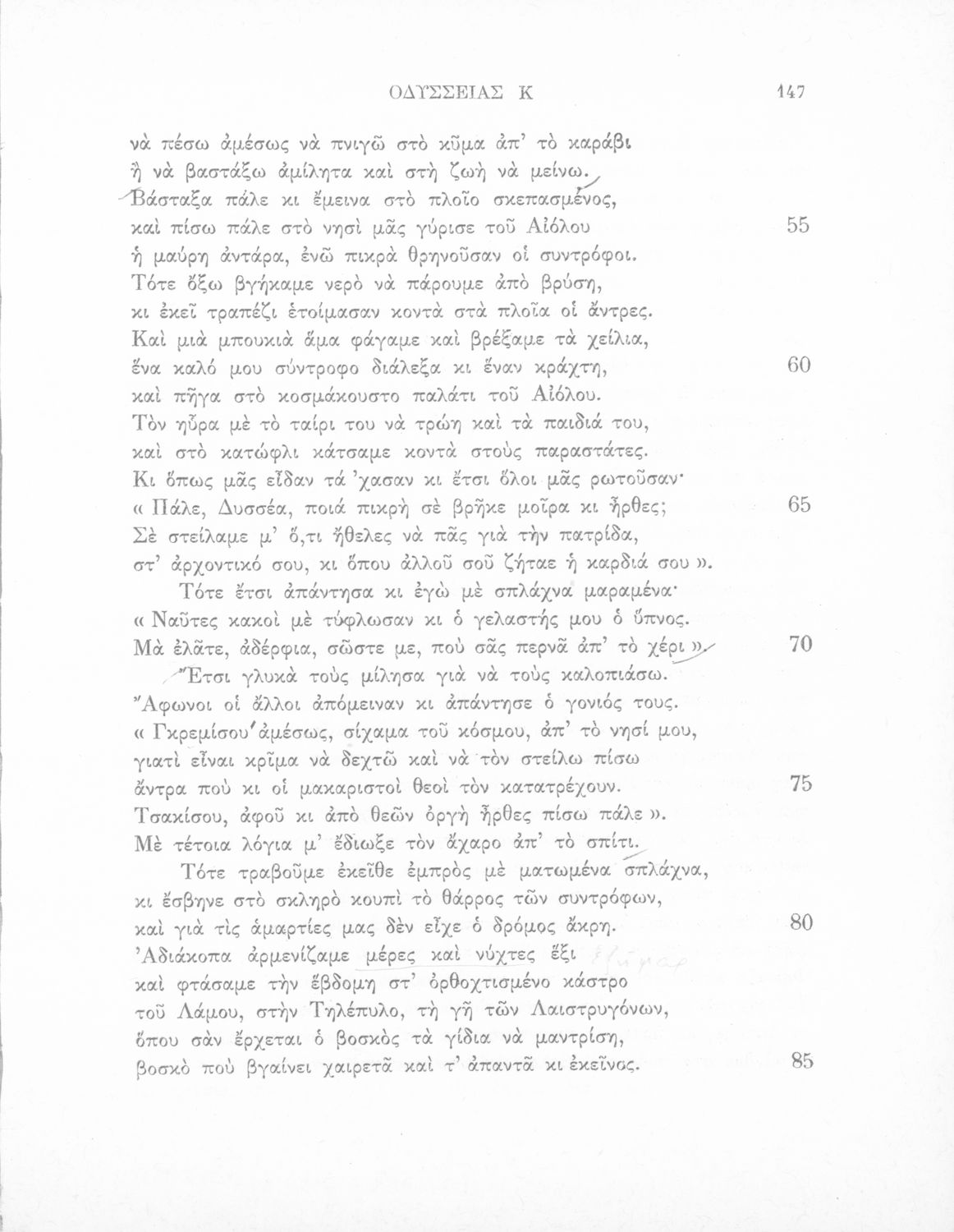 Παιδαγωγικό βοήθημα Αρχαίων Ελληνικών που περιλαμβάνει μετάφραση των ραψωδιών Ν-Ω της Οδύσσειας.