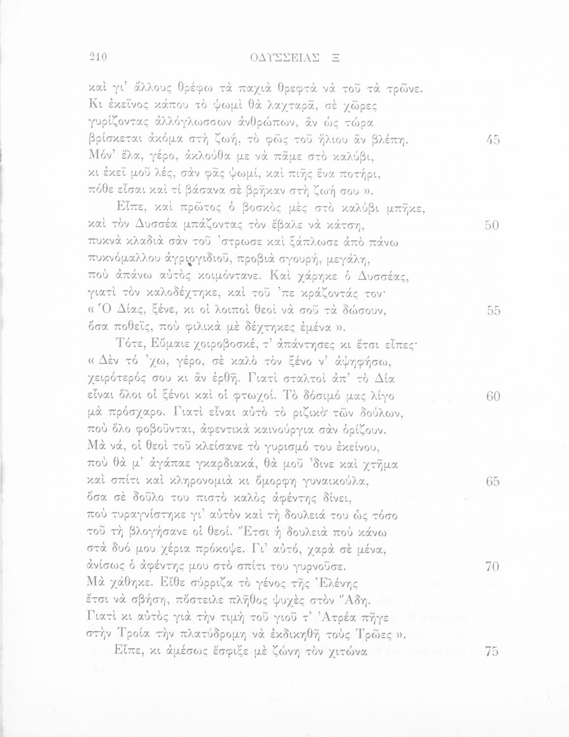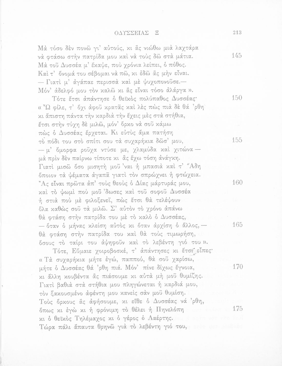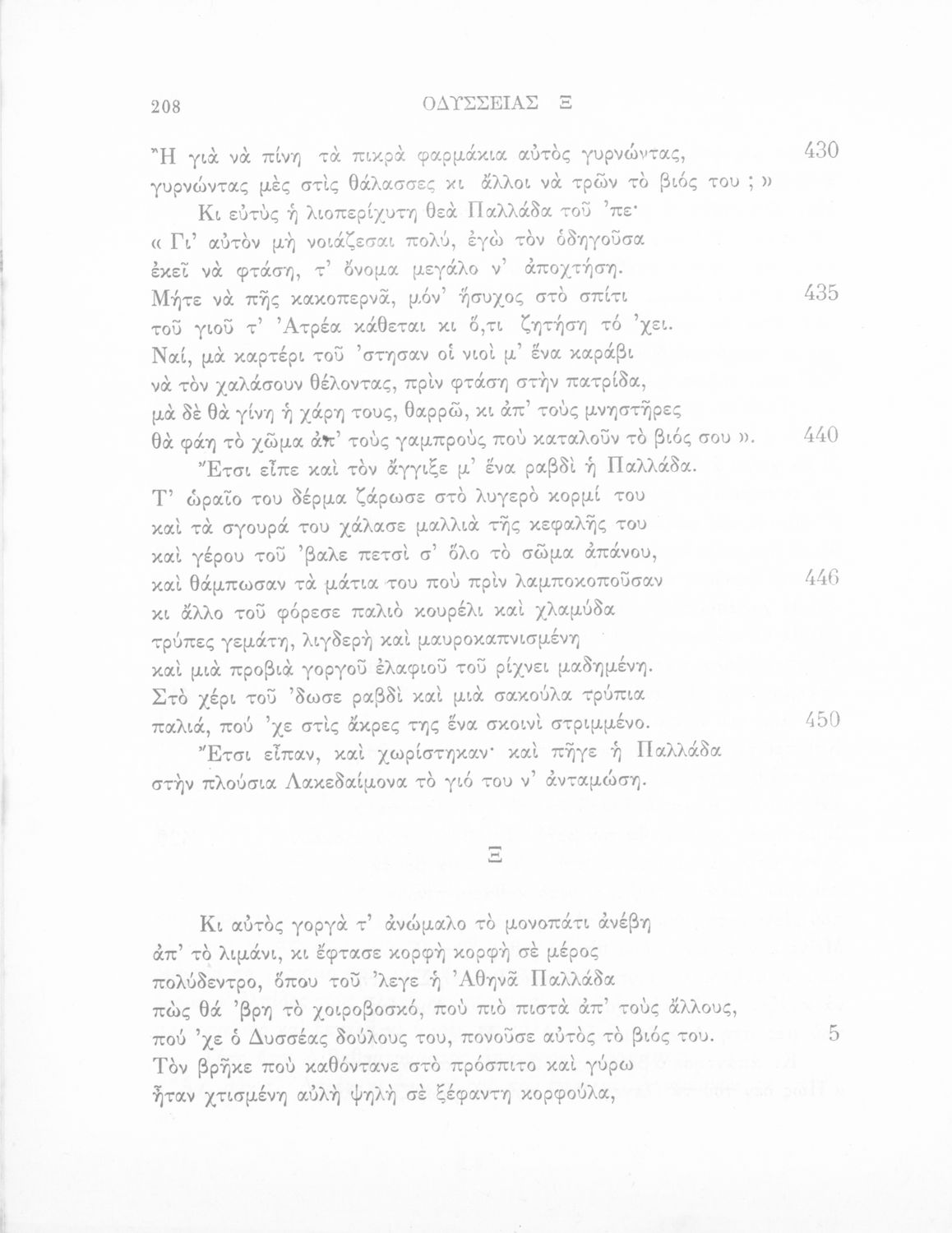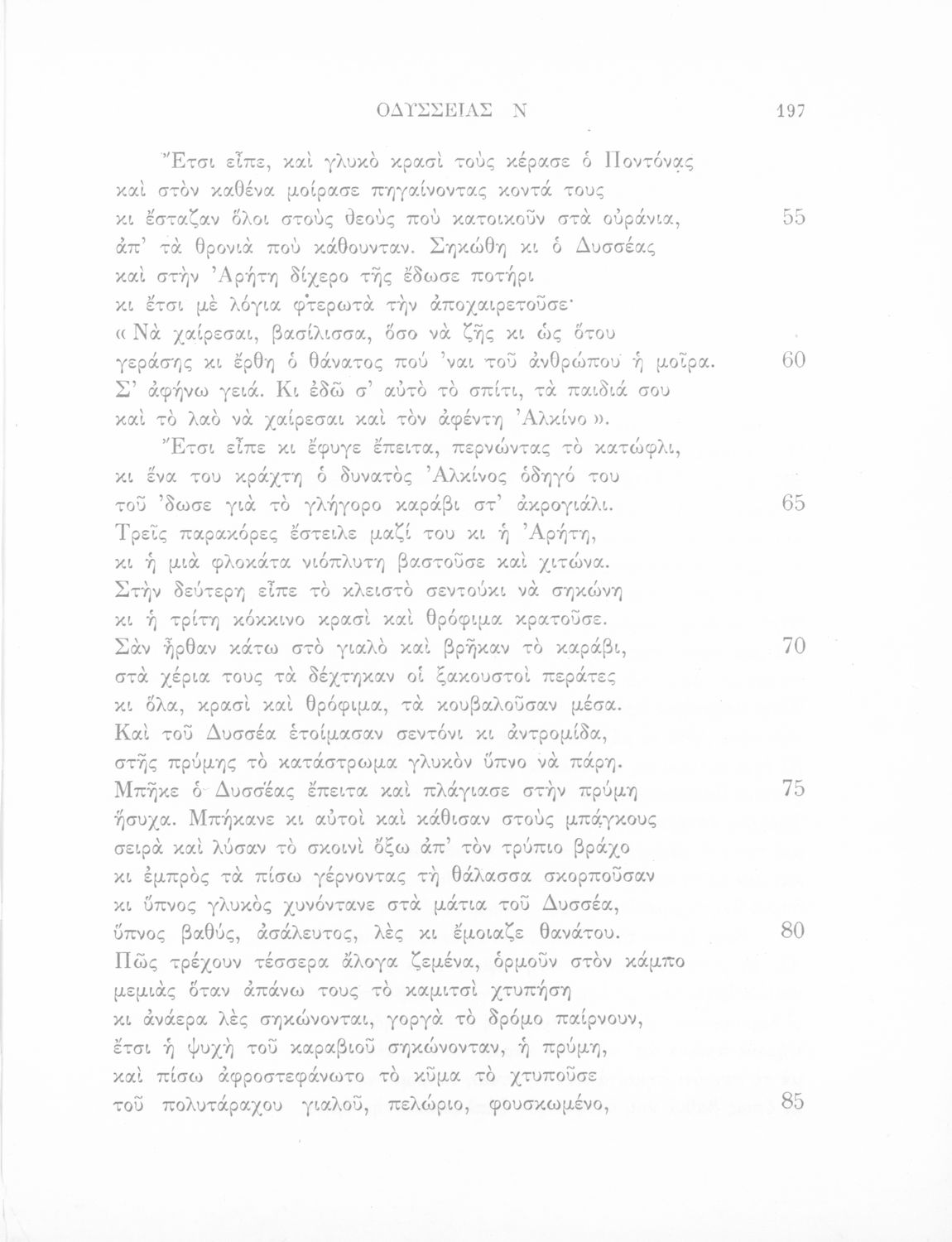 Παιδαγωγικό βοήθημα Αρχαίων Ελληνικών που περιλαμβάνει μετάφραση των ραψωδιών Ν-Ω της Οδύσσειας.