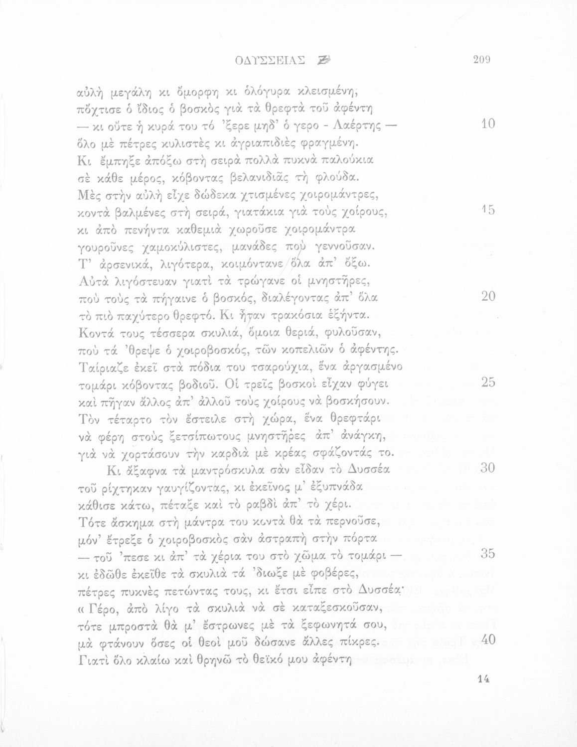 Παιδαγωγικό βοήθημα Αρχαίων Ελληνικών που περιλαμβάνει μετάφραση της Ομήρου Οδύσσειας στη νέα ελληνική, εισαγωγή στην επική ποίηση και στην Οδύσσεια, περιλήψεις και σημειώσεις.