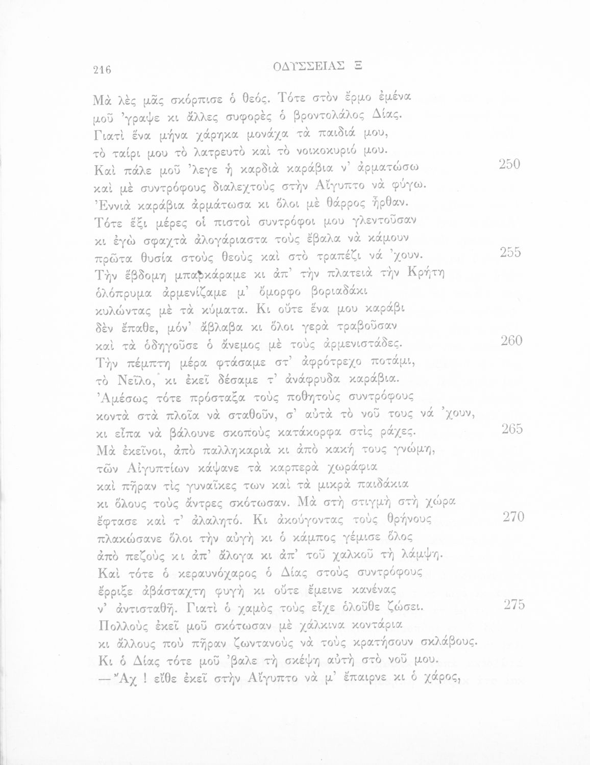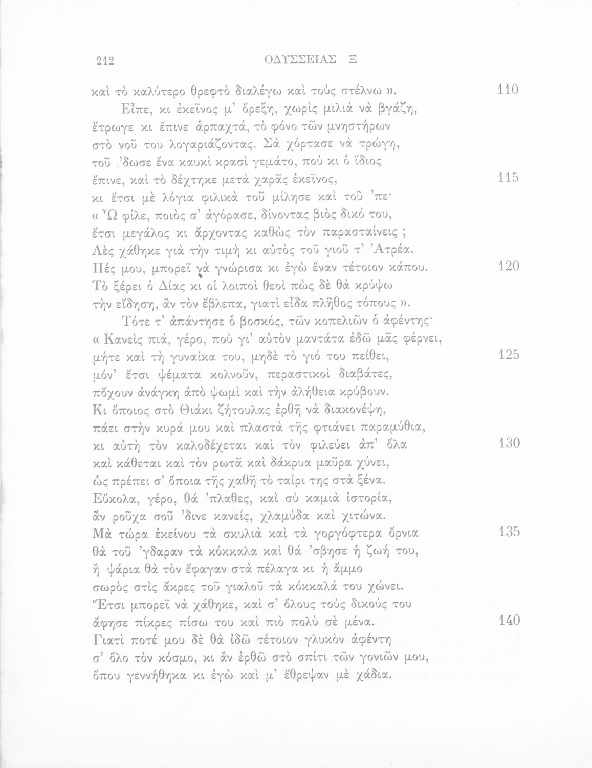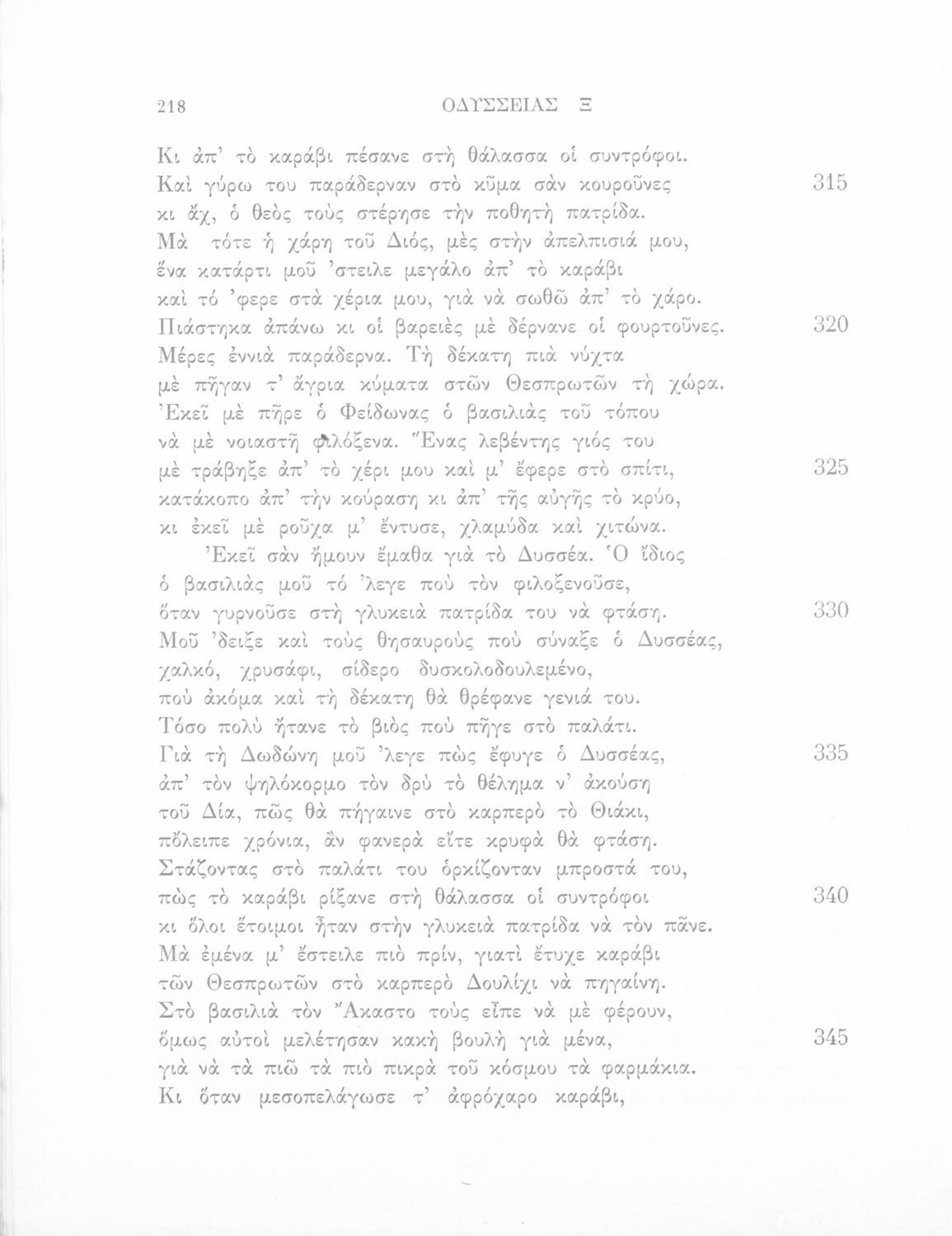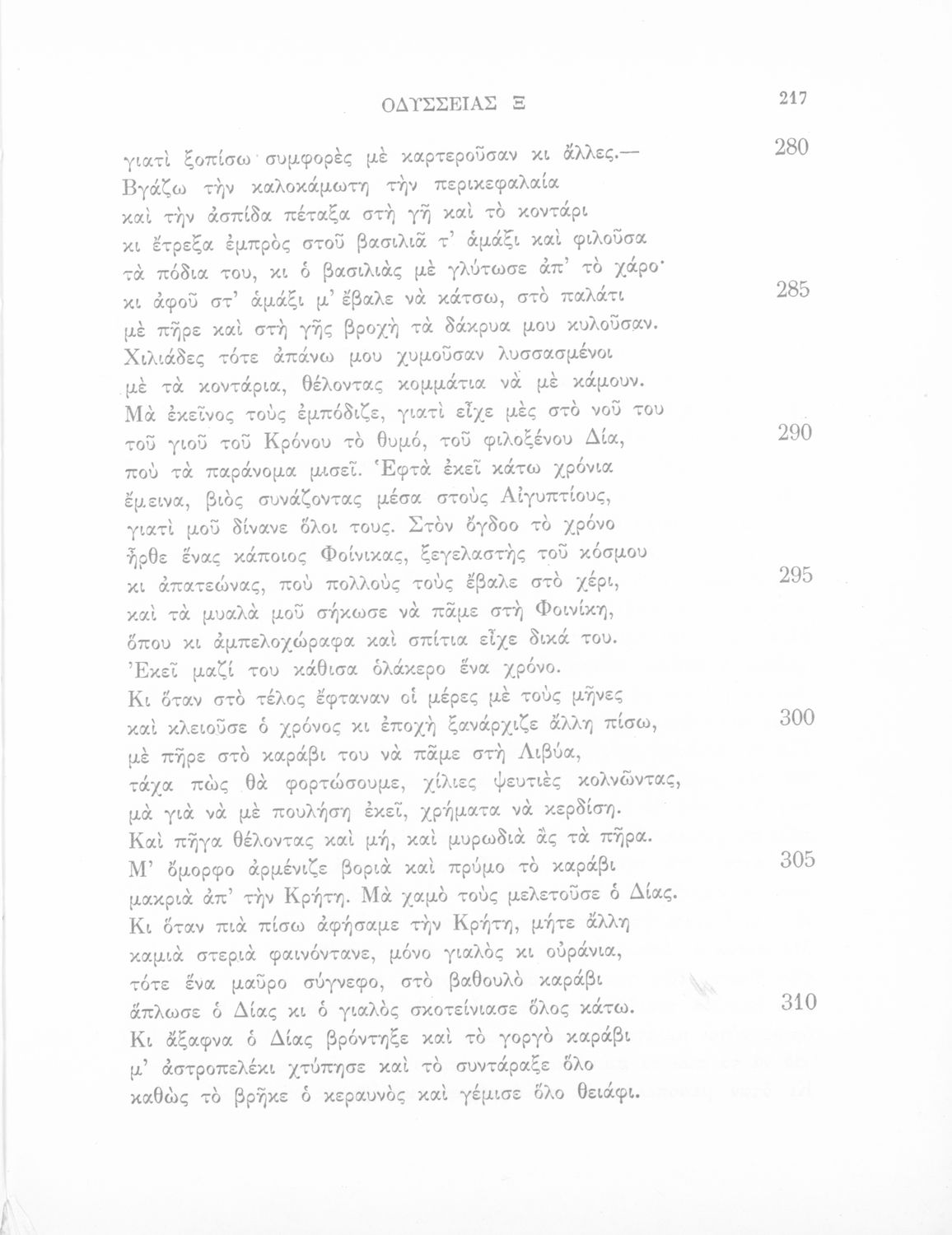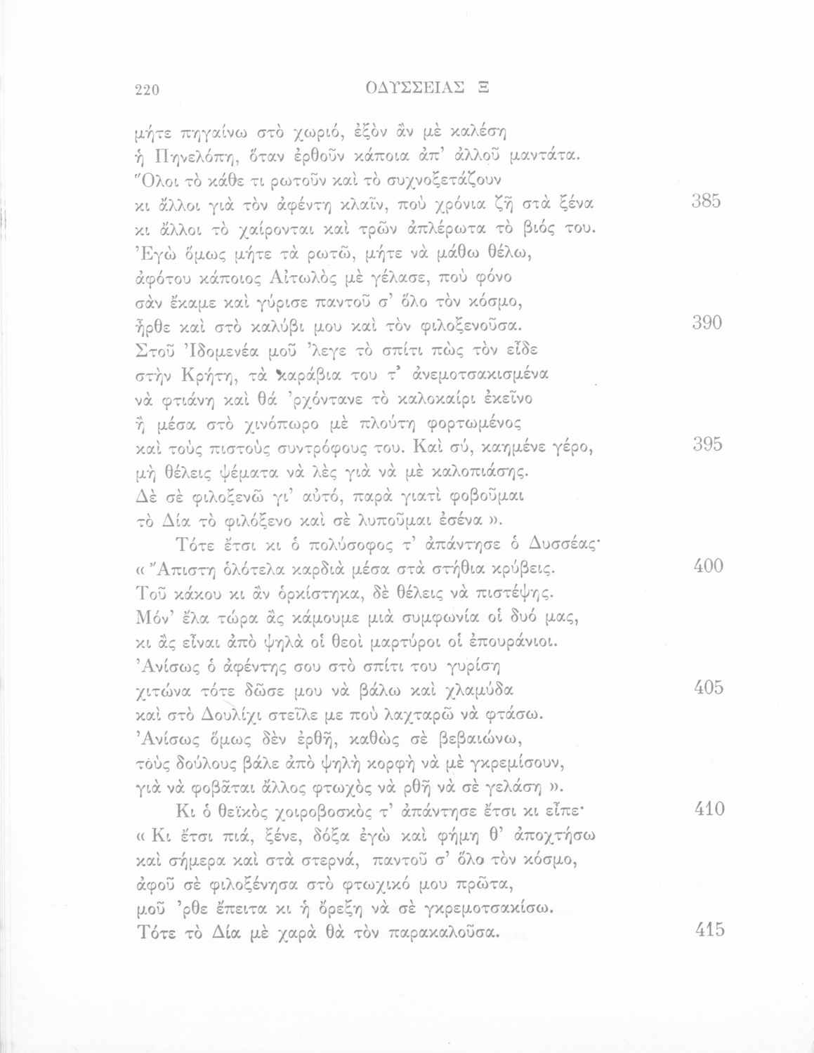 Σχολικό εγχειρίδιο της Δευτεροβάθμιας Εκπαίδευσης για το μάθημα των Αρχαίων Ελληνικών. Πρόκειται για το κείμενο της Οδύσσειας μεταφρασμένο, με πραγματολογικές παρατηρήσεις. Στο τέλος περιλαμβάνει λεξιλόγιο.