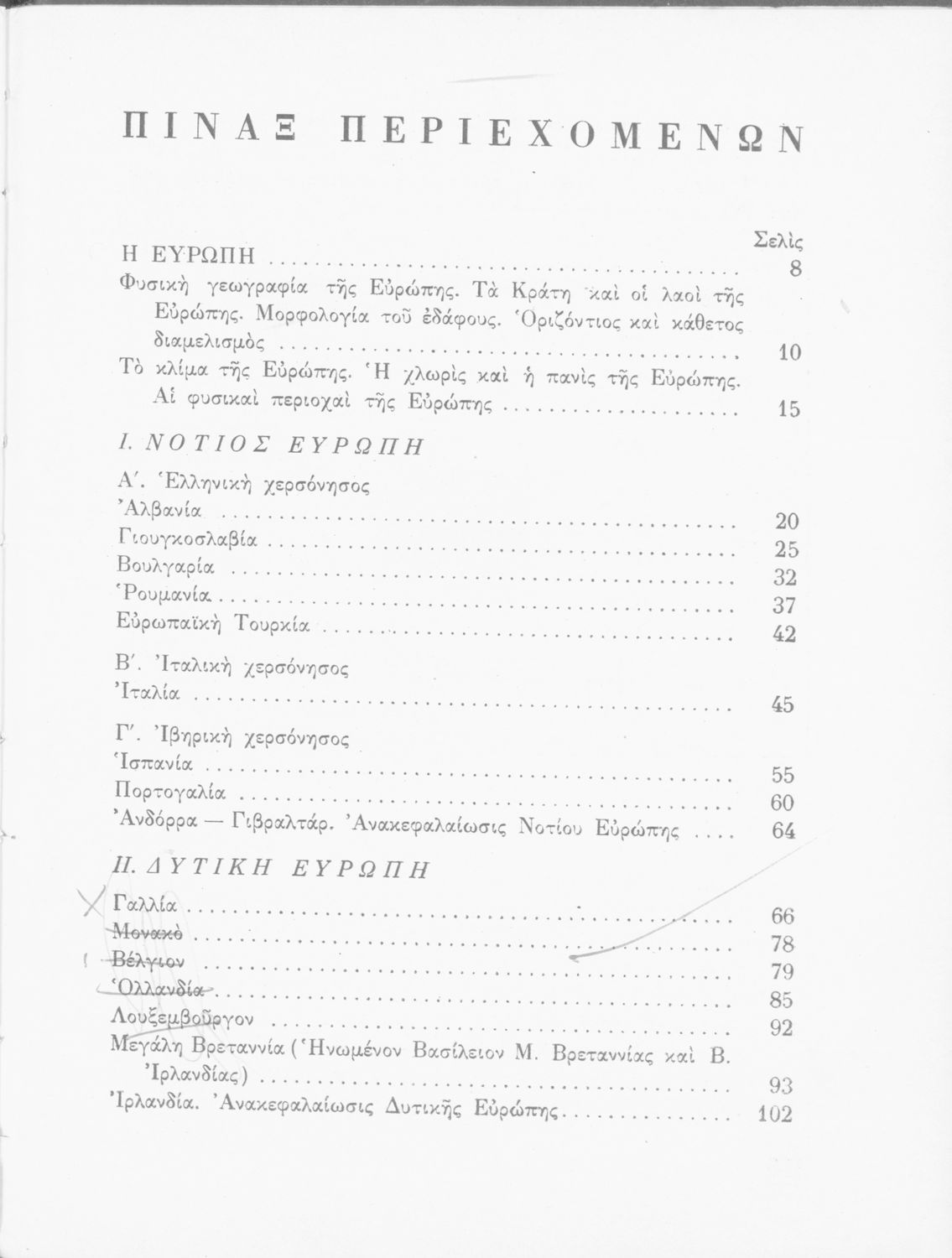 Σχολικό Εγχειρίδιο Γεωγραφίας Β΄ Γυμνασίου που περιλαμβάνει στοιχεία φυσικής και μαθηματικής γεωγραφίας και εξετάζει χώρες της Ευρώπης από γεωμορφολογική, οικονομική και πολιτική άποψη. Περιέχει και στοιχεία Γεωλογίας.