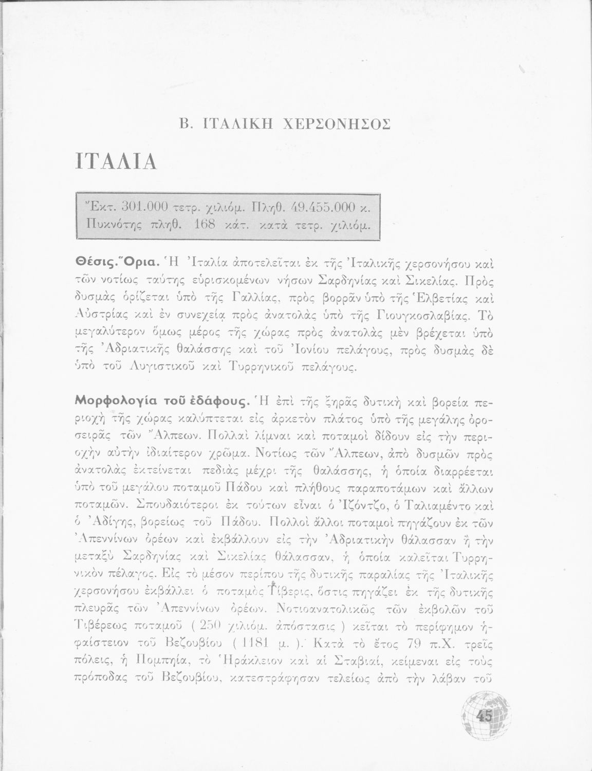 Σχολικό Εγχειρίδιο Γεωγραφίας Β΄ Γυμνασίου που περιλαμβάνει στοιχεία φυσικής και μαθηματικής γεωγραφίας και εξετάζει χώρες της Ευρώπης από γεωμορφολογική, οικονομική και πολιτική άποψη. Περιέχει και στοιχεία Γεωλογίας.