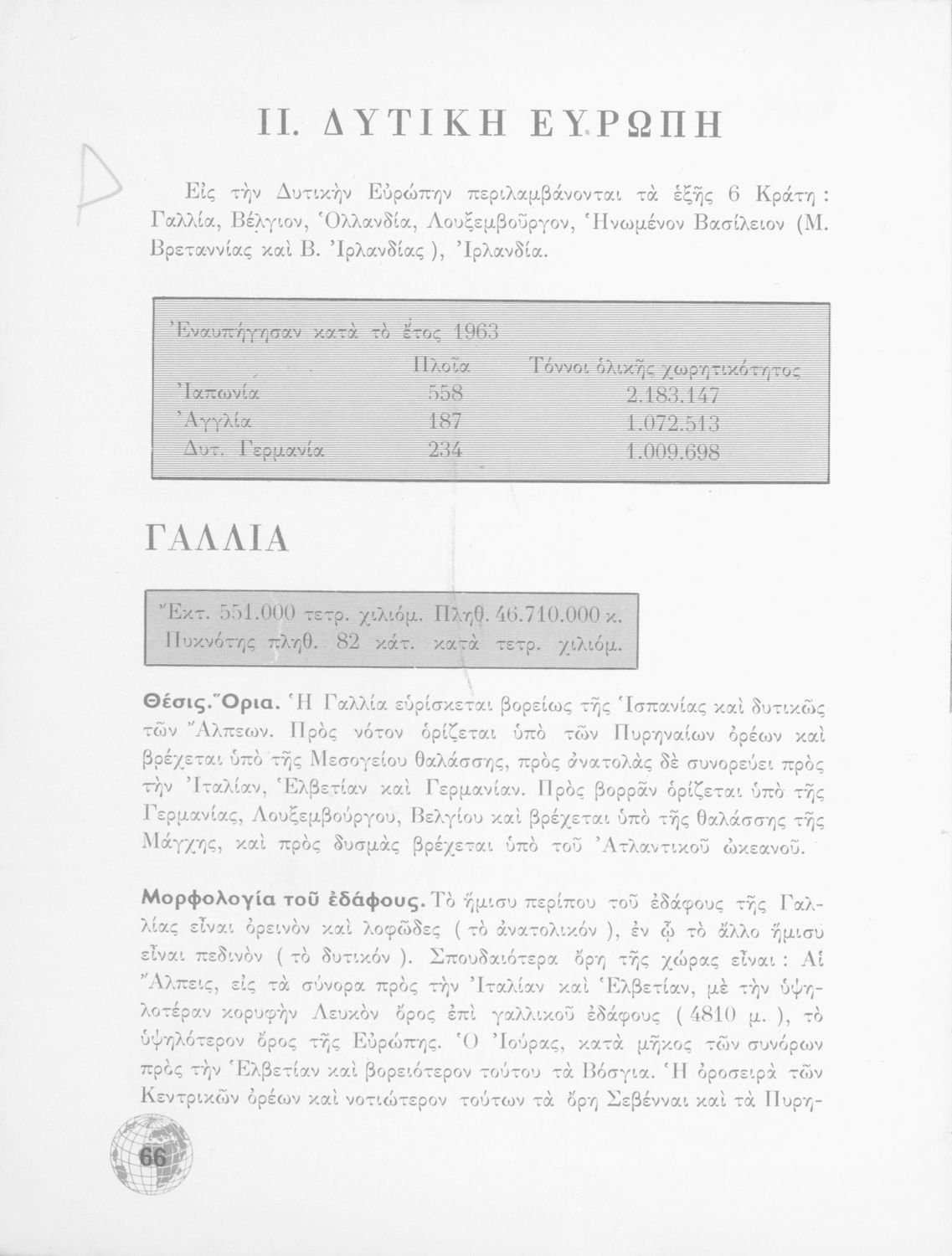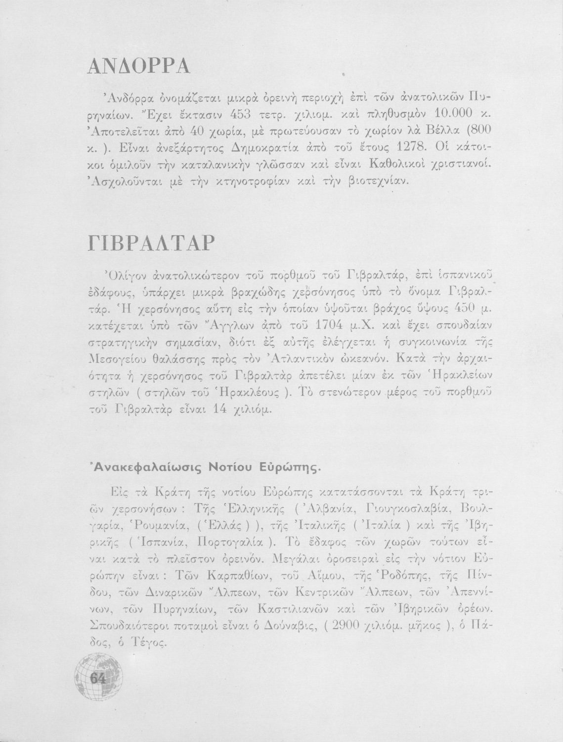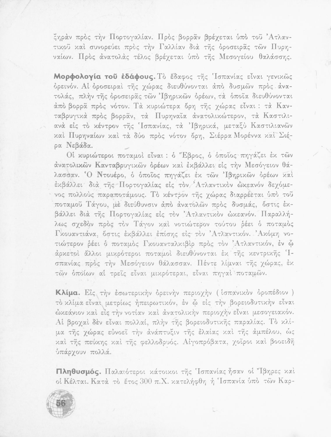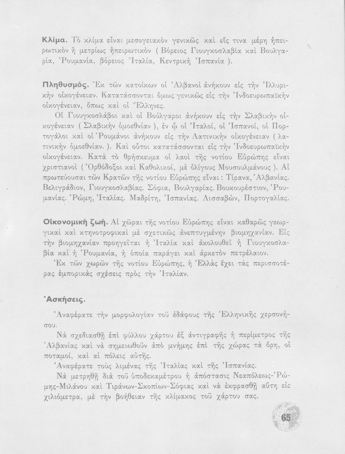 Σχολικό Εγχειρίδιο Γεωγραφίας Β΄ Γυμνασίου που περιλαμβάνει στοιχεία φυσικής και μαθηματικής γεωγραφίας και εξετάζει χώρες της Ευρώπης από γεωμορφολογική, οικονομική και πολιτική άποψη. Περιέχει και στοιχεία Γεωλογίας.
