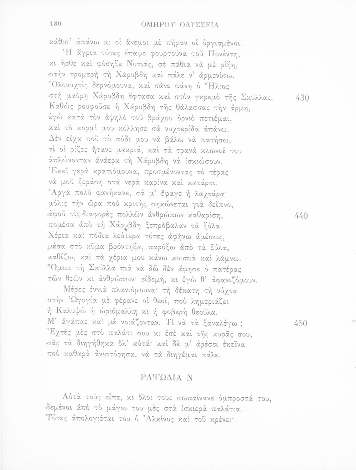 Παιδαγωγικό βοήθημα Αρχαίων Ελληνικών που περιλαμβάνει μετάφραση των ραψωδιών Ν-Ω της Οδύσσειας.
