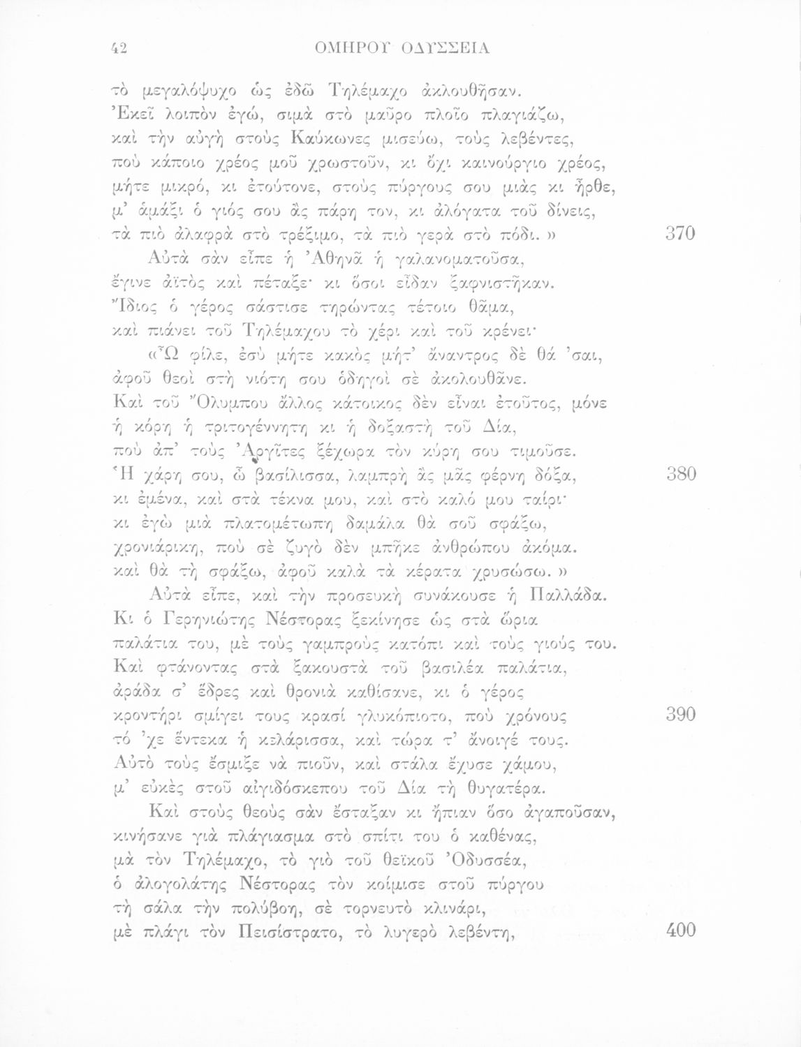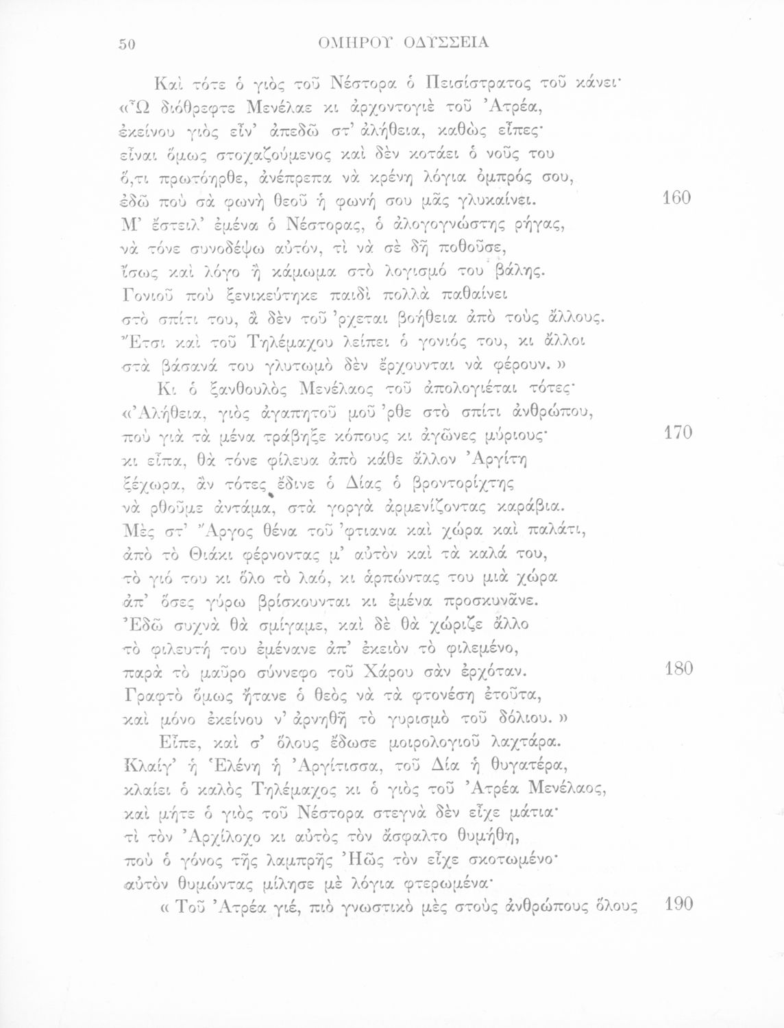 Σχολικό εγχειρίδιο Αρχαίων Ελληνικών για τις τάξεις του Γυμνασίου. Βιβλίο Οδύσσειας του Ομήρου για το Γυμνάσιο. Το προοίμιο αναφέρεται στο πρωτότυπο κείμενο. Η μετάφραση είναι έμμετρη.