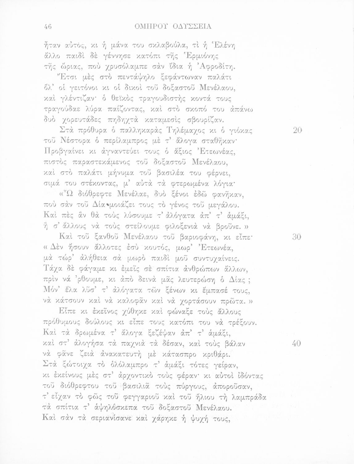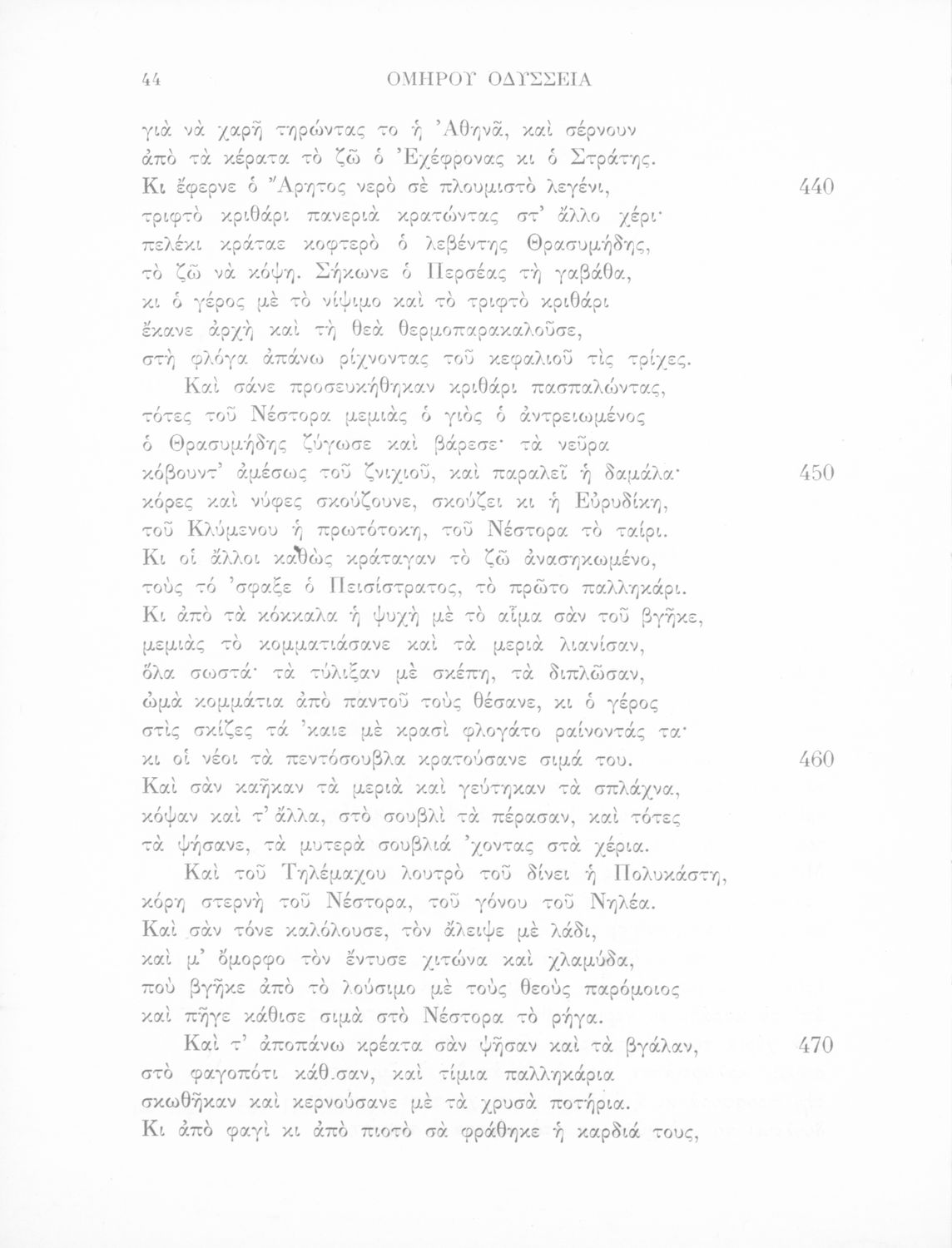 Παιδαγωγικό βοήθημα Αρχαίων Ελληνικών που περιλαμβάνει μετάφραση των ραψωδιών Ν-Ω της Οδύσσειας.