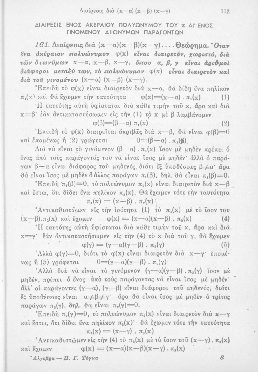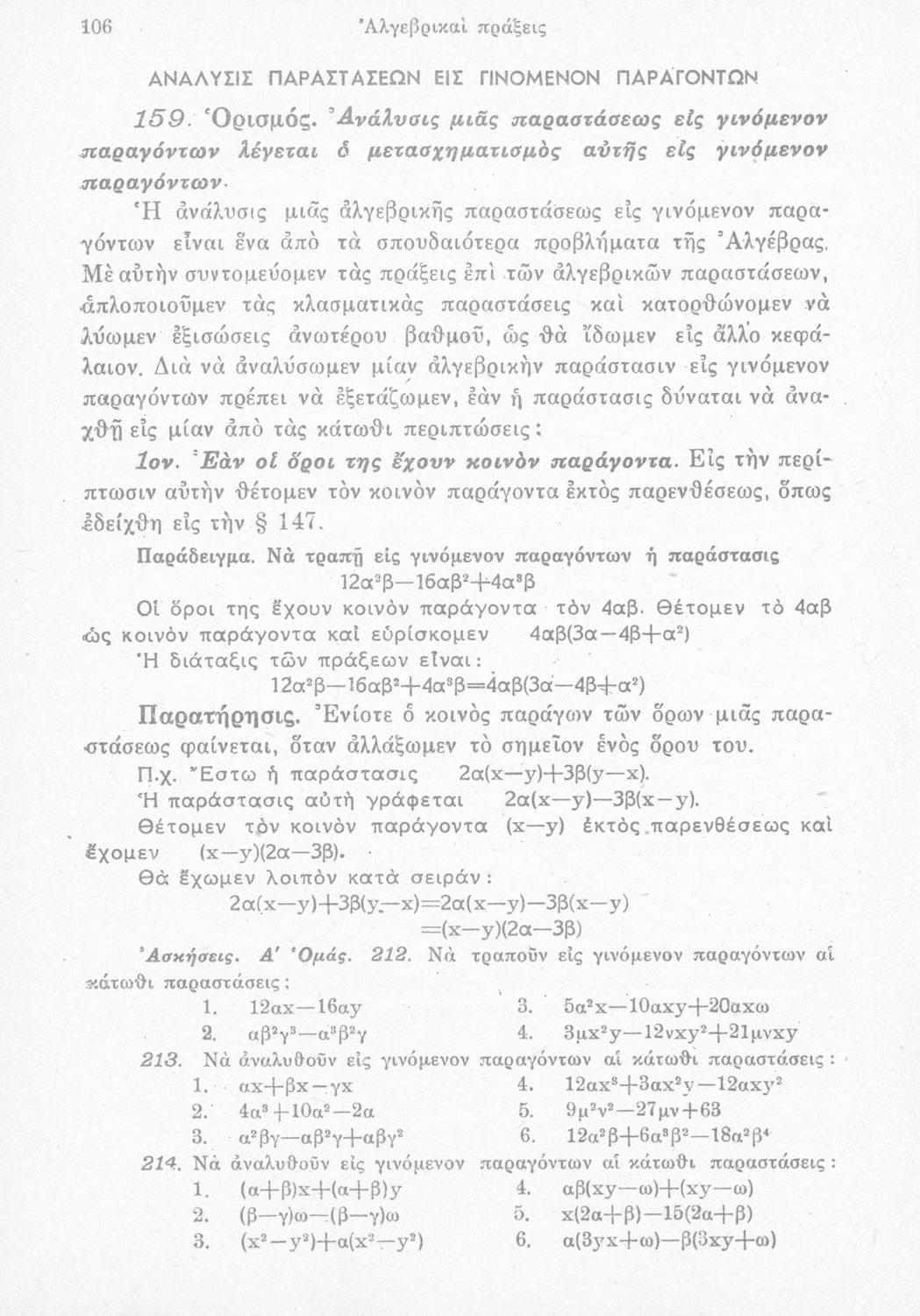 Άλγεβρα προς χρήσιν των μαθητών των Γυμνασίων, των Πρακτικών Λυκείων, των υποψηφίων δια τας ανωτάτας σχολάς του κράτους κ.λ.π.