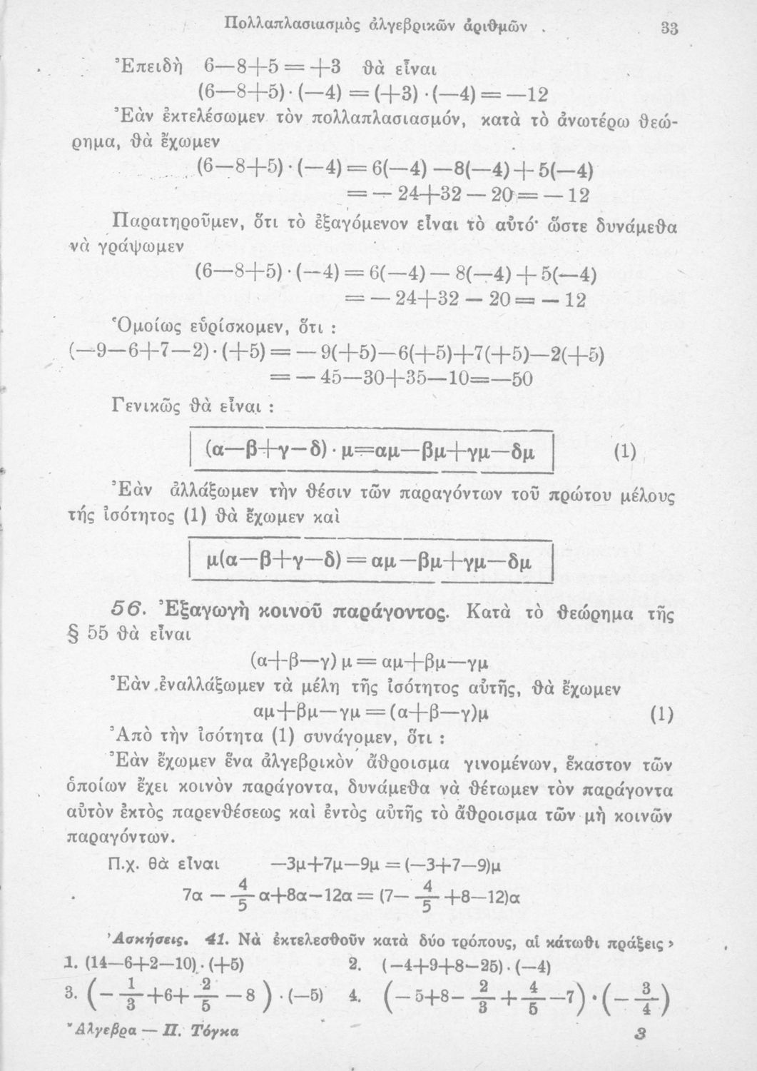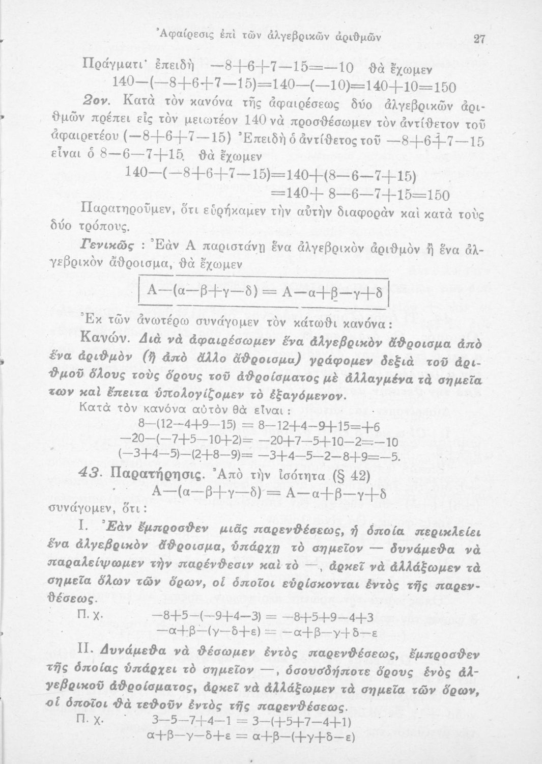 Άλγεβρα προς χρήσιν των μαθητών των Γυμνασίων, των Πρακτικών Λυκείων, των υποψηφίων δια τας ανωτάτας σχολάς του κράτους κ.λ.π.