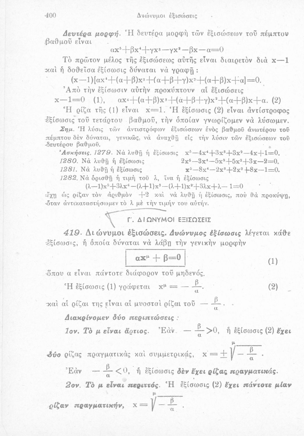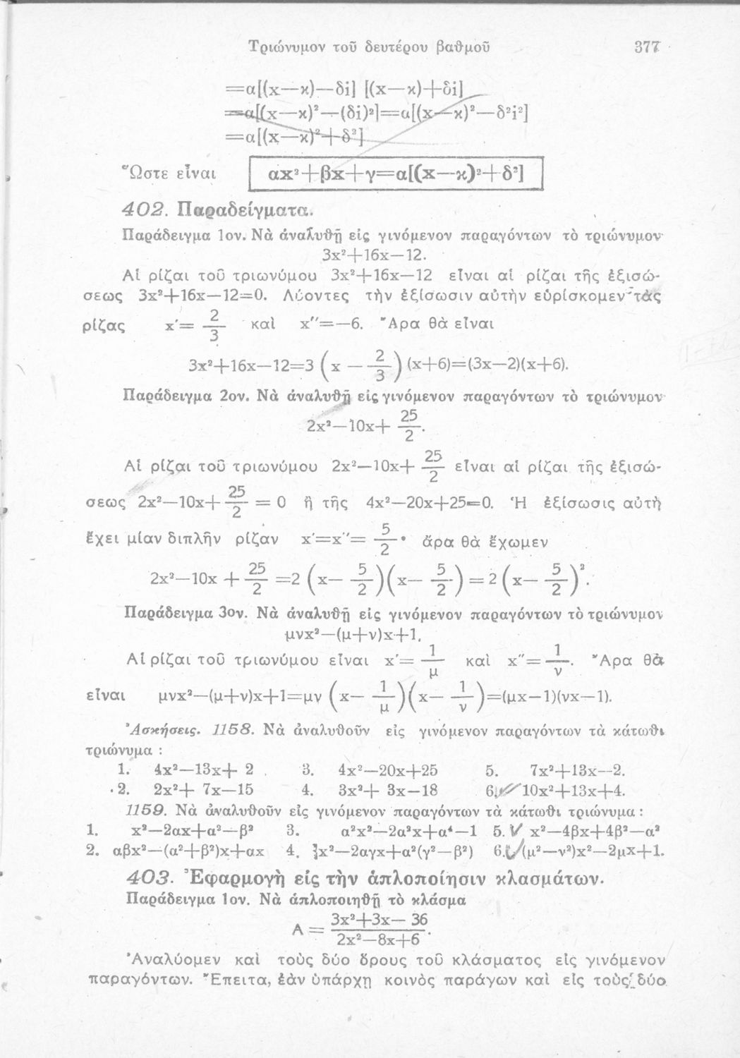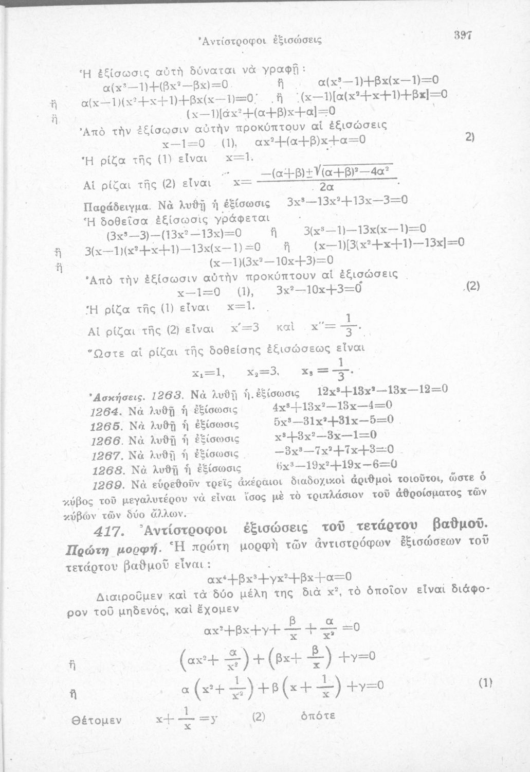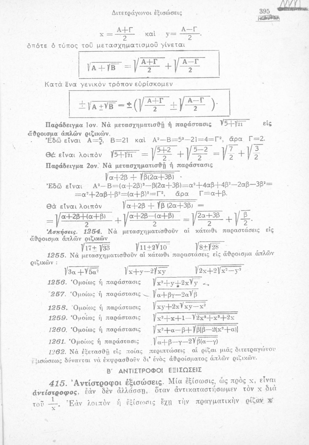 Άλγεβρα προς χρήσιν των μαθητών των Γυμνασίων, των Πρακτικών Λυκείων, των υποψηφίων δια τας ανωτάτας σχολάς του κράτους κ.λ.π.