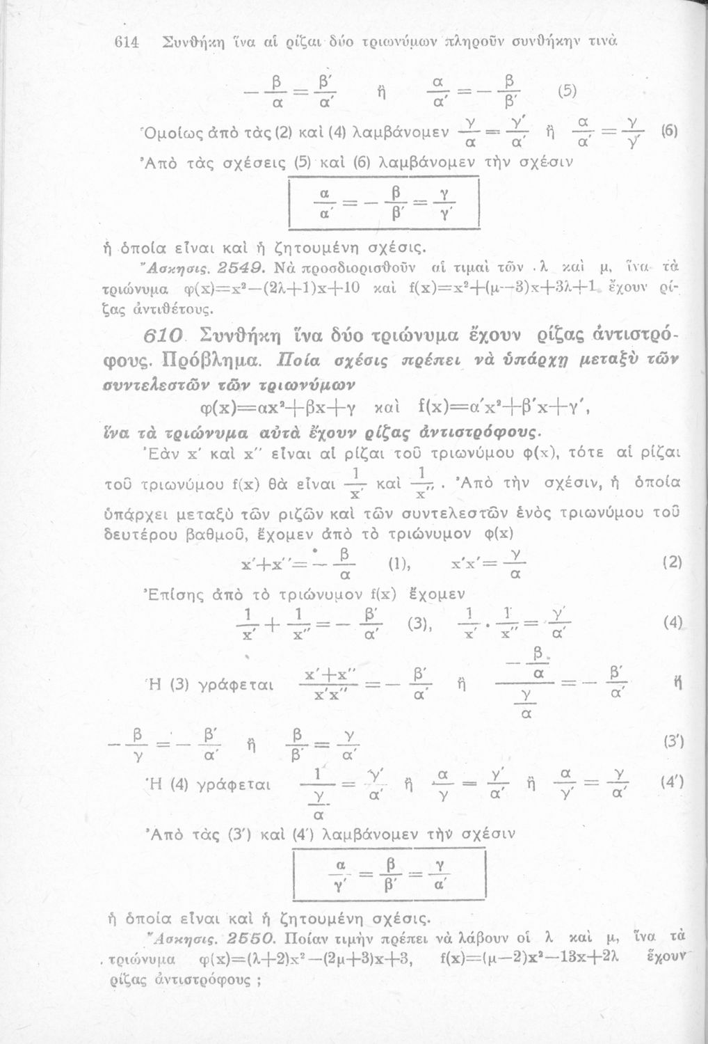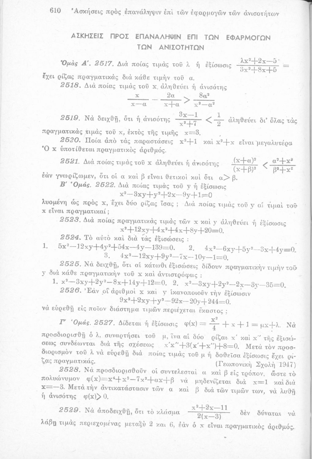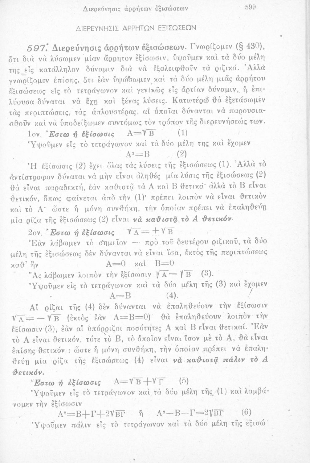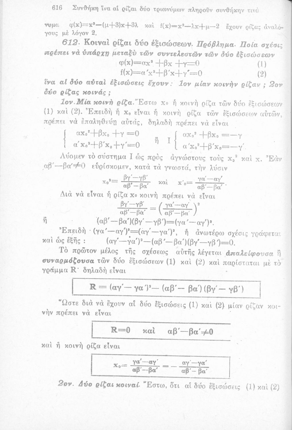 Άλγεβρα προς χρήσιν των μαθητών των Γυμνασίων, των Πρακτικών Λυκείων, των υποψηφίων δια τας ανωτάτας σχολάς του κράτους κ.λ.π.