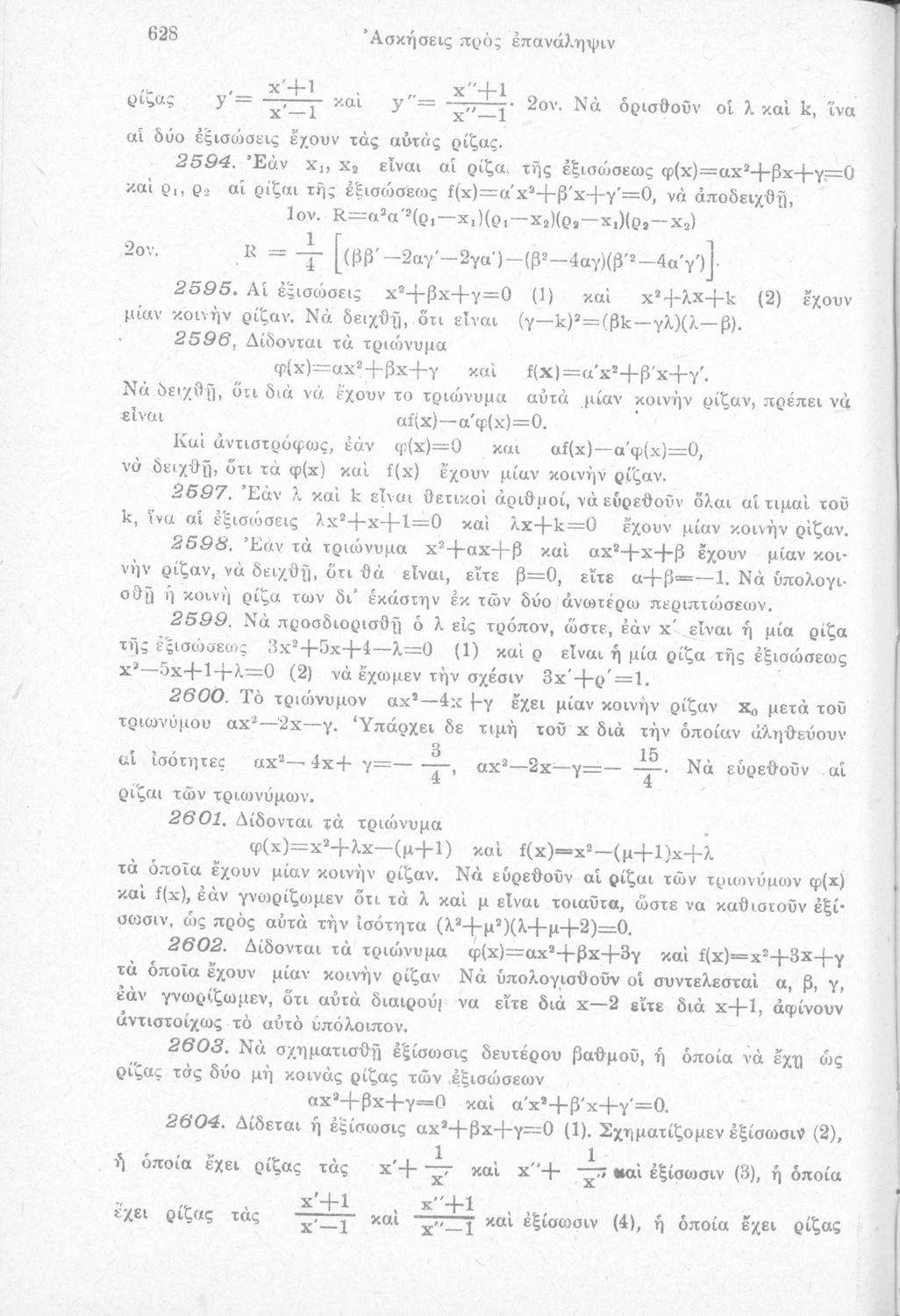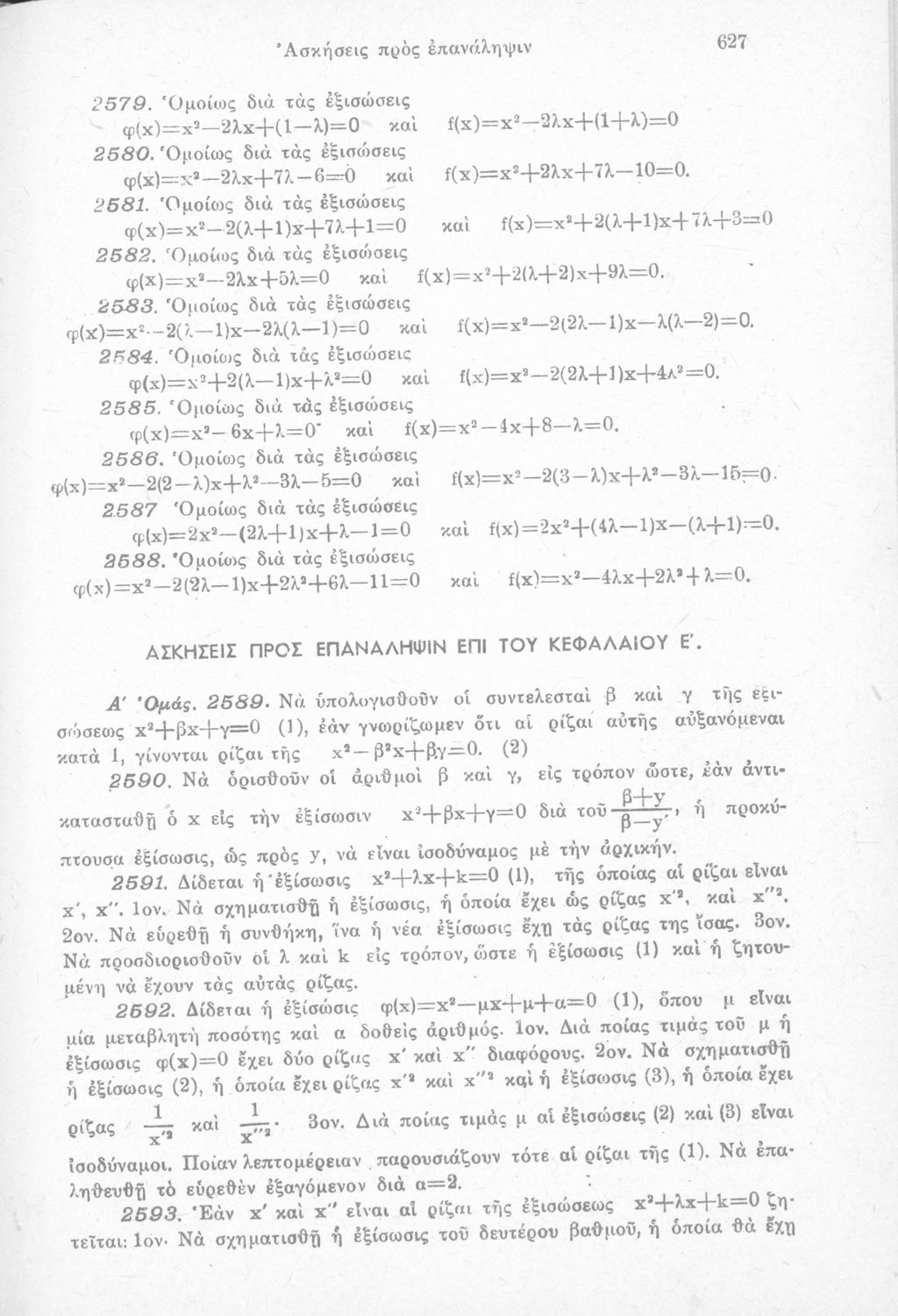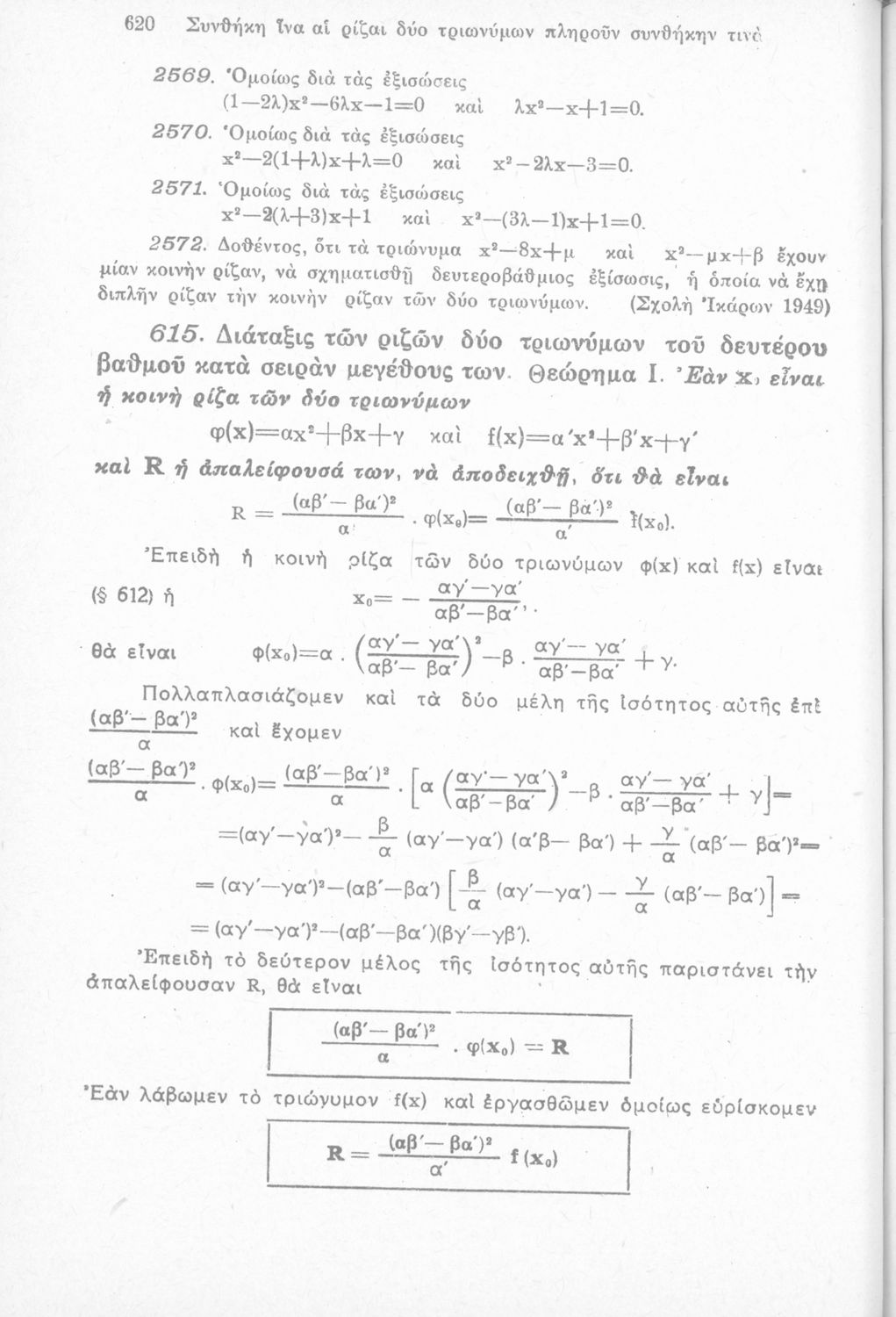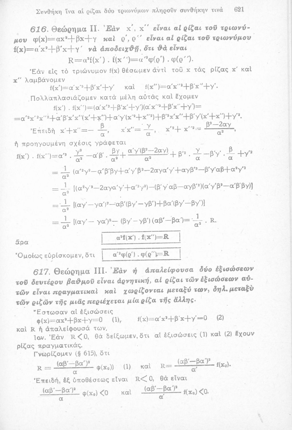 Άλγεβρα προς χρήσιν των μαθητών των Γυμνασίων, των Πρακτικών Λυκείων, των υποψηφίων δια τας ανωτάτας σχολάς του κράτους κ.λ.π.