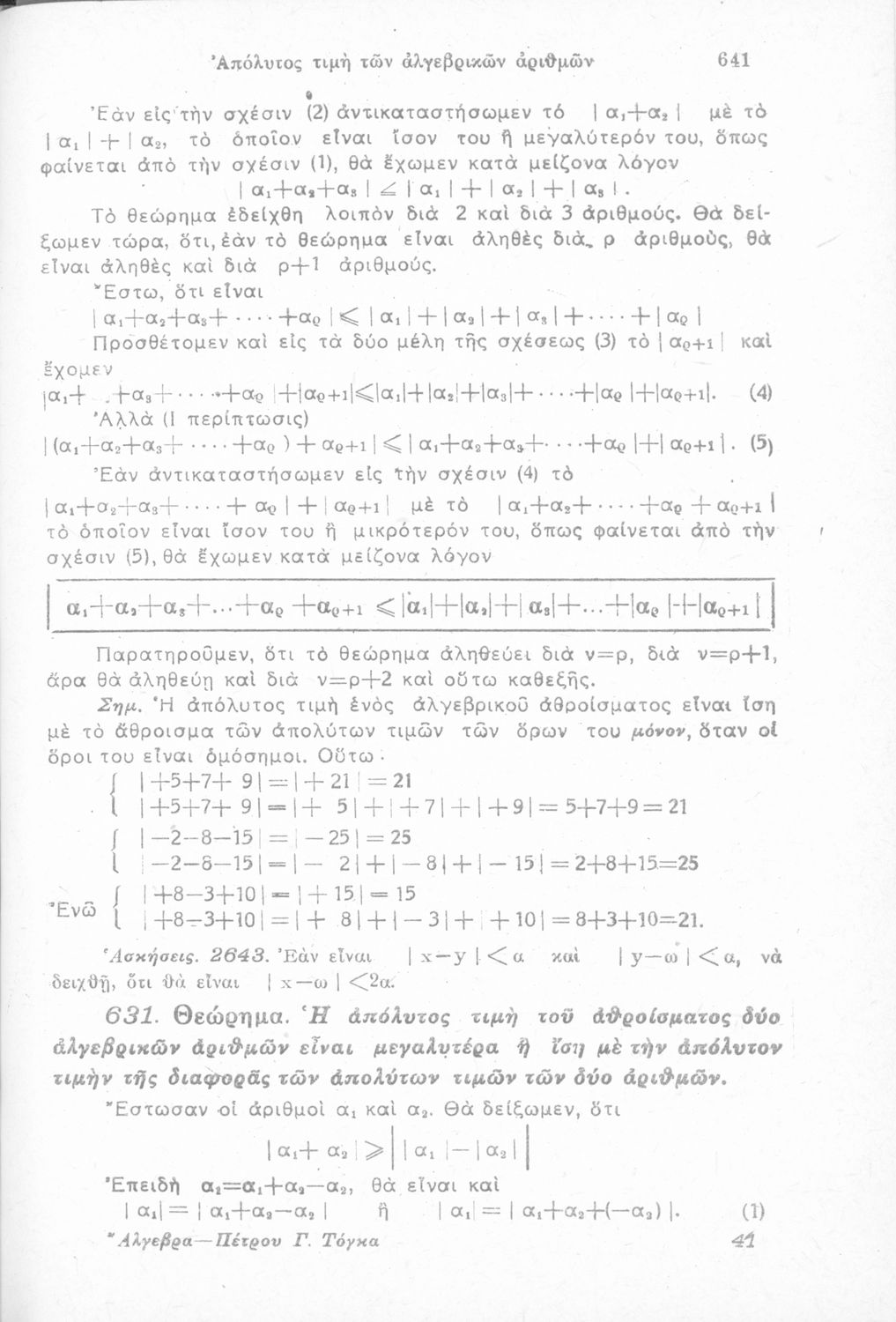 Άλγεβρα προς χρήσιν των μαθητών των Γυμνασίων, των Πρακτικών Λυκείων, των υποψηφίων δια τας ανωτάτας σχολάς του κράτους κ.λ.π.