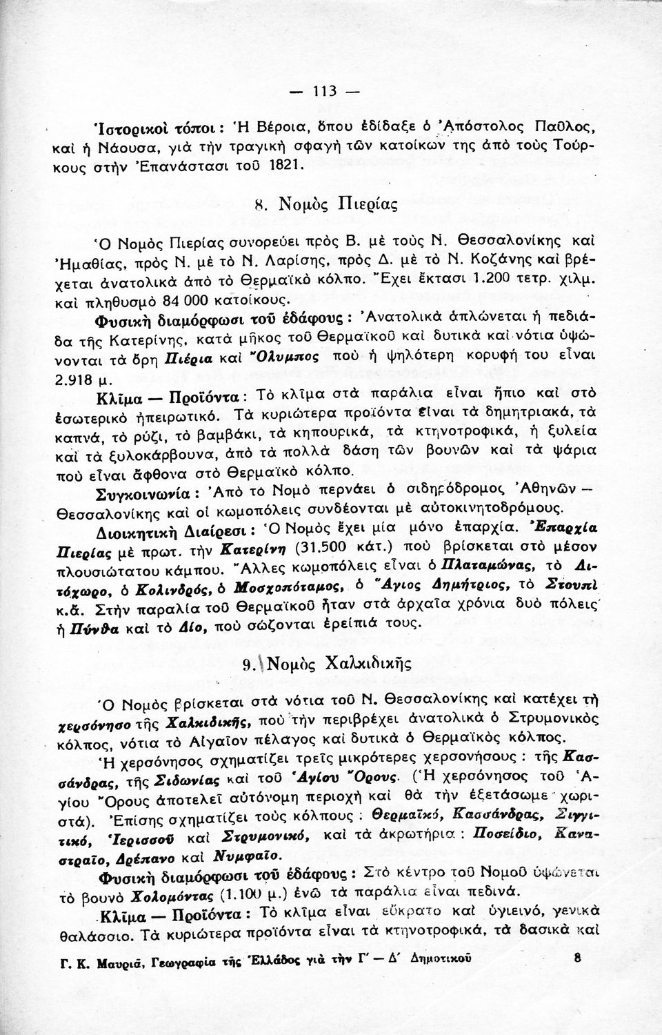 Σχολικό εγχειρίδιο Γεωγραφίας για τη Γ΄, Δ΄ Δημοτικού. Μελετά την Ελλάδα ανά γεωγραφικό νομό με πληροφορίες από το χάρτη της περιοχής και στοιχεία της ιστορίας και της οικονομικής ζωής.