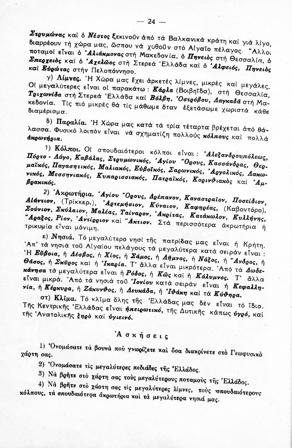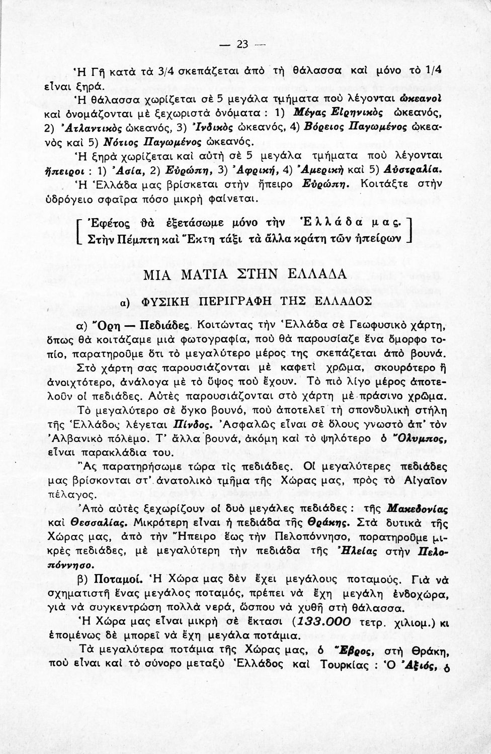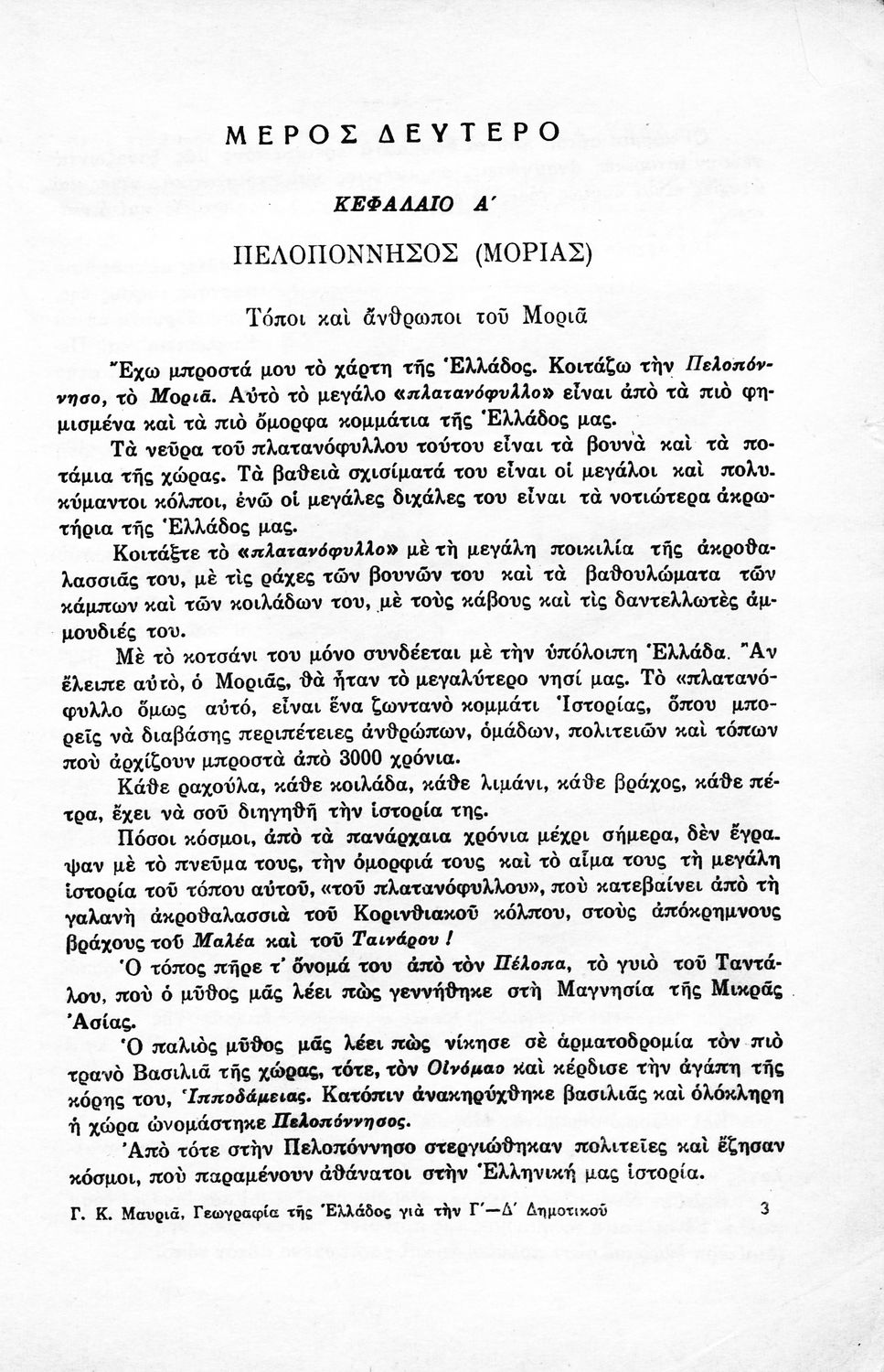 Μαθητικό βοήθημα Γεωγραφίας για τις Γ΄ και Δ΄ Δημοτικού που περιέχει εισαγωγή στη φυσική γεωγραφία και εξετάζει την Ελλάδα ανά διαμέρισμα και νομό από γεωφυσική, οικονομική και πολιτική άποψη.