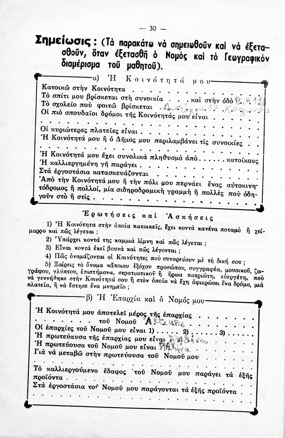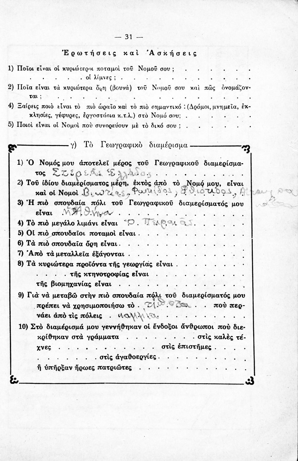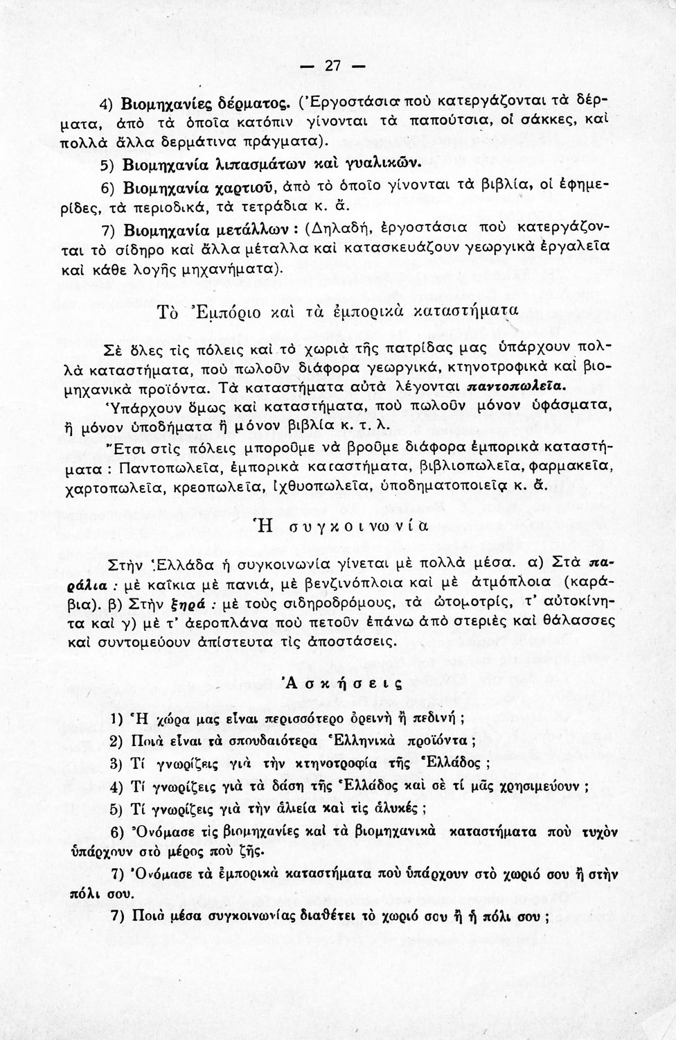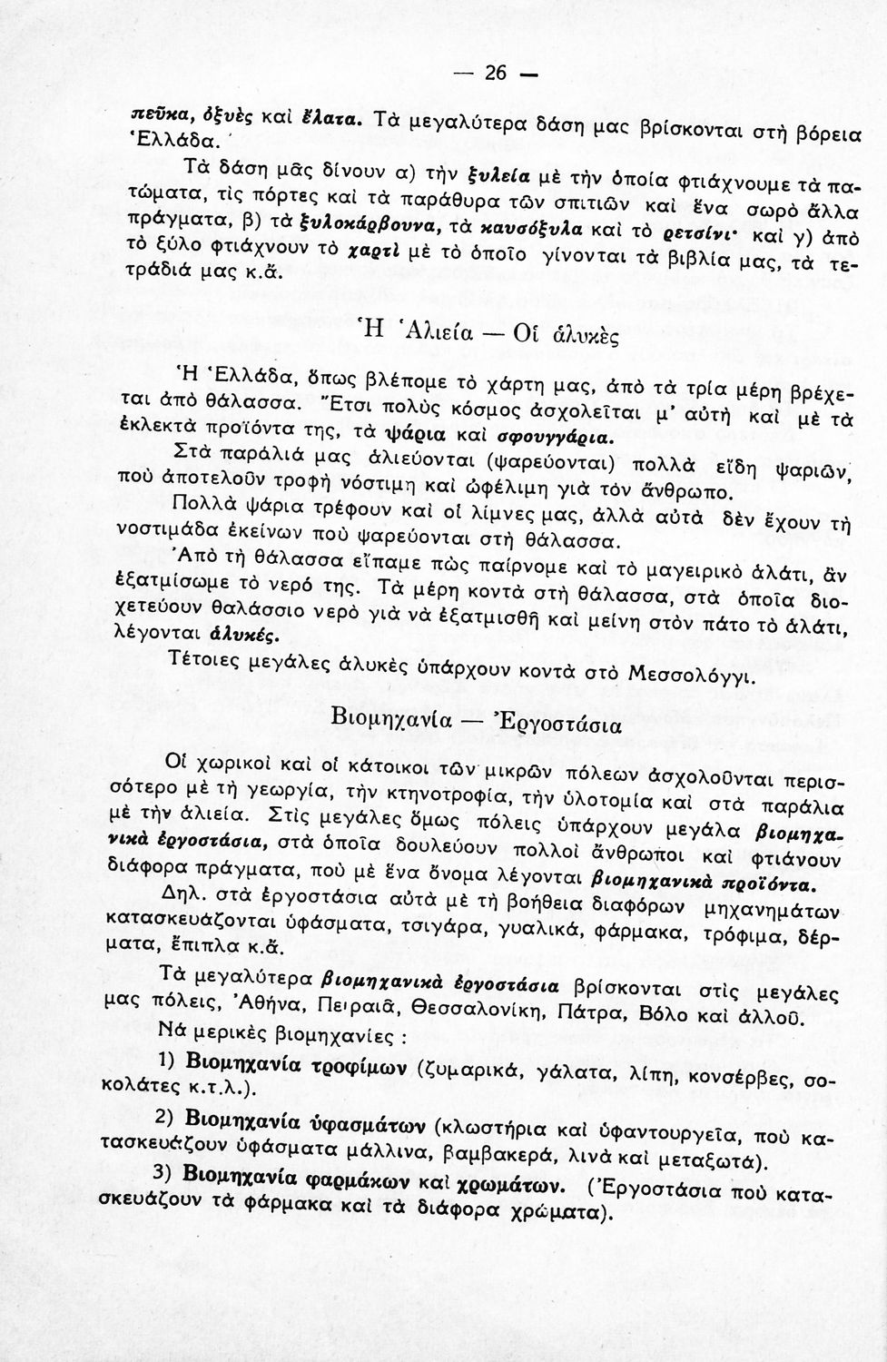 Μαθητικό βοήθημα Γεωγραφίας για τις Γ΄ και Δ΄ Δημοτικού που περιέχει εισαγωγή στη φυσική γεωγραφία και εξετάζει την Ελλάδα ανά διαμέρισμα και νομό από γεωφυσική, οικονομική και πολιτική άποψη.