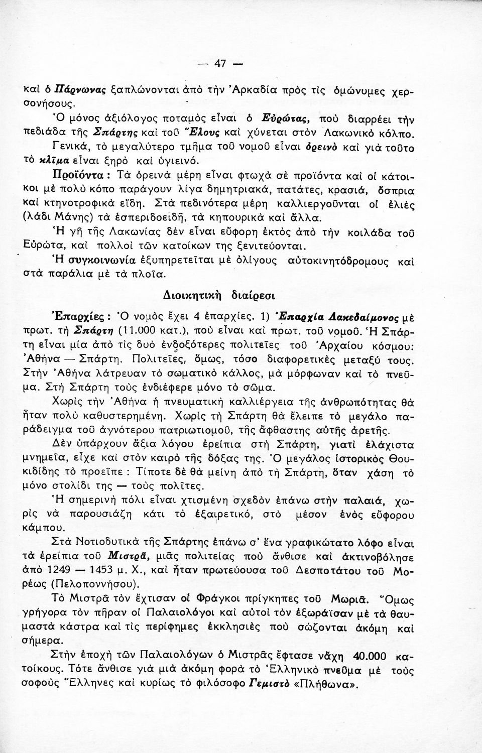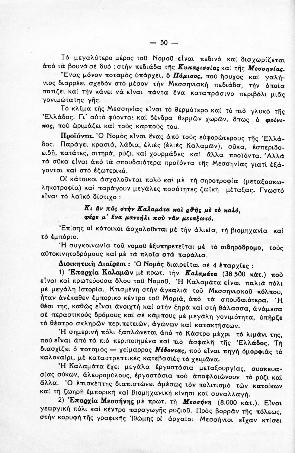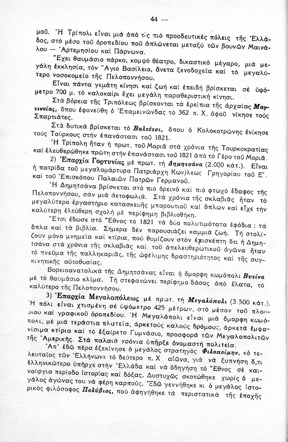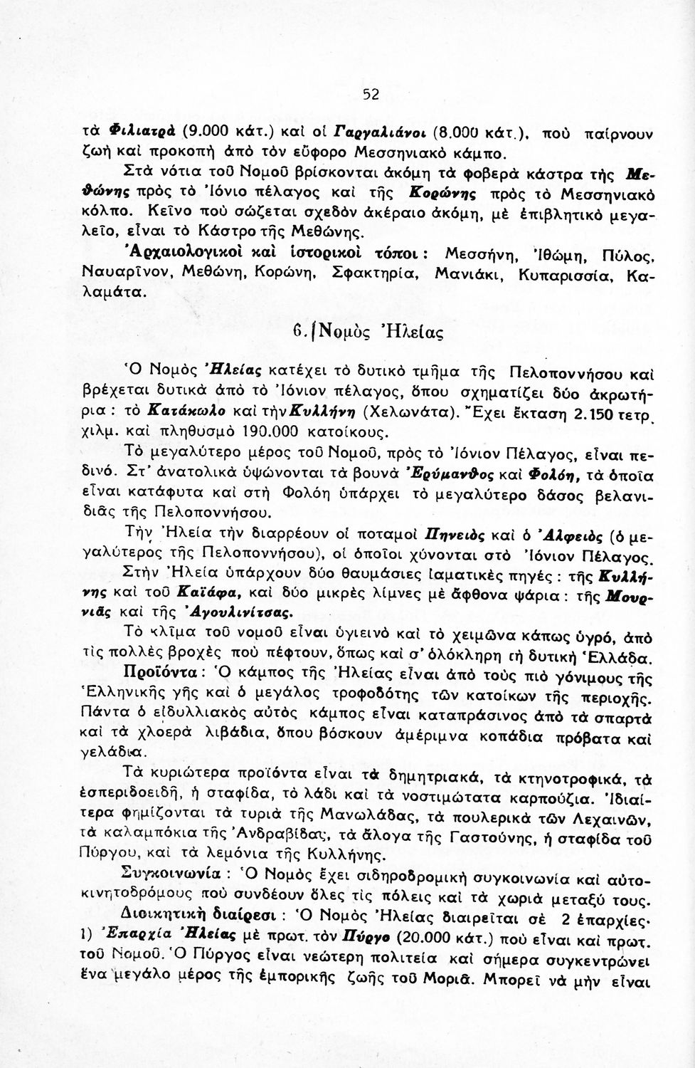 Σχολικό εγχειρίδιο Γεωγραφίας για τη Γ΄, Δ΄ Δημοτικού. Μελετά την Ελλάδα ανά γεωγραφικό νομό με πληροφορίες από το χάρτη της περιοχής και στοιχεία της ιστορίας και της οικονομικής ζωής.